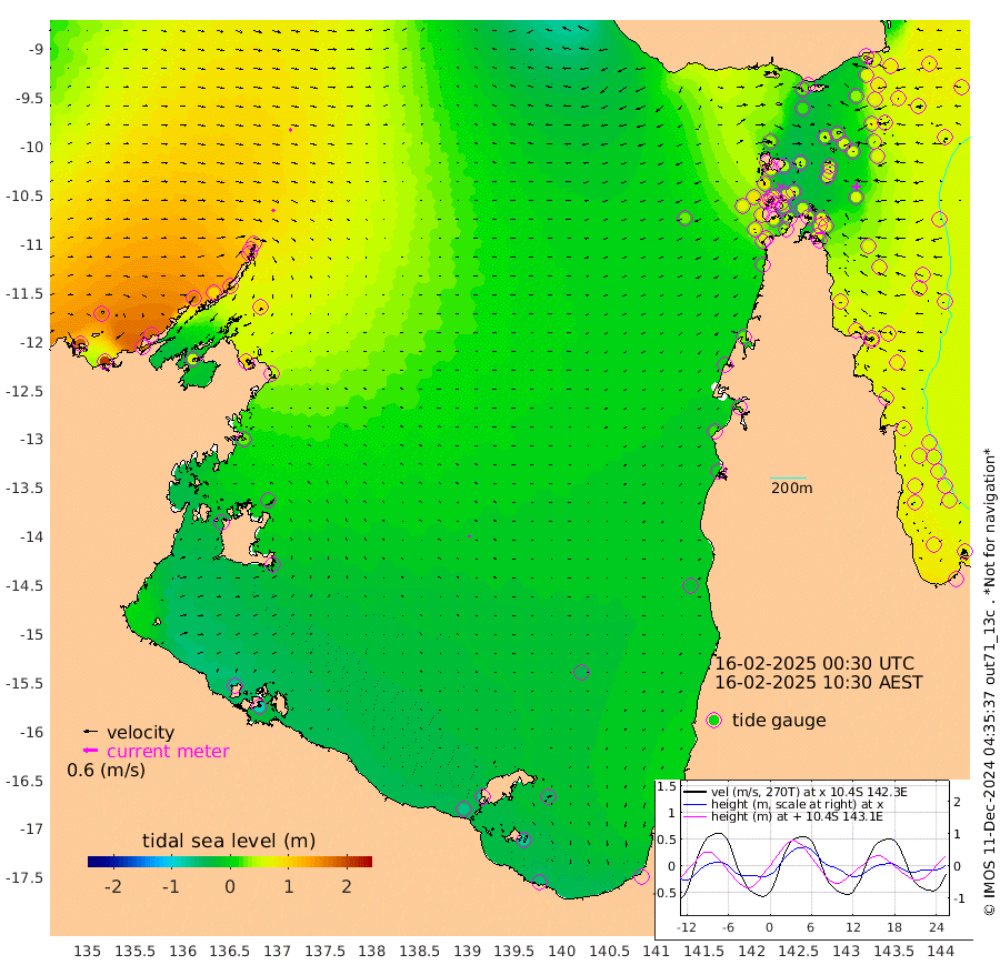 13cm/s 133T +3cm/s rms + 7cm/s -42T. ARA-GOC87 57m 8cm/s -160T +3cm/s rms + 2cm/s -2T. ARA-GOC87 60m 12cm/s 125T +2cm/s rms + 3cm/s 61T. ARA-GOC87 47m 61cm Daru 58cm Bobo Island 55cm Meer Island Barge 73cm Bramble Cay 77cm Unnamed Cay 68cm Pearce Cay 68cm Stephens Island 79cm Merrie England Shoals 75cm Mutacomal Reef 57cm Darnley Island Barge 62cm East Cay 55cm Yorke Island Barge 70cm Rennel Island 52cm Aureed Island 56cm Dungeness Reef 30cm Zagai Island 40cm Yam Island 28cm Dauan Island 16cm Saibai Island 21cm Phipi Reef 33cm Warrior Reef - West 34cm Mabuiag Island Barge 61cm Half Way Island 55cm Coconut Island 62cm Dugong Islet 50cm Poll Island 46cm Kirkcaldie Reef 42cm Suarji Island 39cm Sue Islet 84cm Hawkesbury Island 48cm Alert Patches 46cm Twin Island 70cm Badu Island 39cm St Pauls (Moa Island) 70cm Kubin (Moa Island) 48cm Ince Point 50cm Thursday Island 50cm Nardana Patches 64cm Turtle Head 69cm Round Island 79cm Goods Island 70cm Booby Island 84cm White Rocks Area 26cm Carpentaria 37cm Papou Point 85cm Bampfield Head 43cm Crab Island 68cm Red Wallis Island 71cm Packe Island 60cm Harrington Reef 69cm Herald Camp -4cm Sharp Point 43cm Red Island Point 45cm Possession Island 50cm Alpha Rock 52cm Frederick Point 74cm Wyborn Reef Light 70cm Tetley Island 53cm Triangle Reef 74cm Turtle Head Island 56cm Maclennan Cay 53cm Raine Island 66cm Mcsweeny Reef 63cm Collette Reef 55cm Shadwell Reef 70cm Hannibal Island 78cm Round Point 22cm Vrilya Point 66cm Cape Grenville 63cm Hicks Island 70cm Sir Charles Hardy Island 18cm Harvey Island 68cm Kay Reef 59cm Rocky Island 60cm Chapman Island 53cm Ham Reef 56cm Jubilee Reef 48cm Night Island 54cm Unnamed Reef No. 3 62cm Morris Island 58cm 1st 3 Mile Opening 54cm Creech Reef 57cm Fife Island 69cm Eden Reef 62cm Stanley Island 70cm Normanby River 186cm Yabooma Island 209cm Hutchison River 173cm Elcho Island 165cm North West Crocodile Island 111cm Cape Wessel 160cm Stevens Island 95cm Guluwuru Island 143cm Hopeful Bay 125cm Auster Point 122cm Two Island Bay 153cm Cadell Strait 66cm Mallison Island 91cm Melville Bay (Gove Harbour) 97cm Truant Island 52cm Cape Arnhem 24cm Cape Grey 10cm Hawk Island -27cm Milner Bay (Groote Eylandt) -29cm Cape Beatrice -74cm West Island -83cm Centre Island -71cm Mornington Island -62cm West Wellesley Islands -52cm Bountiful Island -60cm Albert River Mouth -79cm Sweers Island -71cm Karumba -42cm Nassau River Offshore -19cm Christmas Creek 7cm Archer River 17cm Boyd Point 29cm Weipa (Humbug Point) 4cm Pennefather River 24cm Cullen Point