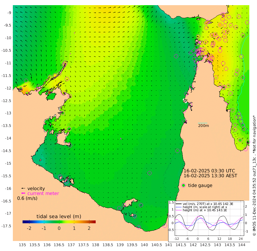 10cm/s 75T +3cm/s rms + 7cm/s -42T. ARA-GOC87 57m 20cm/s 175T +3cm/s rms + 2cm/s -2T. ARA-GOC87 60m 9cm/s 32T +2cm/s rms + 3cm/s 61T. ARA-GOC87 47m 94cm Daru 91cm Bobo Island 35cm Meer Island Barge 54cm Bramble Cay 73cm Unnamed Cay 78cm Pearce Cay 67cm Stephens Island 66cm Merrie England Shoals 90cm Mutacomal Reef 62cm Darnley Island Barge 41cm East Cay 76cm Yorke Island Barge 80cm Rennel Island 84cm Aureed Island 83cm Dungeness Reef 103cm Zagai Island 99cm Yam Island 107cm Dauan Island 105cm Saibai Island 87cm Phipi Reef 117cm Warrior Reef - West 66cm Mabuiag Island Barge 71cm Half Way Island 89cm Coconut Island 81cm Dugong Islet 91cm Poll Island 80cm Kirkcaldie Reef 89cm Suarji Island 89cm Sue Islet 14cm Hawkesbury Island 70cm Alert Patches 80cm Twin Island 22cm Badu Island 86cm St Pauls (Moa Island) 40cm Kubin (Moa Island) 62cm Ince Point 45cm Thursday Island 51cm Nardana Patches 33cm Turtle Head 25cm Round Island 2cm Goods Island -24cm Booby Island -16cm White Rocks Area -31cm Carpentaria 71cm Papou Point -7cm Bampfield Head -27cm Crab Island -9cm Red Wallis Island 28cm Packe Island 86cm Harrington Reef 13cm Herald Camp 26cm Sharp Point 20cm Red Island Point 47cm Possession Island 86cm Alpha Rock 88cm Frederick Point 97cm Wyborn Reef Light 101cm Tetley Island 48cm Triangle Reef 77cm Turtle Head Island 37cm Maclennan Cay 18cm Raine Island 71cm Mcsweeny Reef 62cm Collette Reef 37cm Shadwell Reef 63cm Hannibal Island 56cm Round Point -43cm Vrilya Point 43cm Cape Grenville 42cm Hicks Island 52cm Sir Charles Hardy Island 14cm Harvey Island 32cm Kay Reef 27cm Rocky Island 26cm Chapman Island 25cm Ham Reef 25cm Jubilee Reef 26cm Night Island 25cm Unnamed Reef No. 3 26cm Morris Island 15cm 1st 3 Mile Opening 22cm Creech Reef 39cm Fife Island 22cm Eden Reef 21cm Stanley Island 27cm Normanby River 17cm Yabooma Island 35cm Hutchison River 18cm Elcho Island 14cm North West Crocodile Island 58cm Cape Wessel 40cm Stevens Island 83cm Guluwuru Island 29cm Hopeful Bay 37cm Auster Point 43cm Two Island Bay 65cm Cadell Strait 191cm Mallison Island 67cm Melville Bay (Gove Harbour) 75cm Truant Island 53cm Cape Arnhem 18cm Cape Grey 15cm Hawk Island -26cm Milner Bay (Groote Eylandt) -25cm Cape Beatrice -54cm West Island -62cm Centre Island -32cm Mornington Island -32cm West Wellesley Islands -42cm Bountiful Island -56cm Albert River Mouth -74cm Sweers Island -56cm Karumba -18cm Nassau River Offshore -4cm Christmas Creek -17cm Archer River -5cm Boyd Point -13cm Weipa (Humbug Point) -36cm Pennefather River -20cm Cullen Point