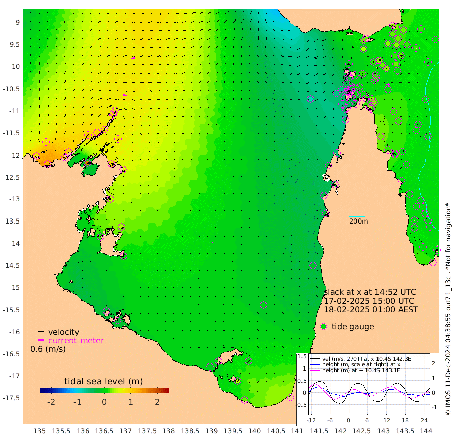 35cm/s 99T +3cm/s rms + 7cm/s -42T. ARA-GOC87 57m 6cm/s -9T +3cm/s rms + 2cm/s -2T. ARA-GOC87 60m 35cm/s 86T +2cm/s rms + 3cm/s 61T. ARA-GOC87 47m 35cm Daru 37cm Bobo Island 7cm Meer Island Barge 20cm Bramble Cay 23cm Unnamed Cay 31cm Pearce Cay 19cm Stephens Island 23cm Merrie England Shoals 28cm Mutacomal Reef 18cm Darnley Island Barge 8cm East Cay 23cm Yorke Island Barge 20cm Rennel Island 25cm Aureed Island 23cm Dungeness Reef 33cm Zagai Island 16cm Yam Island 28cm Dauan Island 26cm Saibai Island 42cm Phipi Reef 34cm Warrior Reef - West 7cm Mabuiag Island Barge 14cm Half Way Island 31cm Coconut Island 10cm Dugong Islet 21cm Poll Island 13cm Kirkcaldie Reef 15cm Suarji Island 21cm Sue Islet -39cm Hawkesbury Island 8cm Alert Patches 8cm Twin Island -11cm Badu Island 11cm St Pauls (Moa Island) -26cm Kubin (Moa Island) -5cm Ince Point -15cm Thursday Island -12cm Nardana Patches -23cm Turtle Head -28cm Round Island -44cm Goods Island -65cm Booby Island -61cm White Rocks Area -86cm Carpentaria 7cm Papou Point -59cm Bampfield Head -49cm Crab Island -65cm Red Wallis Island -40cm Packe Island 19cm Harrington Reef -63cm Herald Camp 4cm Sharp Point -17cm Red Island Point -3cm Possession Island 8cm Alpha Rock 17cm Frederick Point 35cm Wyborn Reef Light 33cm Tetley Island 10cm Triangle Reef 31cm Turtle Head Island -2cm Maclennan Cay 2cm Raine Island 22cm Mcsweeny Reef 22cm Collette Reef 11cm Shadwell Reef 24cm Hannibal Island 21cm Round Point -57cm Vrilya Point 6cm Cape Grenville 8cm Hicks Island -3cm Sir Charles Hardy Island 1cm Harvey Island 3cm Kay Reef 3cm Rocky Island 5cm Chapman Island -2cm Ham Reef 1cm Jubilee Reef 1cm Night Island -2cm Unnamed Reef No. 3 2cm Morris Island -3cm 1st 3 Mile Opening -3cm Creech Reef 9cm Fife Island 0cm Eden Reef -4cm Stanley Island -2cm Normanby River 95cm Yabooma Island 124cm Hutchison River 101cm Elcho Island 93cm North West Crocodile Island 80cm Cape Wessel 115cm Stevens Island 100cm Guluwuru Island 100cm Hopeful Bay 91cm Auster Point 83cm Two Island Bay 138cm Cadell Strait 171cm Mallison Island 97cm Melville Bay (Gove Harbour) 100cm Truant Island 70cm Cape Arnhem 52cm Cape Grey 44cm Hawk Island 20cm Milner Bay (Groote Eylandt) 7cm Cape Beatrice -26cm West Island -26cm Centre Island 3cm Mornington Island -8cm West Wellesley Islands 12cm Bountiful Island 27cm Albert River Mouth 51cm Sweers Island 29cm Karumba -5cm Nassau River Offshore -18cm Christmas Creek -24cm Archer River -38cm Boyd Point -38cm Weipa (Humbug Point) -28cm Pennefather River -58cm Cullen Point