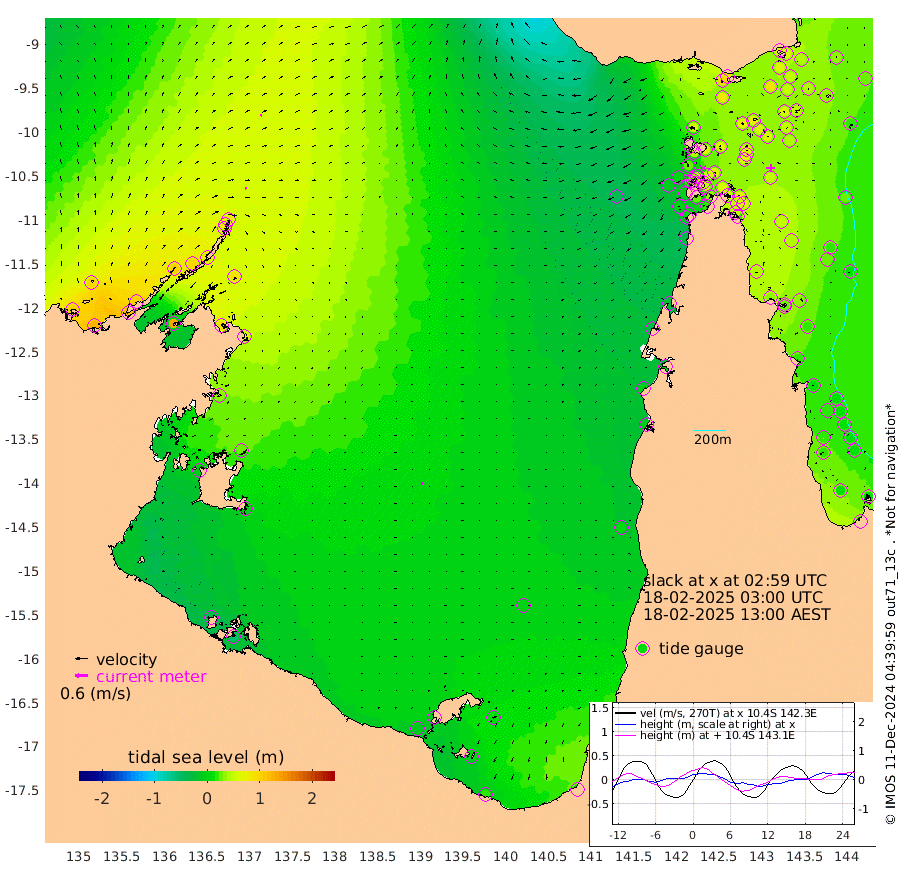 8cm/s 84T +3cm/s rms + 7cm/s -42T. ARA-GOC87 57m 12cm/s -156T +3cm/s rms + 2cm/s -2T. ARA-GOC87 60m 8cm/s 55T +2cm/s rms + 3cm/s 61T. ARA-GOC87 47m 65cm Daru 56cm Bobo Island 21cm Meer Island Barge 37cm Bramble Cay 52cm Unnamed Cay 47cm Pearce Cay 41cm Stephens Island 45cm Merrie England Shoals 63cm Mutacomal Reef 36cm Darnley Island Barge 23cm East Cay 47cm Yorke Island Barge 54cm Rennel Island 47cm Aureed Island 58cm Dungeness Reef 74cm Zagai Island 73cm Yam Island 95cm Dauan Island 84cm Saibai Island 79cm Phipi Reef 87cm Warrior Reef - West 58cm Mabuiag Island Barge 43cm Half Way Island 57cm Coconut Island 52cm Dugong Islet 62cm Poll Island 54cm Kirkcaldie Reef 62cm Suarji Island 59cm Sue Islet 23cm Hawkesbury Island 50cm Alert Patches 53cm Twin Island 38cm Badu Island 61cm St Pauls (Moa Island) 38cm Kubin (Moa Island) 46cm Ince Point 35cm Thursday Island 41cm Nardana Patches 35cm Turtle Head 25cm Round Island 17cm Goods Island -8cm Booby Island 2cm White Rocks Area -40cm Carpentaria 50cm Papou Point -2cm Bampfield Head -15cm Crab Island -3cm Red Wallis Island 23cm Packe Island 50cm Harrington Reef 11cm Herald Camp 16cm Sharp Point 18cm Red Island Point 30cm Possession Island 57cm Alpha Rock 56cm Frederick Point 66cm Wyborn Reef Light 68cm Tetley Island 28cm Triangle Reef 49cm Turtle Head Island 21cm Maclennan Cay 13cm Raine Island 45cm Mcsweeny Reef 39cm Collette Reef 25cm Shadwell Reef 40cm Hannibal Island 36cm Round Point -37cm Vrilya Point 24cm Cape Grenville 26cm Hicks Island 34cm Sir Charles Hardy Island 7cm Harvey Island 19cm Kay Reef 18cm Rocky Island 15cm Chapman Island 12cm Ham Reef 17cm Jubilee Reef 12cm Night Island 11cm Unnamed Reef No. 3 16cm Morris Island 13cm 1st 3 Mile Opening 12cm Creech Reef 21cm Fife Island 13cm Eden Reef 11cm Stanley Island 15cm Normanby River 100cm Yabooma Island 127cm Hutchison River 99cm Elcho Island 94cm North West Crocodile Island 76cm Cape Wessel 100cm Stevens Island 97cm Guluwuru Island 81cm Hopeful Bay 74cm Auster Point 76cm Two Island Bay 116cm Cadell Strait 132cm Mallison Island 85cm Melville Bay (Gove Harbour) 88cm Truant Island 58cm Cape Arnhem 35cm Cape Grey 23cm Hawk Island -8cm Milner Bay (Groote Eylandt) -7cm Cape Beatrice -41cm West Island -53cm Centre Island -12cm Mornington Island -10cm West Wellesley Islands 7cm Bountiful Island 17cm Albert River Mouth -7cm Sweers Island 4cm Karumba -4cm Nassau River Offshore 1cm Christmas Creek -11cm Archer River -7cm Boyd Point -3cm Weipa (Humbug Point) -34cm Pennefather River -23cm Cullen Point