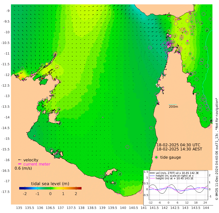 9cm/s 37T +3cm/s rms + 7cm/s -42T. ARA-GOC87 57m 11cm/s -170T +3cm/s rms + 2cm/s -2T. ARA-GOC87 60m 11cm/s 14T +2cm/s rms + 3cm/s 61T. ARA-GOC87 47m 40cm Daru 35cm Bobo Island 2cm Meer Island Barge 12cm Bramble Cay 23cm Unnamed Cay 18cm Pearce Cay 15cm Stephens Island 17cm Merrie England Shoals 36cm Mutacomal Reef 17cm Darnley Island Barge 3cm East Cay 27cm Yorke Island Barge 25cm Rennel Island 28cm Aureed Island 28cm Dungeness Reef 60cm Zagai Island 53cm Yam Island 75cm Dauan Island 78cm Saibai Island 53cm Phipi Reef 71cm Warrior Reef - West 32cm Mabuiag Island Barge 16cm Half Way Island 32cm Coconut Island 24cm Dugong Islet 36cm Poll Island 28cm Kirkcaldie Reef 33cm Suarji Island 41cm Sue Islet -34cm Hawkesbury Island 16cm Alert Patches 24cm Twin Island -16cm Badu Island 32cm St Pauls (Moa Island) -8cm Kubin (Moa Island) 13cm Ince Point -2cm Thursday Island 4cm Nardana Patches -12cm Turtle Head -21cm Round Island -39cm Goods Island -61cm Booby Island -57cm White Rocks Area -58cm Carpentaria 24cm Papou Point -56cm Bampfield Head -54cm Crab Island -49cm Red Wallis Island -21cm Packe Island 21cm Harrington Reef -33cm Herald Camp 16cm Sharp Point -19cm Red Island Point -4cm Possession Island 37cm Alpha Rock 28cm Frederick Point 38cm Wyborn Reef Light 41cm Tetley Island 12cm Triangle Reef 10cm Turtle Head Island 2cm Maclennan Cay -6cm Raine Island 20cm Mcsweeny Reef 18cm Collette Reef 7cm Shadwell Reef 16cm Hannibal Island 9cm Round Point -65cm Vrilya Point 3cm Cape Grenville 3cm Hicks Island 15cm Sir Charles Hardy Island 1cm Harvey Island -1cm Kay Reef -1cm Rocky Island -2cm Chapman Island -1cm Ham Reef -1cm Jubilee Reef -3cm Night Island -3cm Unnamed Reef No. 3 -4cm Morris Island -11cm 1st 3 Mile Opening -7cm Creech Reef 5cm Fife Island -8cm Eden Reef -8cm Stanley Island -7cm Normanby River 2cm Yabooma Island 18cm Hutchison River 9cm Elcho Island 7cm North West Crocodile Island 39cm Cape Wessel 27cm Stevens Island 71cm Guluwuru Island 17cm Hopeful Bay 18cm Auster Point 25cm Two Island Bay 45cm Cadell Strait 191cm Mallison Island 54cm Melville Bay (Gove Harbour) 58cm Truant Island 45cm Cape Arnhem 23cm Cape Grey 20cm Hawk Island -3cm Milner Bay (Groote Eylandt) -1cm Cape Beatrice -19cm West Island -27cm Centre Island 7cm Mornington Island 6cm West Wellesley Islands 7cm Bountiful Island 19cm Albert River Mouth -3cm Sweers Island 8cm Karumba 3cm Nassau River Offshore 2cm Christmas Creek -24cm Archer River -21cm Boyd Point -26cm Weipa (Humbug Point) -50cm Pennefather River -43cm Cullen Point
