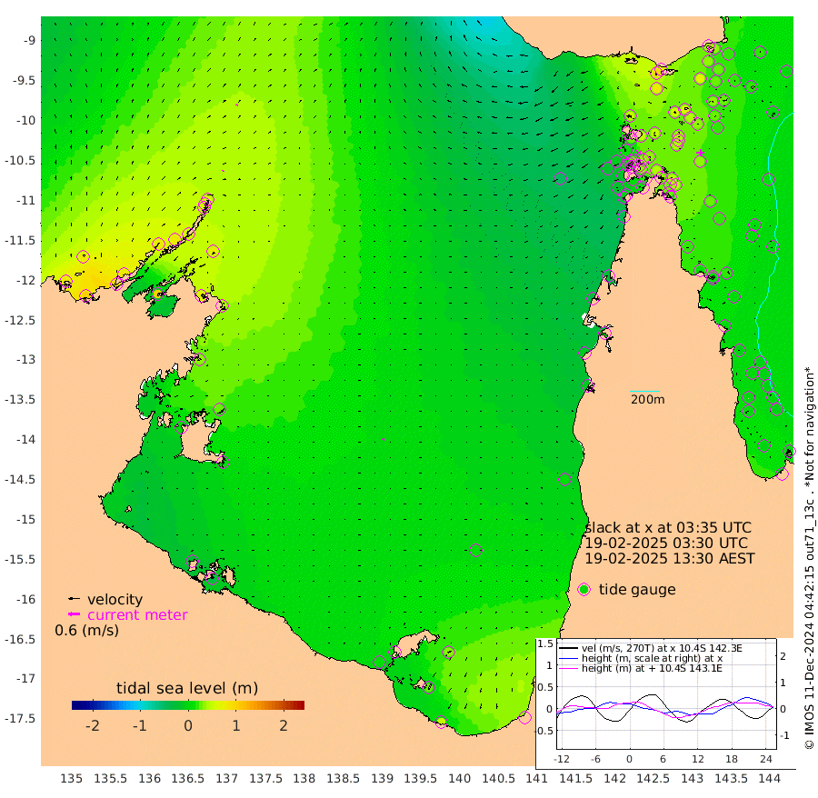 5cm/s 53T +3cm/s rms + 7cm/s -42T. ARA-GOC87 57m 11cm/s -144T +3cm/s rms + 2cm/s -2T. ARA-GOC87 60m 8cm/s 29T +2cm/s rms + 3cm/s 61T. ARA-GOC87 47m 44cm Daru 34cm Bobo Island 6cm Meer Island Barge 16cm Bramble Cay 29cm Unnamed Cay 24cm Pearce Cay 20cm Stephens Island 20cm Merrie England Shoals 37cm Mutacomal Reef 18cm Darnley Island Barge 6cm East Cay 28cm Yorke Island Barge 31cm Rennel Island 27cm Aureed Island 39cm Dungeness Reef 62cm Zagai Island 60cm Yam Island 90cm Dauan Island 81cm Saibai Island 77cm Phipi Reef 75cm Warrior Reef - West 50cm Mabuiag Island Barge 22cm Half Way Island 35cm Coconut Island 31cm Dugong Islet 43cm Poll Island 38cm Kirkcaldie Reef 46cm Suarji Island 44cm Sue Islet 8cm Hawkesbury Island 33cm Alert Patches 35cm Twin Island 27cm Badu Island 46cm St Pauls (Moa Island) 23cm Kubin (Moa Island) 32cm Ince Point 21cm Thursday Island 27cm Nardana Patches 21cm Turtle Head 10cm Round Island 3cm Goods Island -20cm Booby Island -14cm White Rocks Area -49cm Carpentaria 37cm Papou Point -21cm Bampfield Head -22cm Crab Island -17cm Red Wallis Island 5cm Packe Island 26cm Harrington Reef -3cm Herald Camp 14cm Sharp Point 10cm Red Island Point 16cm Possession Island 38cm Alpha Rock 35cm Frederick Point 39cm Wyborn Reef Light 42cm Tetley Island 12cm Triangle Reef 25cm Turtle Head Island 6cm Maclennan Cay 1cm Raine Island 23cm Mcsweeny Reef 19cm Collette Reef 10cm Shadwell Reef 18cm Hannibal Island 12cm Round Point -42cm Vrilya Point 5cm Cape Grenville 9cm Hicks Island 17cm Sir Charles Hardy Island 2cm Harvey Island 0cm Kay Reef 3cm Rocky Island -1cm Chapman Island -1cm Ham Reef 3cm Jubilee Reef -1cm Night Island -4cm Unnamed Reef No. 3 1cm Morris Island 1cm 1st 3 Mile Opening -2cm Creech Reef 4cm Fife Island -3cm Eden Reef -4cm Stanley Island -3cm Normanby River 77cm Yabooma Island 102cm Hutchison River 79cm Elcho Island 77cm North West Crocodile Island 55cm Cape Wessel 75cm Stevens Island 81cm Guluwuru Island 59cm Hopeful Bay 54cm Auster Point 57cm Two Island Bay 96cm Cadell Strait 101cm Mallison Island 69cm Melville Bay (Gove Harbour) 69cm Truant Island 48cm Cape Arnhem 34cm Cape Grey 23cm Hawk Island 0cm Milner Bay (Groote Eylandt) 3cm Cape Beatrice -23cm West Island -34cm Centre Island 10cm Mornington Island 10cm West Wellesley Islands 34cm Bountiful Island 51cm Albert River Mouth 27cm Sweers Island 38cm Karumba 12cm Nassau River Offshore 9cm Christmas Creek -10cm Archer River -9cm Boyd Point -5cm Weipa (Humbug Point) -35cm Pennefather River -29cm Cullen Point