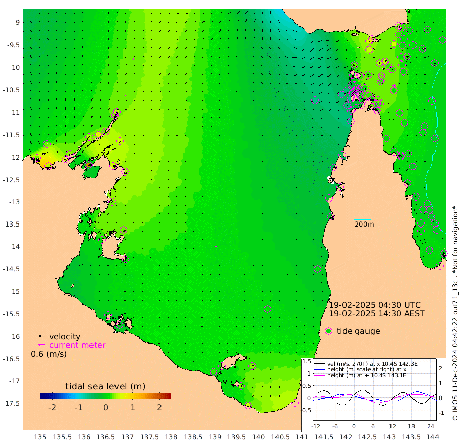 9cm/s 33T +3cm/s rms + 7cm/s -42T. ARA-GOC87 57m 9cm/s -150T +3cm/s rms + 2cm/s -2T. ARA-GOC87 60m 11cm/s 17T +2cm/s rms + 3cm/s 61T. ARA-GOC87 47m 28cm Daru 20cm Bobo Island -3cm Meer Island Barge 4cm Bramble Cay 13cm Unnamed Cay 4cm Pearce Cay 4cm Stephens Island 6cm Merrie England Shoals 21cm Mutacomal Reef 7cm Darnley Island Barge -4cm East Cay 15cm Yorke Island Barge 12cm Rennel Island 13cm Aureed Island 17cm Dungeness Reef 47cm Zagai Island 42cm Yam Island 70cm Dauan Island 70cm Saibai Island 52cm Phipi Reef 58cm Warrior Reef - West 27cm Mabuiag Island Barge 4cm Half Way Island 17cm Coconut Island 11cm Dugong Islet 22cm Poll Island 17cm Kirkcaldie Reef 20cm Suarji Island 29cm Sue Islet -36cm Hawkesbury Island 5cm Alert Patches 11cm Twin Island -14cm Badu Island 20cm St Pauls (Moa Island) -14cm Kubin (Moa Island) 3cm Ince Point -10cm Thursday Island -4cm Nardana Patches -16cm Turtle Head -26cm Round Island -39cm Goods Island -61cm Booby Island -58cm White Rocks Area -67cm Carpentaria 14cm Papou Point -62cm Bampfield Head -53cm Crab Island -54cm Red Wallis Island -30cm Packe Island 5cm Harrington Reef -39cm Herald Camp 12cm Sharp Point -21cm Red Island Point -14cm Possession Island 21cm Alpha Rock 13cm Frederick Point 22cm Wyborn Reef Light 24cm Tetley Island 3cm Triangle Reef -2cm Turtle Head Island -5cm Maclennan Cay -8cm Raine Island 9cm Mcsweeny Reef 8cm Collette Reef 1cm Shadwell Reef 6cm Hannibal Island -2cm Round Point -65cm Vrilya Point -6cm Cape Grenville -3cm Hicks Island 7cm Sir Charles Hardy Island -2cm Harvey Island -8cm Kay Reef -6cm Rocky Island -8cm Chapman Island -6cm Ham Reef -5cm Jubilee Reef -9cm Night Island -9cm Unnamed Reef No. 3 -9cm Morris Island -12cm 1st 3 Mile Opening -11cm Creech Reef -4cm Fife Island -12cm Eden Reef -12cm Stanley Island -13cm Normanby River 24cm Yabooma Island 43cm Hutchison River 31cm Elcho Island 29cm North West Crocodile Island 39cm Cape Wessel 40cm Stevens Island 74cm Guluwuru Island 29cm Hopeful Bay 26cm Auster Point 31cm Two Island Bay 60cm Cadell Strait 163cm Mallison Island 57cm Melville Bay (Gove Harbour) 58cm Truant Island 44cm Cape Arnhem 30cm Cape Grey 23cm Hawk Island 5cm Milner Bay (Groote Eylandt) 8cm Cape Beatrice -11cm West Island -19cm Centre Island 21cm Mornington Island 20cm West Wellesley Islands 34cm Bountiful Island 54cm Albert River Mouth 31cm Sweers Island 40cm Karumba 14cm Nassau River Offshore 7cm Christmas Creek -20cm Archer River -22cm Boyd Point -24cm Weipa (Humbug Point) -49cm Pennefather River -47cm Cullen Point