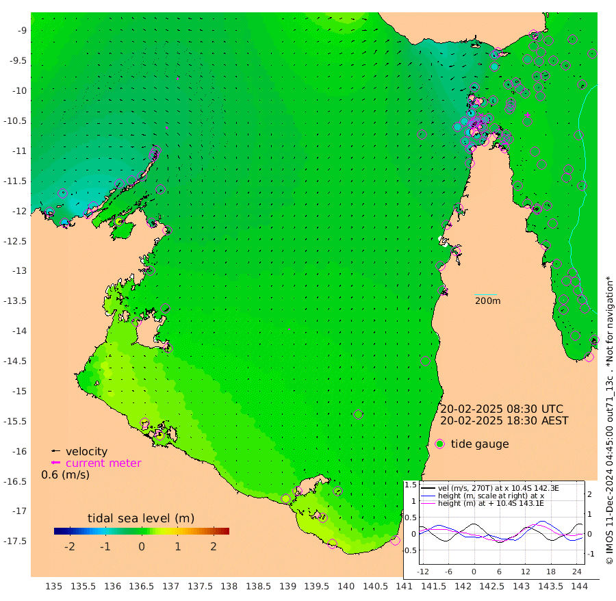 16cm/s -33T +3cm/s rms + 7cm/s -42T. ARA-GOC87 57m 10cm/s 0T +3cm/s rms + 2cm/s -2T. ARA-GOC87 60m 13cm/s -35T +2cm/s rms + 3cm/s 61T. ARA-GOC87 47m -39cm Daru -33cm Bobo Island -20cm Meer Island Barge -20cm Bramble Cay -29cm Unnamed Cay -39cm Pearce Cay -28cm Stephens Island -19cm Merrie England Shoals -27cm Mutacomal Reef -25cm Darnley Island Barge -17cm East Cay -31cm Yorke Island Barge -35cm Rennel Island -33cm Aureed Island -50cm Dungeness Reef -52cm Zagai Island -49cm Yam Island -81cm Dauan Island -59cm Saibai Island -87cm Phipi Reef -58cm Warrior Reef - West -70cm Mabuiag Island Barge -31cm Half Way Island -42cm Coconut Island -37cm Dugong Islet -49cm Poll Island -45cm Kirkcaldie Reef -66cm Suarji Island -44cm Sue Islet -97cm Hawkesbury Island -69cm Alert Patches -60cm Twin Island -101cm Badu Island -69cm St Pauls (Moa Island) -87cm Kubin (Moa Island) -70cm Ince Point -74cm Thursday Island -74cm Nardana Patches -85cm Turtle Head -88cm Round Island -94cm Goods Island -90cm Booby Island -85cm White Rocks Area -44cm Carpentaria -58cm Papou Point -101cm Bampfield Head -68cm Crab Island -74cm Red Wallis Island -77cm Packe Island -40cm Harrington Reef -86cm Herald Camp -10cm Sharp Point -69cm Red Island Point -75cm Possession Island -40cm Alpha Rock -52cm Frederick Point -38cm Wyborn Reef Light -41cm Tetley Island -22cm Triangle Reef -58cm Turtle Head Island -20cm Maclennan Cay -18cm Raine Island -30cm Mcsweeny Reef -23cm Collette Reef -19cm Shadwell Reef -22cm Hannibal Island -22cm Round Point -52cm Vrilya Point -14cm Cape Grenville -22cm Hicks Island -18cm Sir Charles Hardy Island -6cm Harvey Island -8cm Kay Reef -16cm Rocky Island -13cm Chapman Island -10cm Ham Reef -15cm Jubilee Reef -13cm Night Island -8cm Unnamed Reef No. 3 -16cm Morris Island -25cm 1st 3 Mile Opening -16cm Creech Reef -13cm Fife Island -14cm Eden Reef -11cm Stanley Island -9cm Normanby River -91cm Yabooma Island -111cm Hutchison River -84cm Elcho Island -79cm North West Crocodile Island -39cm Cape Wessel -67cm Stevens Island -42cm Guluwuru Island -59cm Hopeful Bay -60cm Auster Point -56cm Two Island Bay -85cm Cadell Strait 52cm Mallison Island -47cm Melville Bay (Gove Harbour) -49cm Truant Island -29cm Cape Arnhem -18cm Cape Grey -5cm Hawk Island 23cm Milner Bay (Groote Eylandt) 29cm Cape Beatrice 56cm West Island 59cm Centre Island 45cm Mornington Island 49cm West Wellesley Islands 28cm Bountiful Island 50cm Albert River Mouth 42cm Sweers Island 40cm Karumba 22cm Nassau River Offshore 1cm Christmas Creek -25cm Archer River -35cm Boyd Point -43cm Weipa (Humbug Point) -36cm Pennefather River -44cm Cullen Point