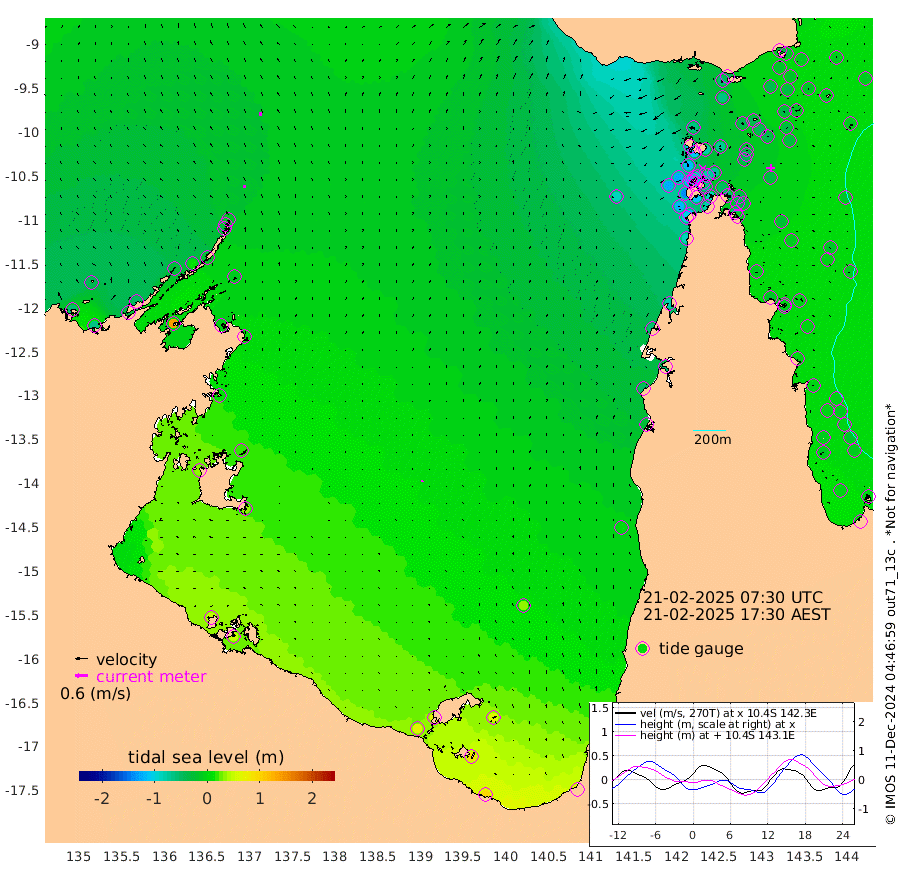 15cm/s -5T +3cm/s rms + 7cm/s -42T. ARA-GOC87 57m 8cm/s -27T +3cm/s rms + 2cm/s -2T. ARA-GOC87 60m 16cm/s 0T +2cm/s rms + 3cm/s 61T. ARA-GOC87 47m -27cm Daru -26cm Bobo Island -9cm Meer Island Barge -9cm Bramble Cay -17cm Unnamed Cay -36cm Pearce Cay -22cm Stephens Island -11cm Merrie England Shoals -20cm Mutacomal Reef -13cm Darnley Island Barge -9cm East Cay -21cm Yorke Island Barge -31cm Rennel Island -30cm Aureed Island -45cm Dungeness Reef -41cm Zagai Island -44cm Yam Island -60cm Dauan Island -38cm Saibai Island -63cm Phipi Reef -44cm Warrior Reef - West -67cm Mabuiag Island Barge -30cm Half Way Island -40cm Coconut Island -36cm Dugong Islet -50cm Poll Island -44cm Kirkcaldie Reef -72cm Suarji Island -36cm Sue Islet -118cm Hawkesbury Island -77cm Alert Patches -70cm Twin Island -110cm Badu Island -75cm St Pauls (Moa Island) -105cm Kubin (Moa Island) -82cm Ince Point -91cm Thursday Island -89cm Nardana Patches -102cm Turtle Head -108cm Round Island -117cm Goods Island -124cm Booby Island -122cm White Rocks Area -90cm Carpentaria -64cm Papou Point -136cm Bampfield Head -98cm Crab Island -114cm Red Wallis Island -108cm Packe Island -45cm Harrington Reef -115cm Herald Camp -10cm Sharp Point -82cm Red Island Point -89cm Possession Island -46cm Alpha Rock -58cm Frederick Point -34cm Wyborn Reef Light -38cm Tetley Island -17cm Triangle Reef -56cm Turtle Head Island -15cm Maclennan Cay -9cm Raine Island -23cm Mcsweeny Reef -13cm Collette Reef -7cm Shadwell Reef -11cm Hannibal Island -15cm Round Point -87cm Vrilya Point -9cm Cape Grenville -14cm Hicks Island -7cm Sir Charles Hardy Island -4cm Harvey Island -1cm Kay Reef -7cm Rocky Island -6cm Chapman Island -3cm Ham Reef -5cm Jubilee Reef -10cm Night Island -4cm Unnamed Reef No. 3 -8cm Morris Island -16cm 1st 3 Mile Opening -9cm Creech Reef -9cm Fife Island -3cm Eden Reef -3cm Stanley Island -3cm Normanby River -56cm Yabooma Island -61cm Hutchison River -46cm Elcho Island -43cm North West Crocodile Island -14cm Cape Wessel -29cm Stevens Island 10cm Guluwuru Island -26cm Hopeful Bay -31cm Auster Point -28cm Two Island Bay -29cm Cadell Strait 139cm Mallison Island -4cm Melville Bay (Gove Harbour) -8cm Truant Island 2cm Cape Arnhem 11cm Cape Grey 15cm Hawk Island 32cm Milner Bay (Groote Eylandt) 36cm Cape Beatrice 49cm West Island 48cm Centre Island 62cm Mornington Island 64cm West Wellesley Islands 65cm Bountiful Island 94cm Albert River Mouth 86cm Sweers Island 80cm Karumba 33cm Nassau River Offshore 6cm Christmas Creek -29cm Archer River -46cm Boyd Point -53cm Weipa (Humbug Point) -56cm Pennefather River -75cm Cullen Point
