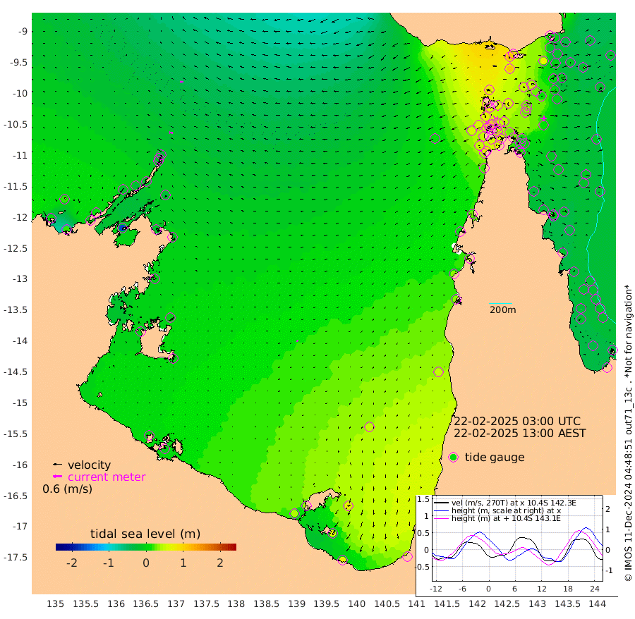 24cm/s -86T +3cm/s rms + 7cm/s -42T. ARA-GOC87 57m 15cm/s -138T +3cm/s rms + 2cm/s -2T. ARA-GOC87 60m 22cm/s -86T +2cm/s rms + 3cm/s 61T. ARA-GOC87 47m 8cm Daru 0cm Bobo Island -19cm Meer Island Barge -26cm Bramble Cay -17cm Unnamed Cay -2cm Pearce Cay -14cm Stephens Island -32cm Merrie England Shoals -11cm Mutacomal Reef -16cm Darnley Island Barge -20cm East Cay -4cm Yorke Island Barge 2cm Rennel Island 4cm Aureed Island 27cm Dungeness Reef 50cm Zagai Island 52cm Yam Island 108cm Dauan Island 86cm Saibai Island 108cm Phipi Reef 69cm Warrior Reef - West 73cm Mabuiag Island Barge -5cm Half Way Island 11cm Coconut Island 8cm Dugong Islet 32cm Poll Island 28cm Kirkcaldie Reef 65cm Suarji Island 29cm Sue Islet 69cm Hawkesbury Island 51cm Alert Patches 46cm Twin Island 78cm Badu Island 61cm St Pauls (Moa Island) 68cm Kubin (Moa Island) 58cm Ince Point 58cm Thursday Island 61cm Nardana Patches 69cm Turtle Head 65cm Round Island 66cm Goods Island 56cm Booby Island 54cm White Rocks Area 11cm Carpentaria 50cm Papou Point 52cm Bampfield Head 43cm Crab Island 49cm Red Wallis Island 56cm Packe Island 6cm Harrington Reef 73cm Herald Camp 17cm Sharp Point 60cm Red Island Point 56cm Possession Island 24cm Alpha Rock 29cm Frederick Point -5cm Wyborn Reef Light 2cm Tetley Island -9cm Triangle Reef 0cm Turtle Head Island -11cm Maclennan Cay -17cm Raine Island -12cm Mcsweeny Reef -18cm Collette Reef -19cm Shadwell Reef -26cm Hannibal Island -28cm Round Point 19cm Vrilya Point -29cm Cape Grenville -16cm Hicks Island -14cm Sir Charles Hardy Island -6cm Harvey Island -36cm Kay Reef -19cm Rocky Island -23cm Chapman Island -22cm Ham Reef -21cm Jubilee Reef -20cm Night Island -25cm Unnamed Reef No. 3 -23cm Morris Island -15cm 1st 3 Mile Opening -20cm Creech Reef -21cm Fife Island -31cm Eden Reef -31cm Stanley Island -32cm Normanby River 13cm Yabooma Island 21cm Hutchison River 9cm Elcho Island 16cm North West Crocodile Island -29cm Cape Wessel -21cm Stevens Island -28cm Guluwuru Island -17cm Hopeful Bay -17cm Auster Point -17cm Two Island Bay -3cm Cadell Strait -171cm Mallison Island -17cm Melville Bay (Gove Harbour) -24cm Truant Island -15cm Cape Arnhem -1cm Cape Grey 0cm Hawk Island -7cm Milner Bay (Groote Eylandt) 4cm Cape Beatrice 4cm West Island 0cm Centre Island 44cm Mornington Island 39cm West Wellesley Islands 78cm Bountiful Island 77cm Albert River Mouth 67cm Sweers Island 87cm Karumba 51cm Nassau River Offshore 48cm Christmas Creek 33cm Archer River 33cm Boyd Point 45cm Weipa (Humbug Point) 9cm Pennefather River 30cm Cullen Point