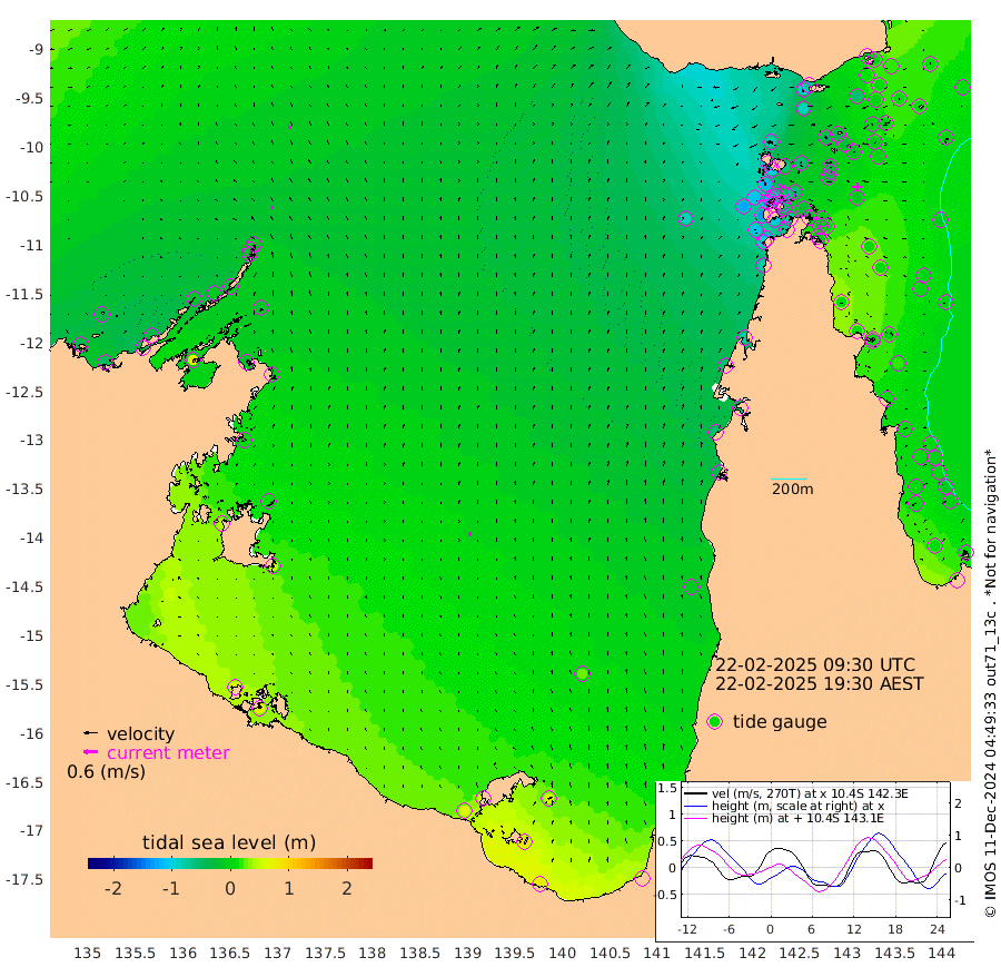 15cm/s 0T +3cm/s rms + 7cm/s -42T. ARA-GOC87 57m 19cm/s -5T +3cm/s rms + 2cm/s -2T. ARA-GOC87 60m 14cm/s 15T +2cm/s rms + 3cm/s 61T. ARA-GOC87 47m -9cm Daru -2cm Bobo Island -1cm Meer Island Barge 11cm Bramble Cay 7cm Unnamed Cay -7cm Pearce Cay 2cm Stephens Island 20cm Merrie England Shoals 9cm Mutacomal Reef 1cm Darnley Island Barge 5cm East Cay -5cm Yorke Island Barge -5cm Rennel Island -9cm Aureed Island -27cm Dungeness Reef -44cm Zagai Island -42cm Yam Island -97cm Dauan Island -73cm Saibai Island -88cm Phipi Reef -55cm Warrior Reef - West -78cm Mabuiag Island Barge -3cm Half Way Island -16cm Coconut Island -11cm Dugong Islet -32cm Poll Island -25cm Kirkcaldie Reef -58cm Suarji Island -27cm Sue Islet -116cm Hawkesbury Island -61cm Alert Patches -53cm Twin Island -116cm Badu Island -66cm St Pauls (Moa Island) -105cm Kubin (Moa Island) -73cm Ince Point -82cm Thursday Island -81cm Nardana Patches -99cm Turtle Head -107cm Round Island -116cm Goods Island -122cm Booby Island -108cm White Rocks Area -87cm Carpentaria -53cm Papou Point -133cm Bampfield Head -96cm Crab Island -108cm Red Wallis Island -102cm Packe Island -9cm Harrington Reef -122cm Herald Camp -10cm Sharp Point -74cm Red Island Point -76cm Possession Island -30cm Alpha Rock -35cm Frederick Point -6cm Wyborn Reef Light -12cm Tetley Island -9cm Triangle Reef -22cm Turtle Head Island -5cm Maclennan Cay -5cm Raine Island 0cm Mcsweeny Reef 6cm Collette Reef 0cm Shadwell Reef 11cm Hannibal Island 10cm Round Point -82cm Vrilya Point 12cm Cape Grenville 0cm Hicks Island -2cm Sir Charles Hardy Island 1cm Harvey Island 16cm Kay Reef 1cm Rocky Island 2cm Chapman Island 2cm Ham Reef 0cm Jubilee Reef -1cm Night Island 5cm Unnamed Reef No. 3 2cm Morris Island -11cm 1st 3 Mile Opening -2cm Creech Reef 2cm Fife Island 5cm Eden Reef 8cm Stanley Island 15cm Normanby River -40cm Yabooma Island -52cm Hutchison River -36cm Elcho Island -31cm North West Crocodile Island -9cm Cape Wessel -15cm Stevens Island -12cm Guluwuru Island -15cm Hopeful Bay -22cm Auster Point -25cm Two Island Bay -35cm Cadell Strait 77cm Mallison Island -16cm Melville Bay (Gove Harbour) -20cm Truant Island -11cm Cape Arnhem 7cm Cape Grey 14cm Hawk Island 43cm Milner Bay (Groote Eylandt) 45cm Cape Beatrice 67cm West Island 68cm Centre Island 58cm Mornington Island 65cm West Wellesley Islands 56cm Bountiful Island 82cm Albert River Mouth 86cm Sweers Island 70cm Karumba 24cm Nassau River Offshore -9cm Christmas Creek -39cm Archer River -59cm Boyd Point -67cm Weipa (Humbug Point) -54cm Pennefather River -80cm Cullen Point