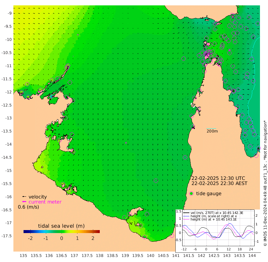 6cm/s 71T +3cm/s rms + 7cm/s -42T. ARA-GOC87 57m 27cm/s 5T +3cm/s rms + 2cm/s -2T. ARA-GOC87 60m 12cm/s 94T +2cm/s rms + 3cm/s 61T. ARA-GOC87 47m -23cm Daru -18cm Bobo Island -46cm Meer Island Barge -38cm Bramble Cay -33cm Unnamed Cay -20cm Pearce Cay -31cm Stephens Island -29cm Merrie England Shoals -18cm Mutacomal Reef -41cm Darnley Island Barge -42cm East Cay -33cm Yorke Island Barge -22cm Rennel Island -19cm Aureed Island -20cm Dungeness Reef -14cm Zagai Island -11cm Yam Island -39cm Dauan Island -37cm Saibai Island -42cm Phipi Reef -23cm Warrior Reef - West -15cm Mabuiag Island Barge -17cm Half Way Island -10cm Coconut Island -17cm Dugong Islet -5cm Poll Island -12cm Kirkcaldie Reef -1cm Suarji Island -18cm Sue Islet -33cm Hawkesbury Island -9cm Alert Patches 0cm Twin Island -27cm Badu Island -1cm St Pauls (Moa Island) -20cm Kubin (Moa Island) -8cm Ince Point -8cm Thursday Island -9cm Nardana Patches -23cm Turtle Head -28cm Round Island -31cm Goods Island -29cm Booby Island -12cm White Rocks Area -16cm Carpentaria 2cm Papou Point -40cm Bampfield Head -19cm Crab Island -16cm Red Wallis Island -18cm Packe Island -4cm Harrington Reef -44cm Herald Camp 2cm Sharp Point -13cm Red Island Point -13cm Possession Island -1cm Alpha Rock -3cm Frederick Point -14cm Wyborn Reef Light -10cm Tetley Island -36cm Triangle Reef -15cm Turtle Head Island -40cm Maclennan Cay -45cm Raine Island -28cm Mcsweeny Reef -36cm Collette Reef -47cm Shadwell Reef -39cm Hannibal Island -35cm Round Point -16cm Vrilya Point -39cm Cape Grenville -42cm Hicks Island -55cm Sir Charles Hardy Island -12cm Harvey Island -46cm Kay Reef -49cm Rocky Island -47cm Chapman Island -49cm Ham Reef -49cm Jubilee Reef -39cm Night Island -44cm Unnamed Reef No. 3 -48cm Morris Island -52cm 1st 3 Mile Opening -49cm Creech Reef -39cm Fife Island -59cm Eden Reef -51cm Stanley Island -45cm Normanby River 34cm Yabooma Island 24cm Hutchison River 31cm Elcho Island 36cm North West Crocodile Island 24cm Cape Wessel 34cm Stevens Island -21cm Guluwuru Island 21cm Hopeful Bay 23cm Auster Point 21cm Two Island Bay 12cm Cadell Strait -92cm Mallison Island -9cm Melville Bay (Gove Harbour) -6cm Truant Island -8cm Cape Arnhem -2cm Cape Grey 1cm Hawk Island 31cm Milner Bay (Groote Eylandt) 24cm Cape Beatrice 39cm West Island 40cm Centre Island -3cm Mornington Island 2cm West Wellesley Islands -16cm Bountiful Island 9cm Albert River Mouth 15cm Sweers Island 1cm Karumba -24cm Nassau River Offshore -44cm Christmas Creek -45cm Archer River -43cm Boyd Point -49cm Weipa (Humbug Point) -23cm Pennefather River -27cm Cullen Point