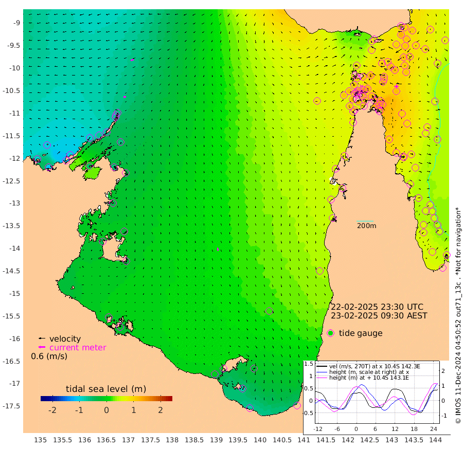 23cm/s -99T +3cm/s rms + 7cm/s -42T. ARA-GOC87 57m 26cm/s 171T +3cm/s rms + 2cm/s -2T. ARA-GOC87 60m 31cm/s -102T +2cm/s rms + 3cm/s 61T. ARA-GOC87 47m 110cm Daru 104cm Bobo Island 59cm Meer Island Barge 84cm Bramble Cay 108cm Unnamed Cay 109cm Pearce Cay 97cm Stephens Island 111cm Merrie England Shoals 125cm Mutacomal Reef 85cm Darnley Island Barge 71cm East Cay 96cm Yorke Island Barge 113cm Rennel Island 106cm Aureed Island 113cm Dungeness Reef 92cm Zagai Island 101cm Yam Island 79cm Dauan Island 74cm Saibai Island 89cm Phipi Reef 101cm Warrior Reef - West 90cm Mabuiag Island Barge 106cm Half Way Island 118cm Coconut Island 117cm Dugong Islet 116cm Poll Island 114cm Kirkcaldie Reef 129cm Suarji Island 107cm Sue Islet 118cm Hawkesbury Island 133cm Alert Patches 127cm Twin Island 102cm Badu Island 120cm St Pauls (Moa Island) 110cm Kubin (Moa Island) 118cm Ince Point 117cm Thursday Island 116cm Nardana Patches 117cm Turtle Head 111cm Round Island 112cm Goods Island 107cm Booby Island 115cm White Rocks Area 89cm Carpentaria 100cm Papou Point 125cm Bampfield Head 79cm Crab Island 112cm Red Wallis Island 123cm Packe Island 131cm Harrington Reef 116cm Herald Camp 30cm Sharp Point 99cm Red Island Point 115cm Possession Island 119cm Alpha Rock 127cm Frederick Point 124cm Wyborn Reef Light 125cm Tetley Island 71cm Triangle Reef 121cm Turtle Head Island 68cm Maclennan Cay 47cm Raine Island 103cm Mcsweeny Reef 95cm Collette Reef 66cm Shadwell Reef 99cm Hannibal Island 95cm Round Point 73cm Vrilya Point 87cm Cape Grenville 72cm Hicks Island 78cm Sir Charles Hardy Island 24cm Harvey Island 76cm Kay Reef 59cm Rocky Island 61cm Chapman Island 54cm Ham Reef 54cm Jubilee Reef 56cm Night Island 60cm Unnamed Reef No. 3 60cm Morris Island 52cm 1st 3 Mile Opening 58cm Creech Reef 61cm Fife Island 57cm Eden Reef 62cm Stanley Island 65cm Normanby River -94cm Yabooma Island -107cm Hutchison River -103cm Elcho Island -100cm North West Crocodile Island -65cm Cape Wessel -91cm Stevens Island -72cm Guluwuru Island -79cm Hopeful Bay -71cm Auster Point -85cm Two Island Bay -114cm Cadell Strait -58cm Mallison Island -61cm Melville Bay (Gove Harbour) -61cm Truant Island -43cm Cape Arnhem -40cm Cape Grey -28cm Hawk Island -44cm Milner Bay (Groote Eylandt) -32cm Cape Beatrice -22cm West Island -22cm Centre Island -17cm Mornington Island -10cm West Wellesley Islands -28cm Bountiful Island -82cm Albert River Mouth -83cm Sweers Island -63cm Karumba 17cm Nassau River Offshore 45cm Christmas Creek 57cm Archer River 65cm Boyd Point 65cm Weipa (Humbug Point) 55cm Pennefather River 73cm Cullen Point