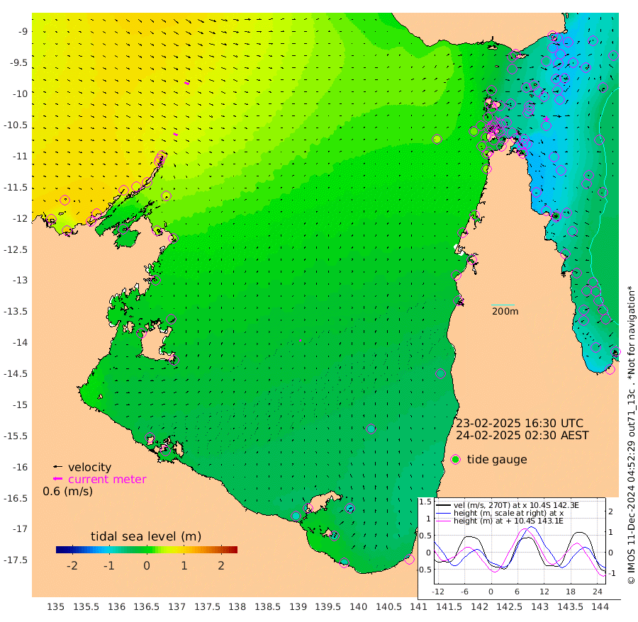 29cm/s 116T +3cm/s rms + 7cm/s -42T. ARA-GOC87 57m 15cm/s 24T +3cm/s rms + 2cm/s -2T. ARA-GOC87 60m 31cm/s 114T +2cm/s rms + 3cm/s 61T. ARA-GOC87 47m -100cm Daru -95cm Bobo Island -60cm Meer Island Barge -89cm Bramble Cay -106cm Unnamed Cay -94cm Pearce Cay -93cm Stephens Island -115cm Merrie England Shoals -117cm Mutacomal Reef -85cm Darnley Island Barge -74cm East Cay -89cm Yorke Island Barge -100cm Rennel Island -90cm Aureed Island -88cm Dungeness Reef -58cm Zagai Island -65cm Yam Island -25cm Dauan Island -30cm Saibai Island -52cm Phipi Reef -66cm Warrior Reef - West -21cm Mabuiag Island Barge -92cm Half Way Island -90cm Coconut Island -96cm Dugong Islet -78cm Poll Island -85cm Kirkcaldie Reef -70cm Suarji Island -78cm Sue Islet -3cm Hawkesbury Island -66cm Alert Patches -63cm Twin Island 6cm Badu Island -52cm St Pauls (Moa Island) -7cm Kubin (Moa Island) -40cm Ince Point -27cm Thursday Island -30cm Nardana Patches -19cm Turtle Head -10cm Round Island 6cm Goods Island 27cm Booby Island 13cm White Rocks Area 40cm Carpentaria -42cm Papou Point 18cm Bampfield Head 27cm Crab Island 18cm Red Wallis Island -10cm Packe Island -103cm Harrington Reef -1cm Herald Camp -20cm Sharp Point -23cm Red Island Point -40cm Possession Island -71cm Alpha Rock -80cm Frederick Point -102cm Wyborn Reef Light -97cm Tetley Island -59cm Triangle Reef -89cm Turtle Head Island -62cm Maclennan Cay -45cm Raine Island -94cm Mcsweeny Reef -94cm Collette Reef -67cm Shadwell Reef -102cm Hannibal Island -94cm Round Point 30cm Vrilya Point -88cm Cape Grenville -73cm Hicks Island -75cm Sir Charles Hardy Island -25cm Harvey Island -82cm Kay Reef -61cm Rocky Island -59cm Chapman Island -54cm Ham Reef -55cm Jubilee Reef -53cm Night Island -57cm Unnamed Reef No. 3 -62cm Morris Island -46cm 1st 3 Mile Opening -56cm Creech Reef -61cm Fife Island -63cm Eden Reef -67cm Stanley Island -74cm Normanby River 96cm Yabooma Island 107cm Hutchison River 100cm Elcho Island 92cm North West Crocodile Island 71cm Cape Wessel 84cm Stevens Island 56cm Guluwuru Island 69cm Hopeful Bay 75cm Auster Point 87cm Two Island Bay 100cm Cadell Strait -12cm Mallison Island 51cm Melville Bay (Gove Harbour) 59cm Truant Island 36cm Cape Arnhem 13cm Cape Grey -5cm Hawk Island -4cm Milner Bay (Groote Eylandt) -21cm Cape Beatrice -41cm West Island -41cm Centre Island -82cm Mornington Island -87cm West Wellesley Islands -95cm Bountiful Island -79cm Albert River Mouth -82cm Sweers Island -92cm Karumba -80cm Nassau River Offshore -66cm Christmas Creek -32cm Archer River -10cm Boyd Point -11cm Weipa (Humbug Point) 7cm Pennefather River 18cm Cullen Point