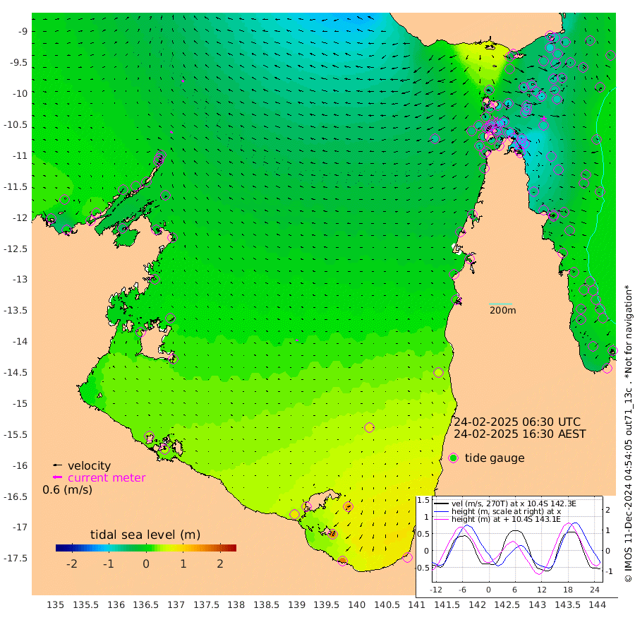 19cm/s -57T +3cm/s rms + 7cm/s -42T. ARA-GOC87 57m 14cm/s -85T +3cm/s rms + 2cm/s -2T. ARA-GOC87 60m 16cm/s -44T +2cm/s rms + 3cm/s 61T. ARA-GOC87 47m -77cm Daru -76cm Bobo Island -20cm Meer Island Barge -45cm Bramble Cay -69cm Unnamed Cay -73cm Pearce Cay -59cm Stephens Island -74cm Merrie England Shoals -91cm Mutacomal Reef -46cm Darnley Island Barge -26cm East Cay -61cm Yorke Island Barge -75cm Rennel Island -71cm Aureed Island -73cm Dungeness Reef -71cm Zagai Island -74cm Yam Island -36cm Dauan Island -39cm Saibai Island -25cm Phipi Reef -64cm Warrior Reef - West -63cm Mabuiag Island Barge -76cm Half Way Island -90cm Coconut Island -82cm Dugong Islet -89cm Poll Island -81cm Kirkcaldie Reef -90cm Suarji Island -78cm Sue Islet -63cm Hawkesbury Island -94cm Alert Patches -98cm Twin Island -63cm Badu Island -95cm St Pauls (Moa Island) -70cm Kubin (Moa Island) -86cm Ince Point -83cm Thursday Island -83cm Nardana Patches -68cm Turtle Head -58cm Round Island -60cm Goods Island -59cm Booby Island -73cm White Rocks Area -70cm Carpentaria -82cm Papou Point -68cm Bampfield Head -44cm Crab Island -70cm Red Wallis Island -74cm Packe Island -100cm Harrington Reef -42cm Herald Camp -23cm Sharp Point -55cm Red Island Point -72cm Possession Island -98cm Alpha Rock -99cm Frederick Point -100cm Wyborn Reef Light -103cm Tetley Island -34cm Triangle Reef -98cm Turtle Head Island -26cm Maclennan Cay -8cm Raine Island -67cm Mcsweeny Reef -55cm Collette Reef -24cm Shadwell Reef -58cm Hannibal Island -53cm Round Point -48cm Vrilya Point -42cm Cape Grenville -28cm Hicks Island -25cm Sir Charles Hardy Island -10cm Harvey Island -30cm Kay Reef -12cm Rocky Island -14cm Chapman Island -9cm Ham Reef -12cm Jubilee Reef -17cm Night Island -15cm Unnamed Reef No. 3 -15cm Morris Island -9cm 1st 3 Mile Opening -13cm Creech Reef -21cm Fife Island -7cm Eden Reef -14cm Stanley Island -19cm Normanby River 0cm Yabooma Island 3cm Hutchison River 5cm Elcho Island 9cm North West Crocodile Island -32cm Cape Wessel -21cm Stevens Island -12cm Guluwuru Island -4cm Hopeful Bay -20cm Auster Point -12cm Two Island Bay 0cm Cadell Strait -48cm Mallison Island -12cm Melville Bay (Gove Harbour) -23cm Truant Island -10cm Cape Arnhem 10cm Cape Grey 18cm Hawk Island 25cm Milner Bay (Groote Eylandt) 33cm Cape Beatrice 38cm West Island 42cm Centre Island 94cm Mornington Island 85cm West Wellesley Islands 128cm Bountiful Island 158cm Albert River Mouth 159cm Sweers Island 161cm Karumba 75cm Nassau River Offshore 49cm Christmas Creek 16cm Archer River -7cm Boyd Point 5cm Weipa (Humbug Point) -24cm Pennefather River -31cm Cullen Point