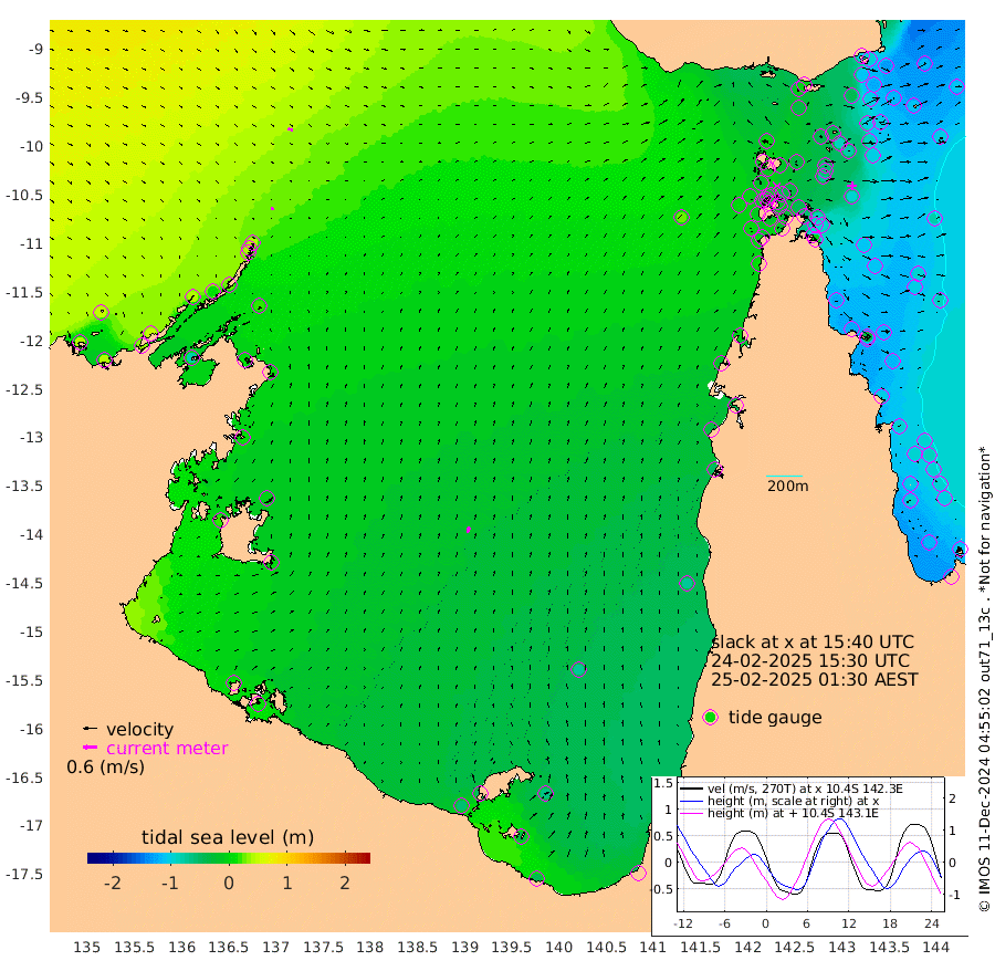 15cm/s 106T +3cm/s rms + 7cm/s -42T. ARA-GOC87 57m 27cm/s 16T +3cm/s rms + 2cm/s -2T. ARA-GOC87 60m 21cm/s 109T +2cm/s rms + 3cm/s 61T. ARA-GOC87 47m -99cm Daru -93cm Bobo Island -99cm Meer Island Barge -117cm Bramble Cay -121cm Unnamed Cay -103cm Pearce Cay -113cm Stephens Island -130cm Merrie England Shoals -112cm Mutacomal Reef -110cm Darnley Island Barge -108cm East Cay -100cm Yorke Island Barge -105cm Rennel Island -90cm Aureed Island -85cm Dungeness Reef -32cm Zagai Island -41cm Yam Island -6cm Dauan Island -1cm Saibai Island -34cm Phipi Reef -42cm Warrior Reef - West 5cm Mabuiag Island Barge -100cm Half Way Island -78cm Coconut Island -96cm Dugong Islet -58cm Poll Island -73cm Kirkcaldie Reef -33cm Suarji Island -58cm Sue Islet -19cm Hawkesbury Island -42cm Alert Patches -36cm Twin Island 1cm Badu Island -21cm St Pauls (Moa Island) -14cm Kubin (Moa Island) -21cm Ince Point -14cm Thursday Island -15cm Nardana Patches -22cm Turtle Head -19cm Round Island -15cm Goods Island 1cm Booby Island -1cm White Rocks Area 25cm Carpentaria -17cm Papou Point -9cm Bampfield Head 5cm Crab Island 1cm Red Wallis Island -21cm Packe Island -91cm Harrington Reef -26cm Herald Camp -4cm Sharp Point -16cm Red Island Point -27cm Possession Island -43cm Alpha Rock -59cm Frederick Point -94cm Wyborn Reef Light -83cm Tetley Island -82cm Triangle Reef -94cm Turtle Head Island -94cm Maclennan Cay -87cm Raine Island -106cm Mcsweeny Reef -111cm Collette Reef -100cm Shadwell Reef -124cm Hannibal Island -121cm Round Point 8cm Vrilya Point -117cm Cape Grenville -107cm Hicks Island -113cm Sir Charles Hardy Island -35cm Harvey Island -118cm Kay Reef -100cm Rocky Island -96cm Chapman Island -92cm Ham Reef -95cm Jubilee Reef -89cm Night Island -94cm Unnamed Reef No. 3 -104cm Morris Island -93cm 1st 3 Mile Opening -98cm Creech Reef -97cm Fife Island -119cm Eden Reef -112cm Stanley Island -118cm Normanby River 42cm Yabooma Island 41cm Hutchison River 47cm Elcho Island 47cm North West Crocodile Island 42cm Cape Wessel 40cm Stevens Island 8cm Guluwuru Island 26cm Hopeful Bay 37cm Auster Point 40cm Two Island Bay 36cm Cadell Strait -79cm Mallison Island 14cm Melville Bay (Gove Harbour) 20cm Truant Island 12cm Cape Arnhem 8cm Cape Grey -3cm Hawk Island 20cm Milner Bay (Groote Eylandt) 4cm Cape Beatrice 8cm West Island 8cm Centre Island -51cm Mornington Island -53cm West Wellesley Islands -62cm Bountiful Island -44cm Albert River Mouth -37cm Sweers Island -57cm Karumba -70cm Nassau River Offshore -74cm Christmas Creek -52cm Archer River -33cm Boyd Point -40cm Weipa (Humbug Point) -15cm Pennefather River -4cm Cullen Point