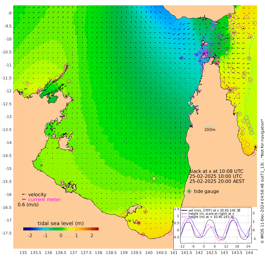 17cm/s 32T +3cm/s rms + 7cm/s -42T. ARA-GOC87 57m 22cm/s -25T +3cm/s rms + 2cm/s -2T. ARA-GOC87 60m 24cm/s 40T +2cm/s rms + 3cm/s 61T. ARA-GOC87 47m 32cm Daru 40cm Bobo Island 49cm Meer Island Barge 65cm Bramble Cay 58cm Unnamed Cay 44cm Pearce Cay 55cm Stephens Island 71cm Merrie England Shoals 44cm Mutacomal Reef 53cm Darnley Island Barge 57cm East Cay 40cm Yorke Island Barge 38cm Rennel Island 29cm Aureed Island 10cm Dungeness Reef -39cm Zagai Island -40cm Yam Island -107cm Dauan Island -96cm Saibai Island -68cm Phipi Reef -49cm Warrior Reef - West -100cm Mabuiag Island Barge 38cm Half Way Island 10cm Coconut Island 24cm Dugong Islet -17cm Poll Island -4cm Kirkcaldie Reef -55cm Suarji Island -16cm Sue Islet -131cm Hawkesbury Island -60cm Alert Patches -56cm Twin Island -133cm Badu Island -73cm St Pauls (Moa Island) -118cm Kubin (Moa Island) -86cm Ince Point -99cm Thursday Island -97cm Nardana Patches -111cm Turtle Head -111cm Round Island -132cm Goods Island -153cm Booby Island -138cm White Rocks Area -150cm Carpentaria -60cm Papou Point -149cm Bampfield Head -125cm Crab Island -149cm Red Wallis Island -126cm Packe Island 23cm Harrington Reef -135cm Herald Camp -18cm Sharp Point -86cm Red Island Point -70cm Possession Island -39cm Alpha Rock -24cm Frederick Point 26cm Wyborn Reef Light 12cm Tetley Island 25cm Triangle Reef 28cm Turtle Head Island 37cm Maclennan Cay 39cm Raine Island 45cm Mcsweeny Reef 53cm Collette Reef 46cm Shadwell Reef 66cm Hannibal Island 65cm Round Point -119cm Vrilya Point 61cm Cape Grenville 54cm Hicks Island 42cm Sir Charles Hardy Island 18cm Harvey Island 64cm Kay Reef 49cm Rocky Island 44cm Chapman Island 41cm Ham Reef 45cm Jubilee Reef 40cm Night Island 41cm Unnamed Reef No. 3 52cm Morris Island 39cm 1st 3 Mile Opening 44cm Creech Reef 48cm Fife Island 64cm Eden Reef 59cm Stanley Island 71cm Normanby River 49cm Yabooma Island 55cm Hutchison River 48cm Elcho Island 49cm North West Crocodile Island 28cm Cape Wessel 57cm Stevens Island 41cm Guluwuru Island 57cm Hopeful Bay 40cm Auster Point 37cm Two Island Bay 58cm Cadell Strait 93cm Mallison Island 38cm Melville Bay (Gove Harbour) 32cm Truant Island 23cm Cape Arnhem 43cm Cape Grey 47cm Hawk Island 59cm Milner Bay (Groote Eylandt) 58cm Cape Beatrice 61cm West Island 63cm Centre Island 91cm Mornington Island 92cm West Wellesley Islands 117cm Bountiful Island 145cm Albert River Mouth 170cm Sweers Island 142cm Karumba 52cm Nassau River Offshore 6cm Christmas Creek -35cm Archer River -71cm Boyd Point -70cm Weipa (Humbug Point) -67cm Pennefather River -113cm Cullen Point