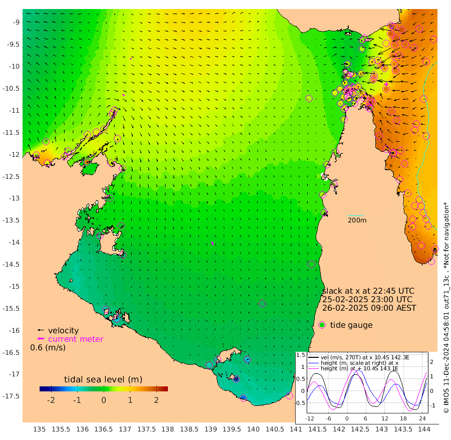 21cm/s 127T +3cm/s rms + 7cm/s -42T. ARA-GOC87 57m 31cm/s 166T +3cm/s rms + 2cm/s -2T. ARA-GOC87 60m 12cm/s 144T +2cm/s rms + 3cm/s 61T. ARA-GOC87 47m 162cm Daru 158cm Bobo Island 131cm Meer Island Barge 164cm Bramble Cay 181cm Unnamed Cay 170cm Pearce Cay 172cm Stephens Island 191cm Merrie England Shoals 181cm Mutacomal Reef 158cm Darnley Island Barge 142cm East Cay 156cm Yorke Island Barge 169cm Rennel Island 149cm Aureed Island 145cm Dungeness Reef 86cm Zagai Island 99cm Yam Island 35cm Dauan Island 27cm Saibai Island 40cm Phipi Reef 88cm Warrior Reef - West 44cm Mabuiag Island Barge 169cm Half Way Island 148cm Coconut Island 167cm Dugong Islet 128cm Poll Island 137cm Kirkcaldie Reef 93cm Suarji Island 117cm Sue Islet 89cm Hawkesbury Island 109cm Alert Patches 111cm Twin Island 67cm Badu Island 94cm St Pauls (Moa Island) 87cm Kubin (Moa Island) 90cm Ince Point 85cm Thursday Island 84cm Nardana Patches 86cm Turtle Head 72cm Round Island 83cm Goods Island 70cm Booby Island 81cm White Rocks Area 49cm Carpentaria 84cm Papou Point 79cm Bampfield Head 48cm Crab Island 74cm Red Wallis Island 93cm Packe Island 172cm Harrington Reef 70cm Herald Camp 14cm Sharp Point 64cm Red Island Point 80cm Possession Island 115cm Alpha Rock 135cm Frederick Point 173cm Wyborn Reef Light 164cm Tetley Island 118cm Triangle Reef 185cm Turtle Head Island 128cm Maclennan Cay 109cm Raine Island 166cm Mcsweeny Reef 158cm Collette Reef 128cm Shadwell Reef 176cm Hannibal Island 172cm Round Point 46cm Vrilya Point 157cm Cape Grenville 142cm Hicks Island 148cm Sir Charles Hardy Island 46cm Harvey Island 150cm Kay Reef 123cm Rocky Island 117cm Chapman Island 112cm Ham Reef 121cm Jubilee Reef 114cm Night Island 117cm Unnamed Reef No. 3 131cm Morris Island 119cm 1st 3 Mile Opening 124cm Creech Reef 127cm Fife Island 144cm Eden Reef 138cm Stanley Island 150cm Normanby River 47cm Yabooma Island 61cm Hutchison River 36cm Elcho Island 28cm North West Crocodile Island 50cm Cape Wessel 55cm Stevens Island 73cm Guluwuru Island 41cm Hopeful Bay 47cm Auster Point 48cm Two Island Bay 66cm Cadell Strait 165cm Mallison Island 55cm Melville Bay (Gove Harbour) 63cm Truant Island 34cm Cape Arnhem 1cm Cape Grey -15cm Hawk Island -60cm Milner Bay (Groote Eylandt) -56cm Cape Beatrice -89cm West Island -98cm Centre Island -89cm Mornington Island -78cm West Wellesley Islands -108cm Bountiful Island -152cm Albert River Mouth -175cm Sweers Island -151cm Karumba -38cm Nassau River Offshore 5cm Christmas Creek 28cm Archer River 40cm Boyd Point 38cm Weipa (Humbug Point) 38cm Pennefather River 37cm Cullen Point