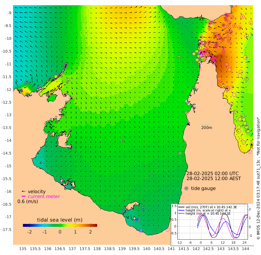 7cm/s 119T +3cm/s rms + 7cm/s -42T. ARA-GOC87 57m 33cm/s 167T +3cm/s rms + 2cm/s -2T. ARA-GOC87 60m 5cm/s -96T +2cm/s rms + 3cm/s 61T. ARA-GOC87 47m 184cm Daru 168cm Bobo Island 67cm Meer Island Barge 108cm Bramble Cay 154cm Unnamed Cay 154cm Pearce Cay 137cm Stephens Island 150cm Merrie England Shoals 186cm Mutacomal Reef 122cm Darnley Island Barge 75cm East Cay 149cm Yorke Island Barge 164cm Rennel Island 155cm Aureed Island 173cm Dungeness Reef 179cm Zagai Island 185cm Yam Island 164cm Dauan Island 153cm Saibai Island 155cm Phipi Reef 193cm Warrior Reef - West 132cm Mabuiag Island Barge 161cm Half Way Island 178cm Coconut Island 178cm Dugong Islet 183cm Poll Island 183cm Kirkcaldie Reef 177cm Suarji Island 177cm Sue Islet 86cm Hawkesbury Island 172cm Alert Patches 178cm Twin Island 94cm Badu Island 184cm St Pauls (Moa Island) 113cm Kubin (Moa Island) 151cm Ince Point 133cm Thursday Island 138cm Nardana Patches 112cm Turtle Head 84cm Round Island 69cm Goods Island 39cm Booby Island 51cm White Rocks Area 19cm Carpentaria 156cm Papou Point 40cm Bampfield Head 28cm Crab Island 54cm Red Wallis Island 99cm Packe Island 191cm Harrington Reef 63cm Herald Camp 55cm Sharp Point 91cm Red Island Point 123cm Possession Island 174cm Alpha Rock 186cm Frederick Point 190cm Wyborn Reef Light 195cm Tetley Island 81cm Triangle Reef 184cm Turtle Head Island 73cm Maclennan Cay 36cm Raine Island 144cm Mcsweeny Reef 125cm Collette Reef 73cm Shadwell Reef 131cm Hannibal Island 111cm Round Point 18cm Vrilya Point 93cm Cape Grenville 82cm Hicks Island 86cm Sir Charles Hardy Island 29cm Harvey Island 69cm Kay Reef 49cm Rocky Island 38cm Chapman Island 37cm Ham Reef 48cm Jubilee Reef 50cm Night Island 41cm Unnamed Reef No. 3 51cm Morris Island 40cm 1st 3 Mile Opening 47cm Creech Reef 59cm Fife Island 40cm Eden Reef 48cm Stanley Island 55cm Normanby River -51cm Yabooma Island -39cm Hutchison River -54cm Elcho Island -52cm North West Crocodile Island 0cm Cape Wessel -22cm Stevens Island 40cm Guluwuru Island -42cm Hopeful Bay -19cm Auster Point -14cm Two Island Bay 1cm Cadell Strait 135cm Mallison Island 23cm Melville Bay (Gove Harbour) 29cm Truant Island 21cm Cape Arnhem -3cm Cape Grey -12cm Hawk Island -49cm Milner Bay (Groote Eylandt) -39cm Cape Beatrice -56cm West Island -68cm Centre Island -46cm Mornington Island -42cm West Wellesley Islands -72cm Bountiful Island -103cm Albert River Mouth -133cm Sweers Island -98cm Karumba -13cm Nassau River Offshore 15cm Christmas Creek 8cm Archer River 24cm Boyd Point 12cm Weipa (Humbug Point) 13cm Pennefather River 17cm Cullen Point