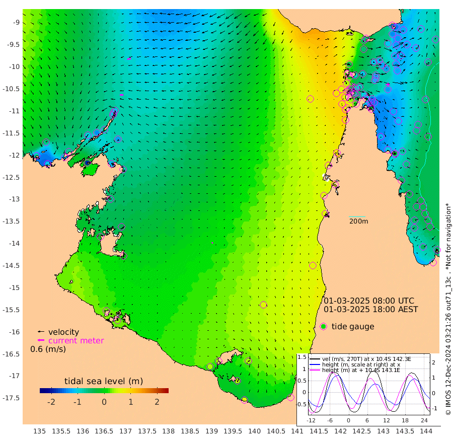 34cm/s -93T +3cm/s rms + 7cm/s -42T. ARA-GOC87 57m 9cm/s -108T +3cm/s rms + 2cm/s -2T. ARA-GOC87 60m 33cm/s -103T +2cm/s rms + 3cm/s 61T. ARA-GOC87 47m -141cm Daru -143cm Bobo Island -69cm Meer Island Barge -99cm Bramble Cay -130cm Unnamed Cay -132cm Pearce Cay -120cm Stephens Island -125cm Merrie England Shoals -139cm Mutacomal Reef -111cm Darnley Island Barge -73cm East Cay -127cm Yorke Island Barge -127cm Rennel Island -128cm Aureed Island -123cm Dungeness Reef -115cm Zagai Island -105cm Yam Island -54cm Dauan Island -60cm Saibai Island -59cm Phipi Reef -107cm Warrior Reef - West -41cm Mabuiag Island Barge -124cm Half Way Island -131cm Coconut Island -130cm Dugong Islet -119cm Poll Island -114cm Kirkcaldie Reef -107cm Suarji Island -118cm Sue Islet 38cm Hawkesbury Island -84cm Alert Patches -93cm Twin Island 21cm Badu Island -94cm St Pauls (Moa Island) -1cm Kubin (Moa Island) -53cm Ince Point -29cm Thursday Island -36cm Nardana Patches 2cm Turtle Head 15cm Round Island 49cm Goods Island 83cm Booby Island 64cm White Rocks Area 77cm Carpentaria -81cm Papou Point 54cm Bampfield Head 84cm Crab Island 78cm Red Wallis Island 32cm Packe Island -145cm Harrington Reef 60cm Herald Camp -25cm Sharp Point 6cm Red Island Point -50cm Possession Island -99cm Alpha Rock -117cm Frederick Point -148cm Wyborn Reef Light -145cm Tetley Island -65cm Triangle Reef -153cm Turtle Head Island -63cm Maclennan Cay -34cm Raine Island -121cm Mcsweeny Reef -106cm Collette Reef -64cm Shadwell Reef -117cm Hannibal Island -100cm Round Point 90cm Vrilya Point -82cm Cape Grenville -77cm Hicks Island -72cm Sir Charles Hardy Island -26cm Harvey Island -66cm Kay Reef -50cm Rocky Island -37cm Chapman Island -36cm Ham Reef -47cm Jubilee Reef -44cm Night Island -35cm Unnamed Reef No. 3 -52cm Morris Island -42cm 1st 3 Mile Opening -45cm Creech Reef -54cm Fife Island -49cm Eden Reef -48cm Stanley Island -62cm Normanby River -76cm Yabooma Island -106cm Hutchison River -75cm Elcho Island -66cm North West Crocodile Island -105cm Cape Wessel -102cm Stevens Island -137cm Guluwuru Island -77cm Hopeful Bay -99cm Auster Point -98cm Two Island Bay -129cm Cadell Strait -192cm Mallison Island -118cm Melville Bay (Gove Harbour) -128cm Truant Island -88cm Cape Arnhem -68cm Cape Grey -44cm Hawk Island -17cm Milner Bay (Groote Eylandt) -1cm Cape Beatrice 25cm West Island 35cm Centre Island 46cm Mornington Island 43cm West Wellesley Islands 39cm Bountiful Island 69cm Albert River Mouth 48cm Sweers Island 76cm Karumba 63cm Nassau River Offshore 65cm Christmas Creek 72cm Archer River 60cm Boyd Point 77cm Weipa (Humbug Point) 69cm Pennefather River 86cm Cullen Point