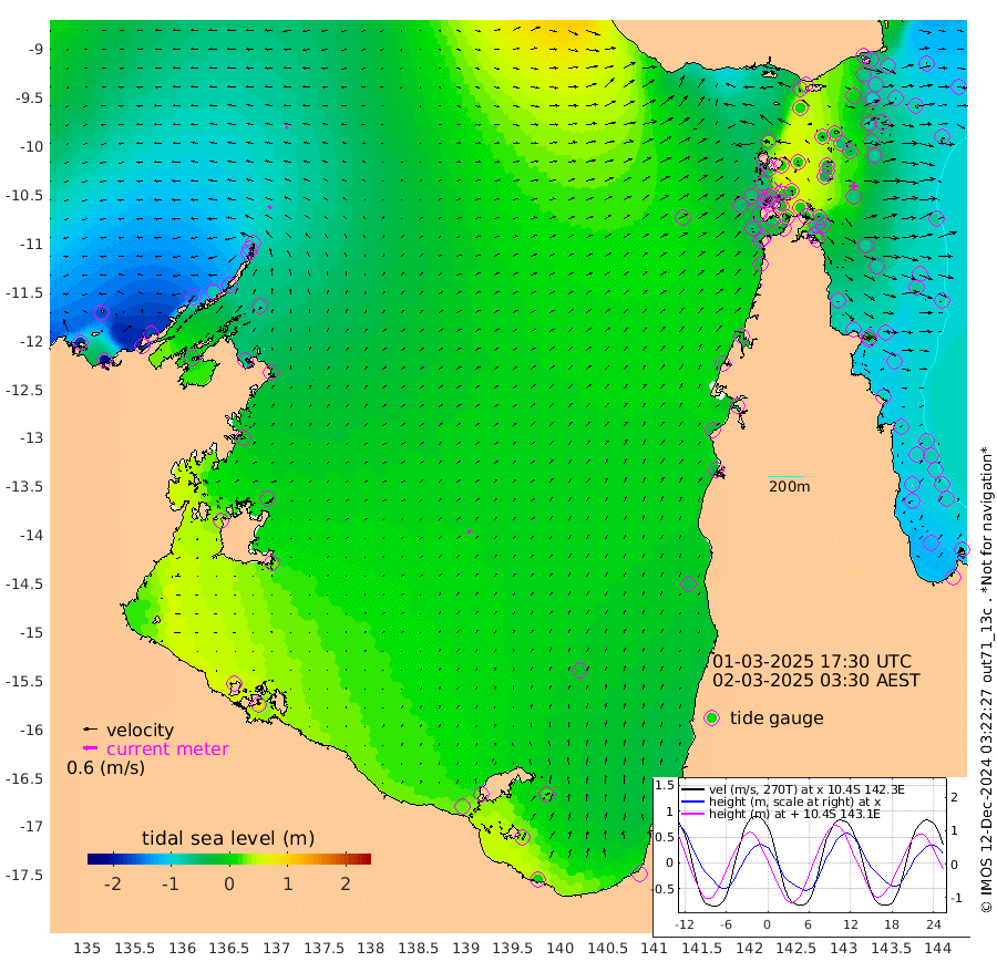 16cm/s -44T +3cm/s rms + 7cm/s -42T. ARA-GOC87 57m 19cm/s 30T +3cm/s rms + 2cm/s -2T. ARA-GOC87 60m 12cm/s -56T +2cm/s rms + 3cm/s 61T. ARA-GOC87 47m -59cm Daru -66cm Bobo Island -85cm Meer Island Barge -96cm Bramble Cay -79cm Unnamed Cay -91cm Pearce Cay -90cm Stephens Island -86cm Merrie England Shoals -64cm Mutacomal Reef -78cm Darnley Island Barge -98cm East Cay -62cm Yorke Island Barge -77cm Rennel Island -61cm Aureed Island -54cm Dungeness Reef 6cm Zagai Island -9cm Yam Island 17cm Dauan Island 41cm Saibai Island 6cm Phipi Reef -6cm Warrior Reef - West 24cm Mabuiag Island Barge -74cm Half Way Island -44cm Coconut Island -64cm Dugong Islet -30cm Poll Island -38cm Kirkcaldie Reef 4cm Suarji Island -8cm Sue Islet -57cm Hawkesbury Island -7cm Alert Patches -11cm Twin Island -34cm Badu Island 5cm St Pauls (Moa Island) -42cm Kubin (Moa Island) -9cm Ince Point -13cm Thursday Island -11cm Nardana Patches -37cm Turtle Head -29cm Round Island -58cm Goods Island -47cm Booby Island -57cm White Rocks Area 12cm Carpentaria -4cm Papou Point -28cm Bampfield Head -39cm Crab Island -50cm Red Wallis Island -54cm Packe Island -58cm Harrington Reef -43cm Herald Camp 18cm Sharp Point -34cm Red Island Point -8cm Possession Island -3cm Alpha Rock -29cm Frederick Point -52cm Wyborn Reef Light -42cm Tetley Island -68cm Triangle Reef -70cm Turtle Head Island -83cm Maclennan Cay -86cm Raine Island -74cm Mcsweeny Reef -73cm Collette Reef -74cm Shadwell Reef -84cm Hannibal Island -103cm Round Point -23cm Vrilya Point -88cm Cape Grenville -93cm Hicks Island -91cm Sir Charles Hardy Island -28cm Harvey Island -92cm Kay Reef -89cm Rocky Island -90cm Chapman Island -82cm Ham Reef -86cm Jubilee Reef -80cm Night Island -87cm Unnamed Reef No. 3 -95cm Morris Island -86cm 1st 3 Mile Opening -89cm Creech Reef -98cm Fife Island -114cm Eden Reef -97cm Stanley Island -113cm Normanby River -181cm Yabooma Island -206cm Hutchison River -170cm Elcho Island -167cm North West Crocodile Island -89cm Cape Wessel -143cm Stevens Island -79cm Guluwuru Island -130cm Hopeful Bay -107cm Auster Point -116cm Two Island Bay -174cm Cadell Strait -20cm Mallison Island -73cm Melville Bay (Gove Harbour) -74cm Truant Island -37cm Cape Arnhem -8cm Cape Grey 0cm Hawk Island 41cm Milner Bay (Groote Eylandt) 30cm Cape Beatrice 76cm West Island 83cm Centre Island 26cm Mornington Island 23cm West Wellesley Islands 16cm Bountiful Island 1cm Albert River Mouth 35cm Sweers Island -1cm Karumba -20cm Nassau River Offshore -36cm Christmas Creek -40cm Archer River -28cm Boyd Point -47cm Weipa (Humbug Point) -21cm Pennefather River -21cm Cullen Point