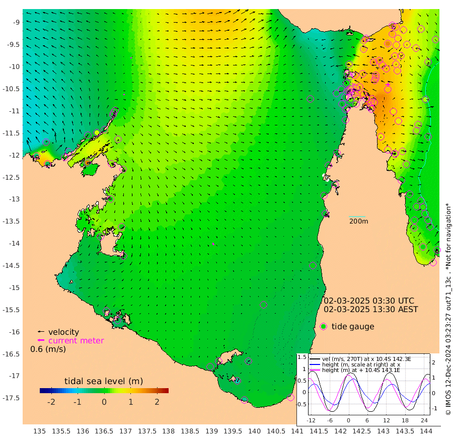 11cm/s 71T +3cm/s rms + 7cm/s -42T. ARA-GOC87 57m 23cm/s 163T +3cm/s rms + 2cm/s -2T. ARA-GOC87 60m 8cm/s 15T +2cm/s rms + 3cm/s 61T. ARA-GOC87 47m 128cm Daru 117cm Bobo Island 33cm Meer Island Barge 58cm Bramble Cay 95cm Unnamed Cay 97cm Pearce Cay 85cm Stephens Island 88cm Merrie England Shoals 121cm Mutacomal Reef 78cm Darnley Island Barge 34cm East Cay 103cm Yorke Island Barge 105cm Rennel Island 105cm Aureed Island 117cm Dungeness Reef 141cm Zagai Island 141cm Yam Island 133cm Dauan Island 132cm Saibai Island 116cm Phipi Reef 152cm Warrior Reef - West 92cm Mabuiag Island Barge 105cm Half Way Island 120cm Coconut Island 120cm Dugong Islet 128cm Poll Island 128cm Kirkcaldie Reef 119cm Suarji Island 132cm Sue Islet 15cm Hawkesbury Island 107cm Alert Patches 118cm Twin Island 28cm Badu Island 129cm St Pauls (Moa Island) 48cm Kubin (Moa Island) 91cm Ince Point 70cm Thursday Island 77cm Nardana Patches 43cm Turtle Head 19cm Round Island -5cm Goods Island -33cm Booby Island -28cm White Rocks Area -28cm Carpentaria 110cm Papou Point -37cm Bampfield Head -28cm Crab Island -19cm Red Wallis Island 23cm Packe Island 126cm Harrington Reef -2cm Herald Camp 46cm Sharp Point 37cm Red Island Point 66cm Possession Island 119cm Alpha Rock 125cm Frederick Point 126cm Wyborn Reef Light 132cm Tetley Island 43cm Triangle Reef 119cm Turtle Head Island 35cm Maclennan Cay 3cm Raine Island 90cm Mcsweeny Reef 74cm Collette Reef 35cm Shadwell Reef 76cm Hannibal Island 55cm Round Point -32cm Vrilya Point 44cm Cape Grenville 40cm Hicks Island 44cm Sir Charles Hardy Island 16cm Harvey Island 24cm Kay Reef 13cm Rocky Island 1cm Chapman Island 6cm Ham Reef 15cm Jubilee Reef 15cm Night Island 5cm Unnamed Reef No. 3 12cm Morris Island 5cm 1st 3 Mile Opening 11cm Creech Reef 21cm Fife Island 2cm Eden Reef 9cm Stanley Island 14cm Normanby River -64cm Yabooma Island -52cm Hutchison River -61cm Elcho Island -58cm North West Crocodile Island 5cm Cape Wessel -30cm Stevens Island 55cm Guluwuru Island -47cm Hopeful Bay -20cm Auster Point -6cm Two Island Bay 9cm Cadell Strait 161cm Mallison Island 31cm Melville Bay (Gove Harbour) 36cm Truant Island 30cm Cape Arnhem 12cm Cape Grey 0cm Hawk Island -27cm Milner Bay (Groote Eylandt) -21cm Cape Beatrice -32cm West Island -43cm Centre Island -27cm Mornington Island -27cm West Wellesley Islands -51cm Bountiful Island -68cm Albert River Mouth -91cm Sweers Island -66cm Karumba -19cm Nassau River Offshore -6cm Christmas Creek -25cm Archer River -11cm Boyd Point -29cm Weipa (Humbug Point) -25cm Pennefather River -27cm Cullen Point