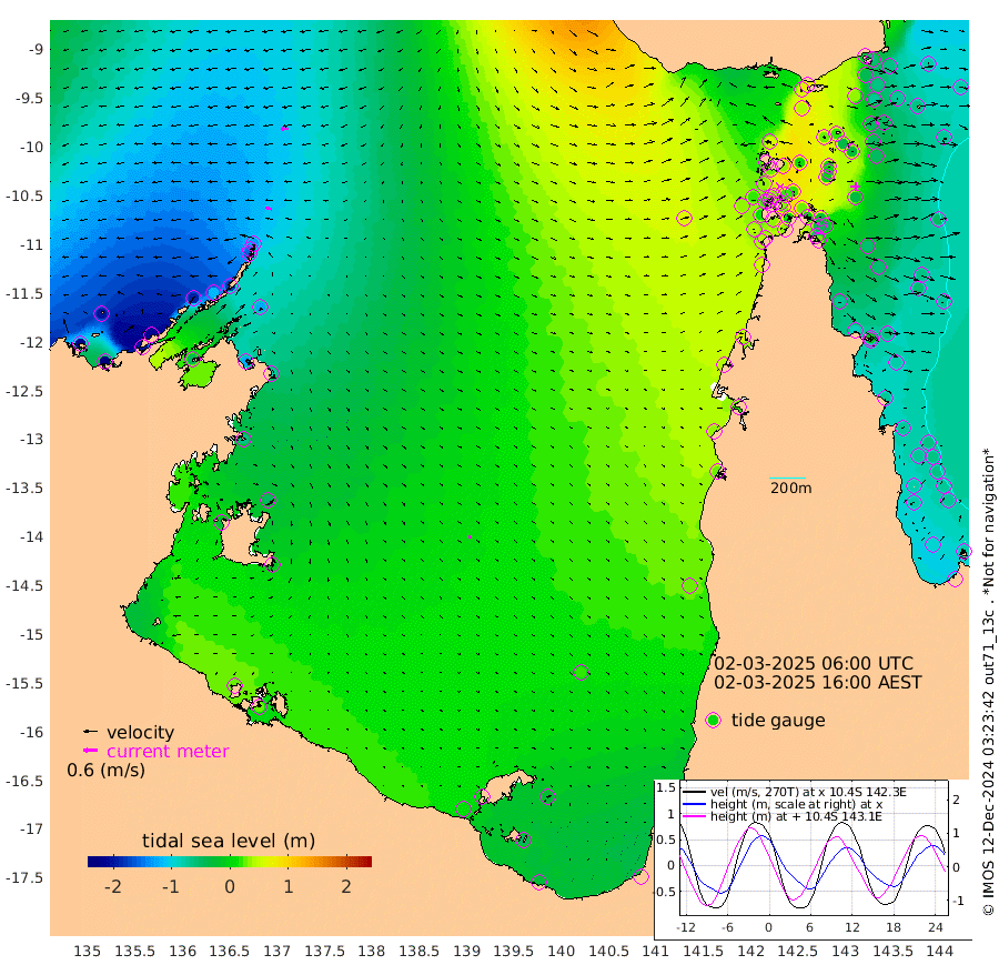 26cm/s -76T +3cm/s rms + 7cm/s -42T. ARA-GOC87 57m 14cm/s 156T +3cm/s rms + 2cm/s -2T. ARA-GOC87 60m 32cm/s -88T +2cm/s rms + 3cm/s 61T. ARA-GOC87 47m -36cm Daru -53cm Bobo Island -71cm Meer Island Barge -78cm Bramble Cay -62cm Unnamed Cay -72cm Pearce Cay -71cm Stephens Island -66cm Merrie England Shoals -39cm Mutacomal Reef -64cm Darnley Island Barge -79cm East Cay -48cm Yorke Island Barge -51cm Rennel Island -49cm Aureed Island -30cm Dungeness Reef 22cm Zagai Island 28cm Yam Island 67cm Dauan Island 76cm Saibai Island 40cm Phipi Reef 31cm Warrior Reef - West 57cm Mabuiag Island Barge -47cm Half Way Island -29cm Coconut Island -34cm Dugong Islet -4cm Poll Island -1cm Kirkcaldie Reef 11cm Suarji Island 11cm Sue Islet 32cm Hawkesbury Island 21cm Alert Patches 21cm Twin Island 34cm Badu Island 35cm St Pauls (Moa Island) 29cm Kubin (Moa Island) 34cm Ince Point 37cm Thursday Island 37cm Nardana Patches 28cm Turtle Head 21cm Round Island 21cm Goods Island 34cm Booby Island 19cm White Rocks Area 65cm Carpentaria 27cm Papou Point 12cm Bampfield Head 43cm Crab Island 43cm Red Wallis Island 32cm Packe Island -38cm Harrington Reef 38cm Herald Camp 27cm Sharp Point 31cm Red Island Point 13cm Possession Island 23cm Alpha Rock -3cm Frederick Point -38cm Wyborn Reef Light -25cm Tetley Island -51cm Triangle Reef -57cm Turtle Head Island -63cm Maclennan Cay -68cm Raine Island -59cm Mcsweeny Reef -59cm Collette Reef -60cm Shadwell Reef -71cm Hannibal Island -84cm Round Point 57cm Vrilya Point -70cm Cape Grenville -75cm Hicks Island -67cm Sir Charles Hardy Island -21cm Harvey Island -76cm Kay Reef -73cm Rocky Island -74cm Chapman Island -64cm Ham Reef -68cm Jubilee Reef -62cm Night Island -65cm Unnamed Reef No. 3 -78cm Morris Island -73cm 1st 3 Mile Opening -70cm Creech Reef -76cm Fife Island -94cm Eden Reef -77cm Stanley Island -92cm Normanby River -215cm Yabooma Island -248cm Hutchison River -209cm Elcho Island -195cm North West Crocodile Island -134cm Cape Wessel -189cm Stevens Island -120cm Guluwuru Island -178cm Hopeful Bay -160cm Auster Point -152cm Two Island Bay -199cm Cadell Strait -40cm Mallison Island -122cm Melville Bay (Gove Harbour) -126cm Truant Island -78cm Cape Arnhem -61cm Cape Grey -48cm Hawk Island -25cm Milner Bay (Groote Eylandt) -11cm Cape Beatrice 27cm West Island 29cm Centre Island 13cm Mornington Island 12cm West Wellesley Islands -24cm Bountiful Island -24cm Albert River Mouth -50cm Sweers Island -18cm Karumba 18cm Nassau River Offshore 28cm Christmas Creek 23cm Archer River 33cm Boyd Point 21cm Weipa (Humbug Point) 39cm Pennefather River 53cm Cullen Point