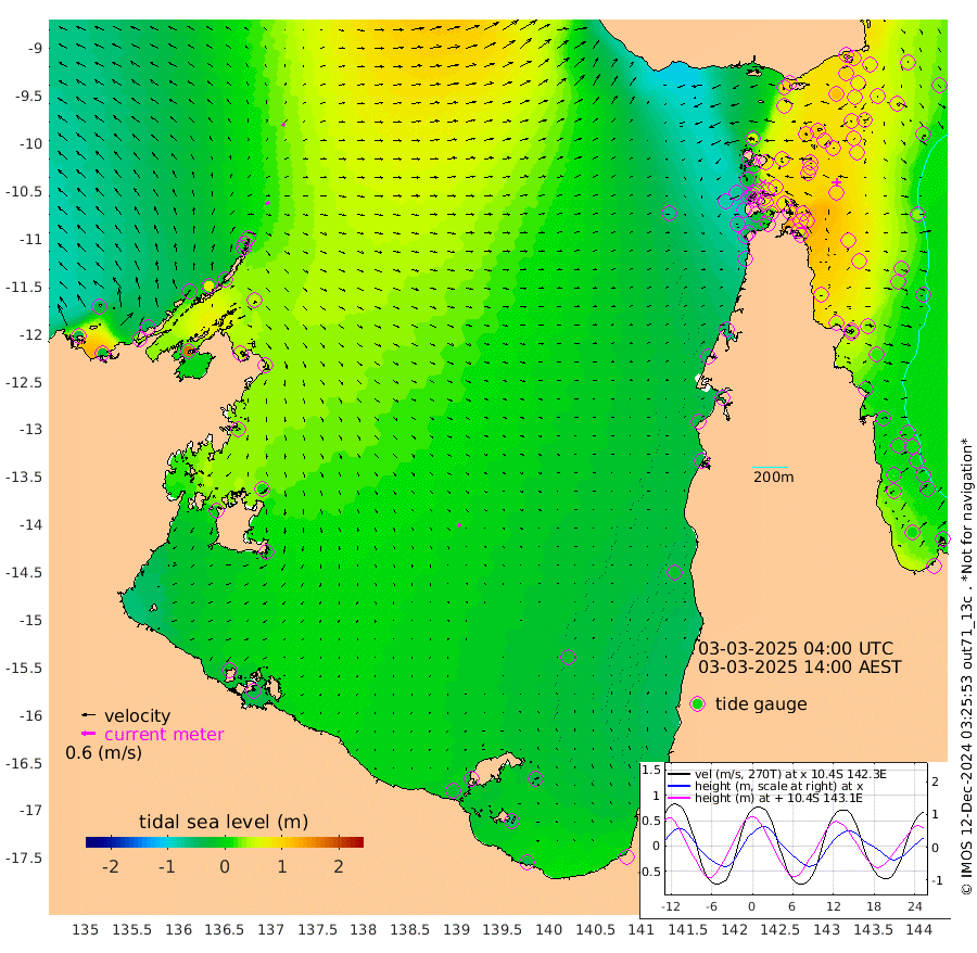 16cm/s 62T +3cm/s rms + 7cm/s -42T. ARA-GOC87 57m 16cm/s 163T +3cm/s rms + 2cm/s -2T. ARA-GOC87 60m 14cm/s 32T +2cm/s rms + 3cm/s 61T. ARA-GOC87 47m 100cm Daru 95cm Bobo Island 27cm Meer Island Barge 45cm Bramble Cay 73cm Unnamed Cay 75cm Pearce Cay 67cm Stephens Island 65cm Merrie England Shoals 90cm Mutacomal Reef 65cm Darnley Island Barge 28cm East Cay 84cm Yorke Island Barge 79cm Rennel Island 83cm Aureed Island 87cm Dungeness Reef 110cm Zagai Island 106cm Yam Island 96cm Dauan Island 100cm Saibai Island 80cm Phipi Reef 117cm Warrior Reef - West 55cm Mabuiag Island Barge 80cm Half Way Island 88cm Coconut Island 91cm Dugong Islet 93cm Poll Island 93cm Kirkcaldie Reef 80cm Suarji Island 100cm Sue Islet -29cm Hawkesbury Island 64cm Alert Patches 76cm Twin Island -17cm Badu Island 86cm St Pauls (Moa Island) 7cm Kubin (Moa Island) 49cm Ince Point 27cm Thursday Island 34cm Nardana Patches -1cm Turtle Head -20cm Round Island -47cm Goods Island -75cm Booby Island -72cm White Rocks Area -61cm Carpentaria 74cm Papou Point -76cm Bampfield Head -63cm Crab Island -62cm Red Wallis Island -22cm Packe Island 94cm Harrington Reef -40cm Herald Camp 34cm Sharp Point 1cm Red Island Point 30cm Possession Island 82cm Alpha Rock 87cm Frederick Point 94cm Wyborn Reef Light 98cm Tetley Island 32cm Triangle Reef 88cm Turtle Head Island 27cm Maclennan Cay 0cm Raine Island 69cm Mcsweeny Reef 57cm Collette Reef 26cm Shadwell Reef 59cm Hannibal Island 40cm Round Point -65cm Vrilya Point 32cm Cape Grenville 32cm Hicks Island 35cm Sir Charles Hardy Island 13cm Harvey Island 16cm Kay Reef 9cm Rocky Island -3cm Chapman Island 4cm Ham Reef 11cm Jubilee Reef 10cm Night Island 1cm Unnamed Reef No. 3 8cm Morris Island 0cm 1st 3 Mile Opening 7cm Creech Reef 15cm Fife Island 1cm Eden Reef 5cm Stanley Island 11cm Normanby River -45cm Yabooma Island -30cm Hutchison River -40cm Elcho Island -37cm North West Crocodile Island 22cm Cape Wessel -11cm Stevens Island 73cm Guluwuru Island -27cm Hopeful Bay -2cm Auster Point 14cm Two Island Bay 32cm Cadell Strait 176cm Mallison Island 46cm Melville Bay (Gove Harbour) 51cm Truant Island 41cm Cape Arnhem 24cm Cape Grey 12cm Hawk Island -12cm Milner Bay (Groote Eylandt) -9cm Cape Beatrice -21cm West Island -31cm Centre Island -15cm Mornington Island -17cm West Wellesley Islands -32cm Bountiful Island -42cm Albert River Mouth -58cm Sweers Island -43cm Karumba -20cm Nassau River Offshore -18cm Christmas Creek -42cm Archer River -32cm Boyd Point -51cm Weipa (Humbug Point) -48cm Pennefather River -55cm Cullen Point