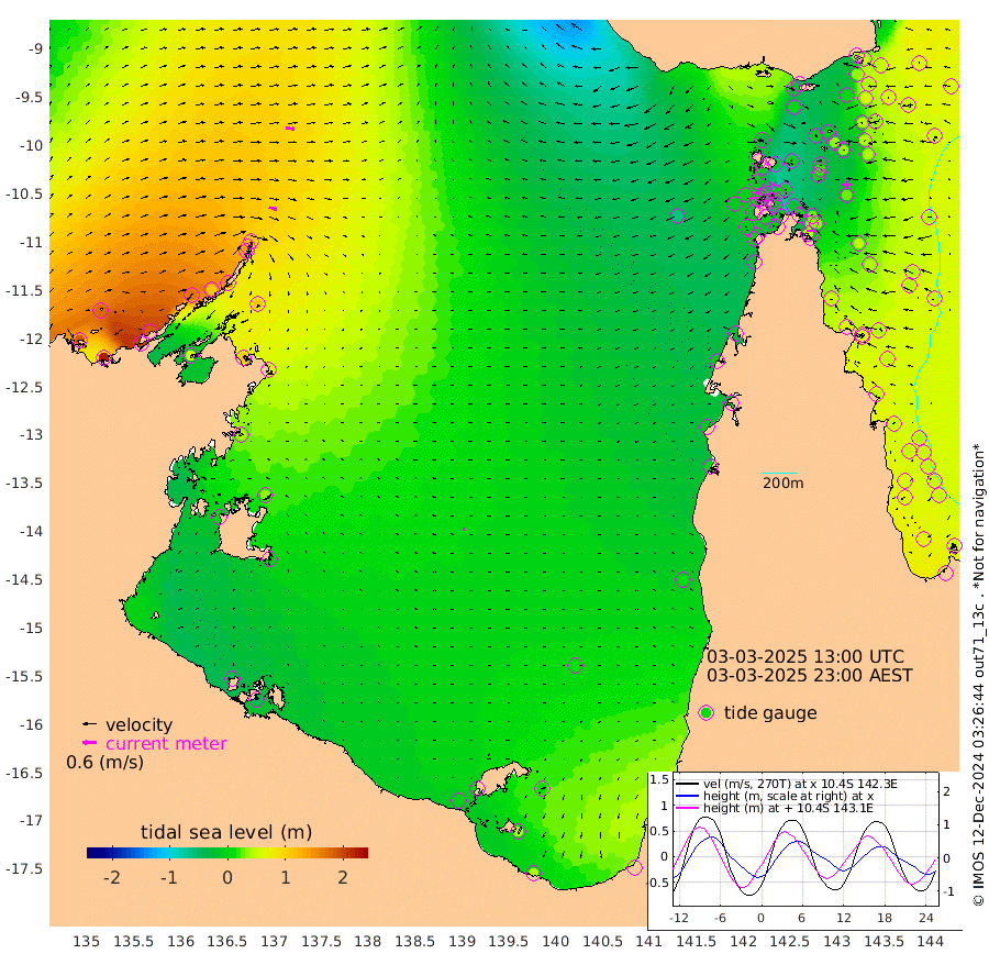 35cm/s 112T +3cm/s rms + 7cm/s -42T. ARA-GOC87 57m 9cm/s -61T +3cm/s rms + 2cm/s -2T. ARA-GOC87 60m 36cm/s 100T +2cm/s rms + 3cm/s 61T. ARA-GOC87 47m 39cm Daru 50cm Bobo Island 51cm Meer Island Barge 59cm Bramble Cay 44cm Unnamed Cay 65cm Pearce Cay 56cm Stephens Island 49cm Merrie England Shoals 33cm Mutacomal Reef 46cm Darnley Island Barge 58cm East Cay 36cm Yorke Island Barge 44cm Rennel Island 43cm Aureed Island 35cm Dungeness Reef 0cm Zagai Island -6cm Yam Island -17cm Dauan Island -40cm Saibai Island 7cm Phipi Reef 3cm Warrior Reef - West -33cm Mabuiag Island Barge 41cm Half Way Island 34cm Coconut Island 29cm Dugong Islet 16cm Poll Island 14cm Kirkcaldie Reef -2cm Suarji Island -6cm Sue Islet -12cm Hawkesbury Island -6cm Alert Patches -3cm Twin Island 0cm Badu Island -12cm St Pauls (Moa Island) -3cm Kubin (Moa Island) -12cm Ince Point -14cm Thursday Island -14cm Nardana Patches -2cm Turtle Head -8cm Round Island 2cm Goods Island -14cm Booby Island -5cm White Rocks Area -63cm Carpentaria -8cm Papou Point -19cm Bampfield Head -7cm Crab Island -15cm Red Wallis Island 1cm Packe Island 34cm Harrington Reef -24cm Herald Camp -16cm Sharp Point -4cm Red Island Point -5cm Possession Island -16cm Alpha Rock 12cm Frederick Point 32cm Wyborn Reef Light 24cm Tetley Island 39cm Triangle Reef 47cm Turtle Head Island 43cm Maclennan Cay 52cm Raine Island 45cm Mcsweeny Reef 44cm Collette Reef 43cm Shadwell Reef 52cm Hannibal Island 65cm Round Point -23cm Vrilya Point 47cm Cape Grenville 55cm Hicks Island 41cm Sir Charles Hardy Island 15cm Harvey Island 47cm Kay Reef 50cm Rocky Island 52cm Chapman Island 41cm Ham Reef 47cm Jubilee Reef 48cm Night Island 46cm Unnamed Reef No. 3 55cm Morris Island 50cm 1st 3 Mile Opening 49cm Creech Reef 62cm Fife Island 66cm Eden Reef 50cm Stanley Island 62cm Normanby River 185cm Yabooma Island 222cm Hutchison River 185cm Elcho Island 175cm North West Crocodile Island 109cm Cape Wessel 169cm Stevens Island 105cm Guluwuru Island 151cm Hopeful Bay 132cm Auster Point 129cm Two Island Bay 198cm Cadell Strait 59cm Mallison Island 106cm Melville Bay (Gove Harbour) 109cm Truant Island 69cm Cape Arnhem 41cm Cape Grey 33cm Hawk Island 3cm Milner Bay (Groote Eylandt) -2cm Cape Beatrice -48cm West Island -48cm Centre Island 1cm Mornington Island -7cm West Wellesley Islands 11cm Bountiful Island 43cm Albert River Mouth 43cm Sweers Island 42cm Karumba 15cm Nassau River Offshore 9cm Christmas Creek 6cm Archer River -13cm Boyd Point 2cm Weipa (Humbug Point) -5cm Pennefather River -27cm Cullen Point