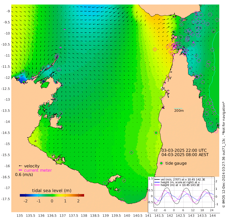35cm/s -91T +3cm/s rms + 7cm/s -42T. ARA-GOC87 57m 5cm/s -30T +3cm/s rms + 2cm/s -2T. ARA-GOC87 60m 32cm/s -106T +2cm/s rms + 3cm/s 61T. ARA-GOC87 47m -73cm Daru -75cm Bobo Island -28cm Meer Island Barge -39cm Bramble Cay -51cm Unnamed Cay -61cm Pearce Cay -54cm Stephens Island -48cm Merrie England Shoals -58cm Mutacomal Reef -53cm Darnley Island Barge -26cm East Cay -62cm Yorke Island Barge -54cm Rennel Island -63cm Aureed Island -58cm Dungeness Reef -69cm Zagai Island -57cm Yam Island -45cm Dauan Island -42cm Saibai Island -45cm Phipi Reef -72cm Warrior Reef - West 0cm Mabuiag Island Barge -58cm Half Way Island -62cm Coconut Island -57cm Dugong Islet -55cm Poll Island -57cm Kirkcaldie Reef -30cm Suarji Island -55cm Sue Islet 79cm Hawkesbury Island -16cm Alert Patches -29cm Twin Island 54cm Badu Island -35cm St Pauls (Moa Island) 38cm Kubin (Moa Island) -1cm Ince Point 18cm Thursday Island 13cm Nardana Patches 41cm Turtle Head 61cm Round Island 82cm Goods Island 108cm Booby Island 108cm White Rocks Area 98cm Carpentaria -30cm Papou Point 118cm Bampfield Head 77cm Crab Island 97cm Red Wallis Island 58cm Packe Island -61cm Harrington Reef 89cm Herald Camp -17cm Sharp Point 32cm Red Island Point 10cm Possession Island -30cm Alpha Rock -46cm Frederick Point -60cm Wyborn Reef Light -60cm Tetley Island -24cm Triangle Reef -62cm Turtle Head Island -20cm Maclennan Cay -7cm Raine Island -50cm Mcsweeny Reef -43cm Collette Reef -23cm Shadwell Reef -48cm Hannibal Island -35cm Round Point 75cm Vrilya Point -24cm Cape Grenville -28cm Hicks Island -20cm Sir Charles Hardy Island -11cm Harvey Island -12cm Kay Reef -10cm Rocky Island -1cm Chapman Island -4cm Ham Reef -12cm Jubilee Reef -14cm Night Island -4cm Unnamed Reef No. 3 -11cm Morris Island -5cm 1st 3 Mile Opening -10cm Creech Reef -22cm Fife Island -11cm Eden Reef -8cm Stanley Island -13cm Normanby River 11cm Yabooma Island -13cm Hutchison River -1cm Elcho Island 2cm North West Crocodile Island -41cm Cape Wessel -28cm Stevens Island -94cm Guluwuru Island -10cm Hopeful Bay -27cm Auster Point -41cm Two Island Bay -83cm Cadell Strait -212cm Mallison Island -69cm Melville Bay (Gove Harbour) -75cm Truant Island -59cm Cape Arnhem -34cm Cape Grey -25cm Hawk Island -3cm Milner Bay (Groote Eylandt) 1cm Cape Beatrice 22cm West Island 24cm Centre Island -5cm Mornington Island 4cm West Wellesley Islands 22cm Bountiful Island 1cm Albert River Mouth 9cm Sweers Island 2cm Karumba 3cm Nassau River Offshore 11cm Christmas Creek 39cm Archer River 45cm Boyd Point 60cm Weipa (Humbug Point) 41cm Pennefather River 73cm Cullen Point