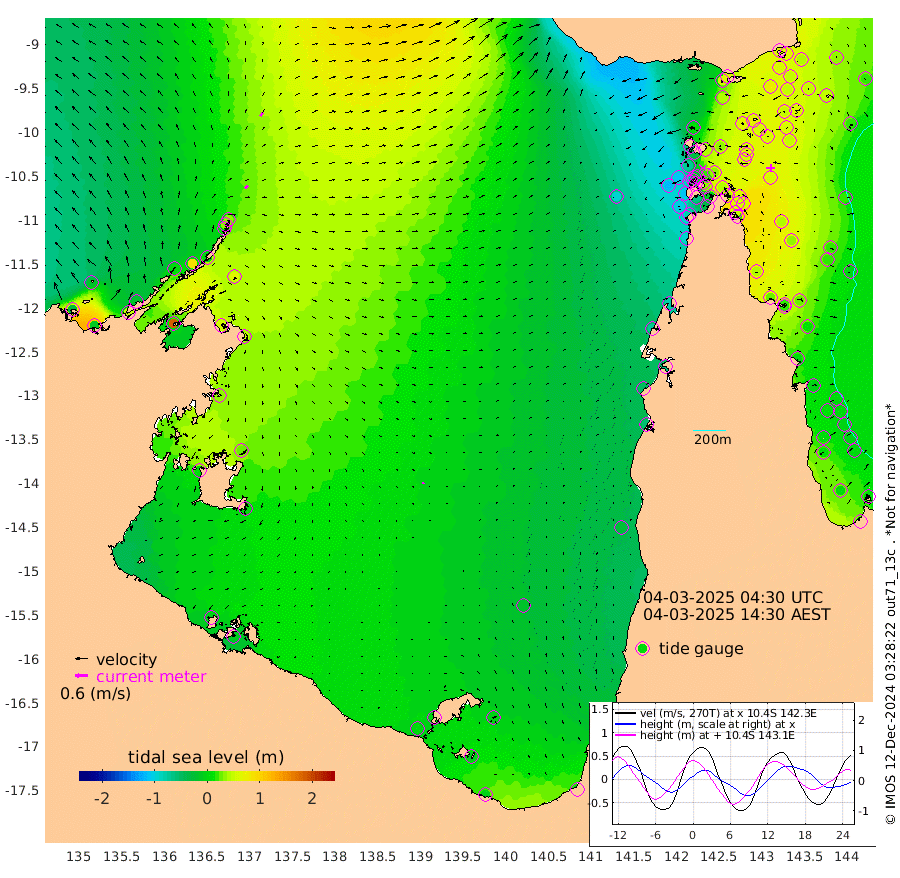 18cm/s 53T +3cm/s rms + 7cm/s -42T. ARA-GOC87 57m 8cm/s 167T +3cm/s rms + 2cm/s -2T. ARA-GOC87 60m 20cm/s 34T +2cm/s rms + 3cm/s 61T. ARA-GOC87 47m 67cm Daru 67cm Bobo Island 22cm Meer Island Barge 31cm Bramble Cay 48cm Unnamed Cay 49cm Pearce Cay 46cm Stephens Island 40cm Merrie England Shoals 56cm Mutacomal Reef 49cm Darnley Island Barge 20cm East Cay 60cm Yorke Island Barge 50cm Rennel Island 57cm Aureed Island 53cm Dungeness Reef 72cm Zagai Island 65cm Yam Island 55cm Dauan Island 63cm Saibai Island 41cm Phipi Reef 76cm Warrior Reef - West 14cm Mabuiag Island Barge 51cm Half Way Island 53cm Coconut Island 57cm Dugong Islet 54cm Poll Island 53cm Kirkcaldie Reef 37cm Suarji Island 63cm Sue Islet -72cm Hawkesbury Island 17cm Alert Patches 30cm Twin Island -61cm Badu Island 38cm St Pauls (Moa Island) -36cm Kubin (Moa Island) 3cm Ince Point -18cm Thursday Island -11cm Nardana Patches -44cm Turtle Head -57cm Round Island -87cm Goods Island -114cm Booby Island -111cm White Rocks Area -92cm Carpentaria 33cm Papou Point -112cm Bampfield Head -97cm Crab Island -103cm Red Wallis Island -65cm Packe Island 56cm Harrington Reef -76cm Herald Camp 20cm Sharp Point -37cm Red Island Point -8cm Possession Island 40cm Alpha Rock 44cm Frederick Point 58cm Wyborn Reef Light 59cm Tetley Island 20cm Triangle Reef 51cm Turtle Head Island 18cm Maclennan Cay -3cm Raine Island 45cm Mcsweeny Reef 37cm Collette Reef 17cm Shadwell Reef 40cm Hannibal Island 25cm Round Point -96cm Vrilya Point 20cm Cape Grenville 22cm Hicks Island 26cm Sir Charles Hardy Island 9cm Harvey Island 9cm Kay Reef 6cm Rocky Island -5cm Chapman Island 3cm Ham Reef 8cm Jubilee Reef 5cm Night Island -2cm Unnamed Reef No. 3 4cm Morris Island -3cm 1st 3 Mile Opening 3cm Creech Reef 11cm Fife Island 2cm Eden Reef 2cm Stanley Island 9cm Normanby River -26cm Yabooma Island -10cm Hutchison River -19cm Elcho Island -18cm North West Crocodile Island 35cm Cape Wessel 4cm Stevens Island 83cm Guluwuru Island -7cm Hopeful Bay 13cm Auster Point 31cm Two Island Bay 49cm Cadell Strait 182cm Mallison Island 57cm Melville Bay (Gove Harbour) 61cm Truant Island 49cm Cape Arnhem 34cm Cape Grey 25cm Hawk Island 5cm Milner Bay (Groote Eylandt) 5cm Cape Beatrice -6cm West Island -14cm Centre Island 3cm Mornington Island 0cm West Wellesley Islands -5cm Bountiful Island -6cm Albert River Mouth -14cm Sweers Island -10cm Karumba -15cm Nassau River Offshore -24cm Christmas Creek -55cm Archer River -50cm Boyd Point -67cm Weipa (Humbug Point) -70cm Pennefather River -80cm Cullen Point