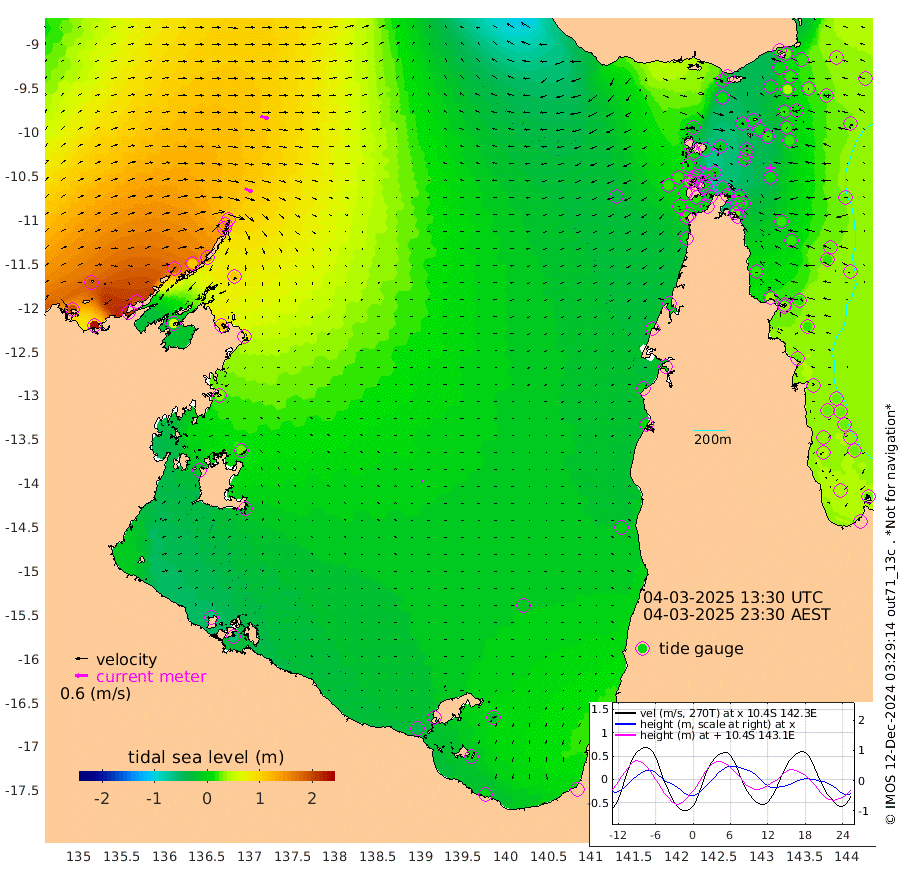 39cm/s 116T +3cm/s rms + 7cm/s -42T. ARA-GOC87 57m 6cm/s -51T +3cm/s rms + 2cm/s -2T. ARA-GOC87 60m 39cm/s 106T +2cm/s rms + 3cm/s 61T. ARA-GOC87 47m 15cm Daru 26cm Bobo Island 28cm Meer Island Barge 31cm Bramble Cay 16cm Unnamed Cay 39cm Pearce Cay 27cm Stephens Island 18cm Merrie England Shoals 7cm Mutacomal Reef 19cm Darnley Island Barge 33cm East Cay 12cm Yorke Island Barge 19cm Rennel Island 20cm Aureed Island 15cm Dungeness Reef -3cm Zagai Island -9cm Yam Island -4cm Dauan Island -24cm Saibai Island 9cm Phipi Reef -1cm Warrior Reef - West -15cm Mabuiag Island Barge 16cm Half Way Island 16cm Coconut Island 5cm Dugong Islet 4cm Poll Island -1cm Kirkcaldie Reef -7cm Suarji Island -15cm Sue Islet 14cm Hawkesbury Island -8cm Alert Patches -5cm Twin Island 27cm Badu Island -9cm St Pauls (Moa Island) 14cm Kubin (Moa Island) -5cm Ince Point -2cm Thursday Island -3cm Nardana Patches 12cm Turtle Head 8cm Round Island 24cm Goods Island 15cm Booby Island 21cm White Rocks Area -32cm Carpentaria -4cm Papou Point 6cm Bampfield Head 19cm Crab Island 13cm Red Wallis Island 19cm Packe Island 10cm Harrington Reef -3cm Herald Camp -16cm Sharp Point 12cm Red Island Point -1cm Possession Island -19cm Alpha Rock 2cm Frederick Point 11cm Wyborn Reef Light 7cm Tetley Island 23cm Triangle Reef 24cm Turtle Head Island 23cm Maclennan Cay 35cm Raine Island 19cm Mcsweeny Reef 18cm Collette Reef 22cm Shadwell Reef 22cm Hannibal Island 37cm Round Point 3cm Vrilya Point 20cm Cape Grenville 31cm Hicks Island 18cm Sir Charles Hardy Island 7cm Harvey Island 22cm Kay Reef 29cm Rocky Island 34cm Chapman Island 24cm Ham Reef 27cm Jubilee Reef 28cm Night Island 28cm Unnamed Reef No. 3 32cm Morris Island 30cm 1st 3 Mile Opening 28cm Creech Reef 39cm Fife Island 41cm Eden Reef 26cm Stanley Island 34cm Normanby River 194cm Yabooma Island 230cm Hutchison River 194cm Elcho Island 184cm North West Crocodile Island 117cm Cape Wessel 177cm Stevens Island 107cm Guluwuru Island 156cm Hopeful Bay 138cm Auster Point 136cm Two Island Bay 206cm Cadell Strait 55cm Mallison Island 107cm Melville Bay (Gove Harbour) 112cm Truant Island 69cm Cape Arnhem 35cm Cape Grey 24cm Hawk Island -8cm Milner Bay (Groote Eylandt) -17cm Cape Beatrice -67cm West Island -67cm Centre Island -31cm Mornington Island -40cm West Wellesley Islands -26cm Bountiful Island 3cm Albert River Mouth -2cm Sweers Island 1cm Karumba -9cm Nassau River Offshore -5cm Christmas Creek 8cm Archer River -3cm Boyd Point 10cm Weipa (Humbug Point) 8cm Pennefather River -5cm Cullen Point