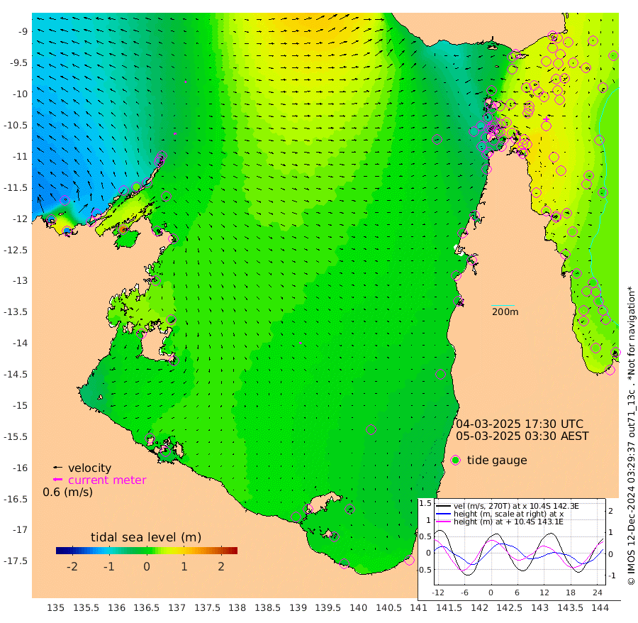 18cm/s 88T +3cm/s rms + 7cm/s -42T. ARA-GOC87 57m 14cm/s 141T +3cm/s rms + 2cm/s -2T. ARA-GOC87 60m 12cm/s 68T +2cm/s rms + 3cm/s 61T. ARA-GOC87 47m 63cm Daru 62cm Bobo Island 38cm Meer Island Barge 39cm Bramble Cay 53cm Unnamed Cay 50cm Pearce Cay 52cm Stephens Island 49cm Merrie England Shoals 52cm Mutacomal Reef 59cm Darnley Island Barge 30cm East Cay 64cm Yorke Island Barge 47cm Rennel Island 62cm Aureed Island 54cm Dungeness Reef 62cm Zagai Island 44cm Yam Island 36cm Dauan Island 42cm Saibai Island 41cm Phipi Reef 58cm Warrior Reef - West 7cm Mabuiag Island Barge 52cm Half Way Island 57cm Coconut Island 53cm Dugong Islet 48cm Poll Island 49cm Kirkcaldie Reef 43cm Suarji Island 58cm Sue Islet -69cm Hawkesbury Island 31cm Alert Patches 33cm Twin Island -43cm Badu Island 37cm St Pauls (Moa Island) -31cm Kubin (Moa Island) 11cm Ince Point -3cm Thursday Island 1cm Nardana Patches -23cm Turtle Head -40cm Round Island -57cm Goods Island -68cm Booby Island -76cm White Rocks Area -30cm Carpentaria 24cm Papou Point -57cm Bampfield Head -56cm Crab Island -68cm Red Wallis Island -43cm Packe Island 57cm Harrington Reef -59cm Herald Camp 18cm Sharp Point -32cm Red Island Point 7cm Possession Island 35cm Alpha Rock 44cm Frederick Point 55cm Wyborn Reef Light 53cm Tetley Island 31cm Triangle Reef 56cm Turtle Head Island 30cm Maclennan Cay 19cm Raine Island 53cm Mcsweeny Reef 50cm Collette Reef 36cm Shadwell Reef 55cm Hannibal Island 34cm Round Point -42cm Vrilya Point 35cm Cape Grenville 32cm Hicks Island 34cm Sir Charles Hardy Island 12cm Harvey Island 27cm Kay Reef 23cm Rocky Island 16cm Chapman Island 19cm Ham Reef 25cm Jubilee Reef 26cm Night Island 18cm Unnamed Reef No. 3 24cm Morris Island 27cm 1st 3 Mile Opening 26cm Creech Reef 25cm Fife Island 26cm Eden Reef 25cm Stanley Island 20cm Normanby River -141cm Yabooma Island -135cm Hutchison River -127cm Elcho Island -136cm North West Crocodile Island -41cm Cape Wessel -92cm Stevens Island 24cm Guluwuru Island -91cm Hopeful Bay -60cm Auster Point -61cm Two Island Bay -67cm Cadell Strait 169cm Mallison Island 5cm Melville Bay (Gove Harbour) 9cm Truant Island 21cm Cape Arnhem 16cm Cape Grey 10cm Hawk Island 7cm Milner Bay (Groote Eylandt) 1cm Cape Beatrice 9cm West Island 12cm Centre Island 13cm Mornington Island 10cm West Wellesley Islands -9cm Bountiful Island -29cm Albert River Mouth -16cm Sweers Island -31cm Karumba 2cm Nassau River Offshore 4cm Christmas Creek -15cm Archer River -12cm Boyd Point -28cm Weipa (Humbug Point) -14cm Pennefather River -38cm Cullen Point