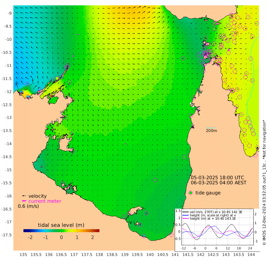 23cm/s 101T +3cm/s rms + 7cm/s -42T. ARA-GOC87 57m 20cm/s 151T +3cm/s rms + 2cm/s -2T. ARA-GOC87 60m 14cm/s 91T +2cm/s rms + 3cm/s 61T. ARA-GOC87 47m 59cm Daru 62cm Bobo Island 58cm Meer Island Barge 55cm Bramble Cay 59cm Unnamed Cay 59cm Pearce Cay 63cm Stephens Island 58cm Merrie England Shoals 50cm Mutacomal Reef 72cm Darnley Island Barge 52cm East Cay 68cm Yorke Island Barge 51cm Rennel Island 64cm Aureed Island 50cm Dungeness Reef 43cm Zagai Island 28cm Yam Island 16cm Dauan Island 22cm Saibai Island 19cm Phipi Reef 40cm Warrior Reef - West -6cm Mabuiag Island Barge 57cm Half Way Island 52cm Coconut Island 54cm Dugong Islet 38cm Poll Island 41cm Kirkcaldie Reef 23cm Suarji Island 46cm Sue Islet -51cm Hawkesbury Island 18cm Alert Patches 21cm Twin Island -33cm Badu Island 20cm St Pauls (Moa Island) -24cm Kubin (Moa Island) 3cm Ince Point -6cm Thursday Island -4cm Nardana Patches -17cm Turtle Head -35cm Round Island -37cm Goods Island -42cm Booby Island -53cm White Rocks Area -9cm Carpentaria 12cm Papou Point -38cm Bampfield Head -35cm Crab Island -44cm Red Wallis Island -29cm Packe Island 54cm Harrington Reef -44cm Herald Camp 8cm Sharp Point -25cm Red Island Point 0cm Possession Island 22cm Alpha Rock 35cm Frederick Point 49cm Wyborn Reef Light 45cm Tetley Island 46cm Triangle Reef 57cm Turtle Head Island 49cm Maclennan Cay 42cm Raine Island 60cm Mcsweeny Reef 59cm Collette Reef 53cm Shadwell Reef 66cm Hannibal Island 52cm Round Point -20cm Vrilya Point 53cm Cape Grenville 51cm Hicks Island 56cm Sir Charles Hardy Island 17cm Harvey Island 50cm Kay Reef 46cm Rocky Island 42cm Chapman Island 44cm Ham Reef 49cm Jubilee Reef 46cm Night Island 44cm Unnamed Reef No. 3 49cm Morris Island 51cm 1st 3 Mile Opening 51cm Creech Reef 48cm Fife Island 58cm Eden Reef 51cm Stanley Island 48cm Normanby River -114cm Yabooma Island -106cm Hutchison River -103cm Elcho Island -113cm North West Crocodile Island -23cm Cape Wessel -73cm Stevens Island 39cm Guluwuru Island -71cm Hopeful Bay -43cm Auster Point -41cm Two Island Bay -39cm Cadell Strait 186cm Mallison Island 16cm Melville Bay (Gove Harbour) 21cm Truant Island 26cm Cape Arnhem 11cm Cape Grey 1cm Hawk Island -13cm Milner Bay (Groote Eylandt) -17cm Cape Beatrice -20cm West Island -18cm Centre Island -13cm Mornington Island -15cm West Wellesley Islands -37cm Bountiful Island -65cm Albert River Mouth -60cm Sweers Island -66cm Karumba -7cm Nassau River Offshore 8cm Christmas Creek 0cm Archer River 4cm Boyd Point -9cm Weipa (Humbug Point) 2cm Pennefather River -19cm Cullen Point