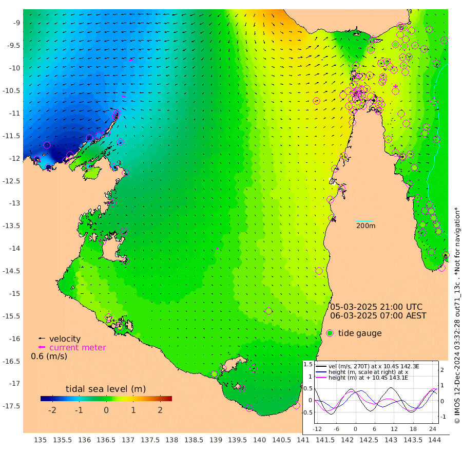 33cm/s -86T +3cm/s rms + 7cm/s -42T. ARA-GOC87 57m 17cm/s 156T +3cm/s rms + 2cm/s -2T. ARA-GOC87 60m 40cm/s -97T +2cm/s rms + 3cm/s 61T. ARA-GOC87 47m 36cm Daru 24cm Bobo Island 22cm Meer Island Barge 26cm Bramble Cay 44cm Unnamed Cay 25cm Pearce Cay 33cm Stephens Island 48cm Merrie England Shoals 49cm Mutacomal Reef 33cm Darnley Island Barge 20cm East Cay 36cm Yorke Island Barge 39cm Rennel Island 33cm Aureed Island 42cm Dungeness Reef 26cm Zagai Island 35cm Yam Island 16cm Dauan Island 20cm Saibai Island 24cm Phipi Reef 25cm Warrior Reef - West 39cm Mabuiag Island Barge 43cm Half Way Island 40cm Coconut Island 50cm Dugong Islet 42cm Poll Island 51cm Kirkcaldie Reef 55cm Suarji Island 47cm Sue Islet 54cm Hawkesbury Island 67cm Alert Patches 56cm Twin Island 44cm Badu Island 53cm St Pauls (Moa Island) 48cm Kubin (Moa Island) 58cm Ince Point 63cm Thursday Island 60cm Nardana Patches 61cm Turtle Head 54cm Round Island 62cm Goods Island 76cm Booby Island 71cm White Rocks Area 95cm Carpentaria 38cm Papou Point 81cm Bampfield Head 58cm Crab Island 71cm Red Wallis Island 62cm Packe Island 53cm Harrington Reef 68cm Herald Camp 19cm Sharp Point 44cm Red Island Point 55cm Possession Island 55cm Alpha Rock 51cm Frederick Point 42cm Wyborn Reef Light 42cm Tetley Island 22cm Triangle Reef 44cm Turtle Head Island 27cm Maclennan Cay 16cm Raine Island 39cm Mcsweeny Reef 38cm Collette Reef 29cm Shadwell Reef 40cm Hannibal Island 28cm Round Point 72cm Vrilya Point 39cm Cape Grenville 24cm Hicks Island 31cm Sir Charles Hardy Island 10cm Harvey Island 35cm Kay Reef 22cm Rocky Island 19cm Chapman Island 20cm Ham Reef 21cm Jubilee Reef 23cm Night Island 23cm Unnamed Reef No. 3 23cm Morris Island 28cm 1st 3 Mile Opening 26cm Creech Reef 14cm Fife Island 20cm Eden Reef 31cm Stanley Island 22cm Normanby River -202cm Yabooma Island -237cm Hutchison River -206cm Elcho Island -201cm North West Crocodile Island -145cm Cape Wessel -191cm Stevens Island -136cm Guluwuru Island -170cm Hopeful Bay -153cm Auster Point -166cm Two Island Bay -229cm Cadell Strait -109cm Mallison Island -127cm Melville Bay (Gove Harbour) -132cm Truant Island -84cm Cape Arnhem -53cm Cape Grey -41cm Hawk Island -14cm Milner Bay (Groote Eylandt) -3cm Cape Beatrice 44cm West Island 47cm Centre Island 22cm Mornington Island 33cm West Wellesley Islands 12cm Bountiful Island -32cm Albert River Mouth -28cm Sweers Island -25cm Karumba 32cm Nassau River Offshore 46cm Christmas Creek 49cm Archer River 55cm Boyd Point 52cm Weipa (Humbug Point) 59cm Pennefather River 64cm Cullen Point