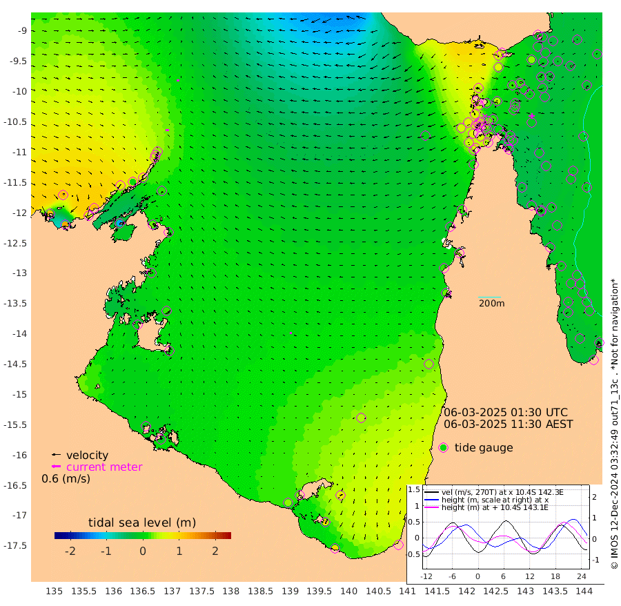 22cm/s -89T +3cm/s rms + 7cm/s -42T. ARA-GOC87 57m 14cm/s -104T +3cm/s rms + 2cm/s -2T. ARA-GOC87 60m 17cm/s -91T +2cm/s rms + 3cm/s 61T. ARA-GOC87 47m -7cm Daru -12cm Bobo Island -17cm Meer Island Barge -15cm Bramble Cay -15cm Unnamed Cay -8cm Pearce Cay -18cm Stephens Island -23cm Merrie England Shoals -9cm Mutacomal Reef -24cm Darnley Island Barge -13cm East Cay -19cm Yorke Island Barge -5cm Rennel Island -9cm Aureed Island 6cm Dungeness Reef 18cm Zagai Island 21cm Yam Island 66cm Dauan Island 46cm Saibai Island 66cm Phipi Reef 34cm Warrior Reef - West 47cm Mabuiag Island Barge -19cm Half Way Island -2cm Coconut Island -10cm Dugong Islet 11cm Poll Island -2cm Kirkcaldie Reef 40cm Suarji Island 0cm Sue Islet 63cm Hawkesbury Island 28cm Alert Patches 21cm Twin Island 68cm Badu Island 28cm St Pauls (Moa Island) 55cm Kubin (Moa Island) 35cm Ince Point 38cm Thursday Island 40cm Nardana Patches 56cm Turtle Head 61cm Round Island 64cm Goods Island 54cm Booby Island 63cm White Rocks Area -2cm Carpentaria 20cm Papou Point 60cm Bampfield Head 32cm Crab Island 51cm Red Wallis Island 55cm Packe Island -11cm Harrington Reef 63cm Herald Camp 1cm Sharp Point 39cm Red Island Point 35cm Possession Island 11cm Alpha Rock 9cm Frederick Point -5cm Wyborn Reef Light -2cm Tetley Island -5cm Triangle Reef -17cm Turtle Head Island -10cm Maclennan Cay -7cm Raine Island -14cm Mcsweeny Reef -16cm Collette Reef -13cm Shadwell Reef -21cm Hannibal Island -12cm Round Point 1cm Vrilya Point -18cm Cape Grenville -12cm Hicks Island -7cm Sir Charles Hardy Island -6cm Harvey Island -18cm Kay Reef -8cm Rocky Island -4cm Chapman Island -10cm Ham Reef -13cm Jubilee Reef -12cm Night Island -11cm Unnamed Reef No. 3 -11cm Morris Island -9cm 1st 3 Mile Opening -14cm Creech Reef -9cm Fife Island -15cm Eden Reef -19cm Stanley Island -17cm Normanby River 116cm Yabooma Island 133cm Hutchison River 113cm Elcho Island 113cm North West Crocodile Island 34cm Cape Wessel 77cm Stevens Island 7cm Guluwuru Island 77cm Hopeful Bay 52cm Auster Point 44cm Two Island Bay 65cm Cadell Strait -125cm Mallison Island 26cm Melville Bay (Gove Harbour) 20cm Truant Island 10cm Cape Arnhem 11cm Cape Grey 18cm Hawk Island 5cm Milner Bay (Groote Eylandt) 12cm Cape Beatrice -3cm West Island -9cm Centre Island 34cm Mornington Island 33cm West Wellesley Islands 81cm Bountiful Island 96cm Albert River Mouth 89cm Sweers Island 93cm Karumba 40cm Nassau River Offshore 31cm Christmas Creek 24cm Archer River 20cm Boyd Point 40cm Weipa (Humbug Point) -8cm Pennefather River 18cm Cullen Point