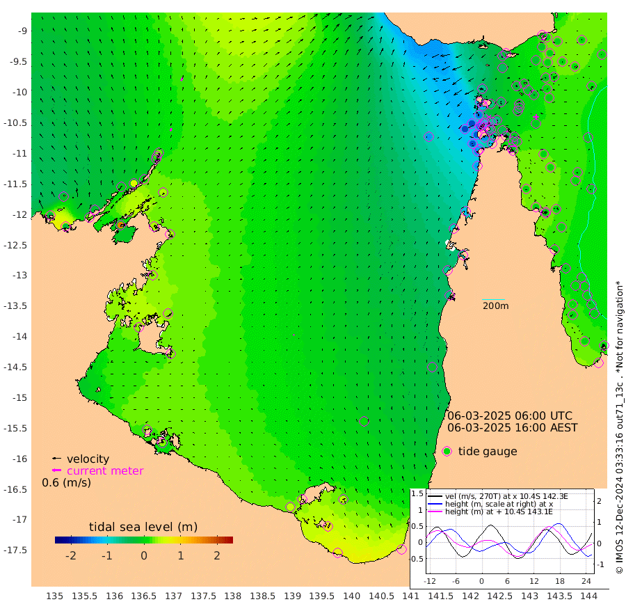 20cm/s 25T +3cm/s rms + 7cm/s -42T. ARA-GOC87 57m 7cm/s -30T +3cm/s rms + 2cm/s -2T. ARA-GOC87 60m 25cm/s 24T +2cm/s rms + 3cm/s 61T. ARA-GOC87 47m -4cm Daru 5cm Bobo Island 9cm Meer Island Barge 4cm Bramble Cay -2cm Unnamed Cay -6cm Pearce Cay 4cm Stephens Island -4cm Merrie England Shoals -11cm Mutacomal Reef 13cm Darnley Island Barge 6cm East Cay 8cm Yorke Island Barge -9cm Rennel Island 1cm Aureed Island -19cm Dungeness Reef -15cm Zagai Island -24cm Yam Island -42cm Dauan Island -26cm Saibai Island -47cm Phipi Reef -18cm Warrior Reef - West -72cm Mabuiag Island Barge -7cm Half Way Island -21cm Coconut Island -11cm Dugong Islet -29cm Poll Island -28cm Kirkcaldie Reef -52cm Suarji Island -17cm Sue Islet -149cm Hawkesbury Island -73cm Alert Patches -61cm Twin Island -144cm Badu Island -61cm St Pauls (Moa Island) -117cm Kubin (Moa Island) -84cm Ince Point -102cm Thursday Island -96cm Nardana Patches -122cm Turtle Head -123cm Round Island -153cm Goods Island -170cm Booby Island -170cm White Rocks Area -130cm Carpentaria -53cm Papou Point -165cm Bampfield Head -143cm Crab Island -161cm Red Wallis Island -137cm Packe Island -19cm Harrington Reef -134cm Herald Camp -8cm Sharp Point -105cm Red Island Point -81cm Possession Island -41cm Alpha Rock -41cm Frederick Point -16cm Wyborn Reef Light -20cm Tetley Island -3cm Triangle Reef -25cm Turtle Head Island 1cm Maclennan Cay -5cm Raine Island -3cm Mcsweeny Reef 1cm Collette Reef 1cm Shadwell Reef 4cm Hannibal Island -4cm Round Point -135cm Vrilya Point 0cm Cape Grenville 3cm Hicks Island 7cm Sir Charles Hardy Island 2cm Harvey Island 1cm Kay Reef 2cm Rocky Island -4cm Chapman Island 3cm Ham Reef 3cm Jubilee Reef 0cm Night Island -3cm Unnamed Reef No. 3 0cm Morris Island -6cm 1st 3 Mile Opening 0cm Creech Reef 4cm Fife Island 7cm Eden Reef 2cm Stanley Island 8cm Normanby River -31cm Yabooma Island -23cm Hutchison River -21cm Elcho Island -21cm North West Crocodile Island 24cm Cape Wessel -4cm Stevens Island 63cm Guluwuru Island -2cm Hopeful Bay 6cm Auster Point 21cm Two Island Bay 26cm Cadell Strait 165cm Mallison Island 41cm Melville Bay (Gove Harbour) 42cm Truant Island 38cm Cape Arnhem 36cm Cape Grey 36cm Hawk Island 36cm Milner Bay (Groote Eylandt) 34cm Cape Beatrice 36cm West Island 34cm Centre Island 50cm Mornington Island 48cm West Wellesley Islands 51cm Bountiful Island 69cm Albert River Mouth 75cm Sweers Island 60cm Karumba 9cm Nassau River Offshore -21cm Christmas Creek -64cm Archer River -71cm Boyd Point -85cm Weipa (Humbug Point) -93cm Pennefather River -111cm Cullen Point