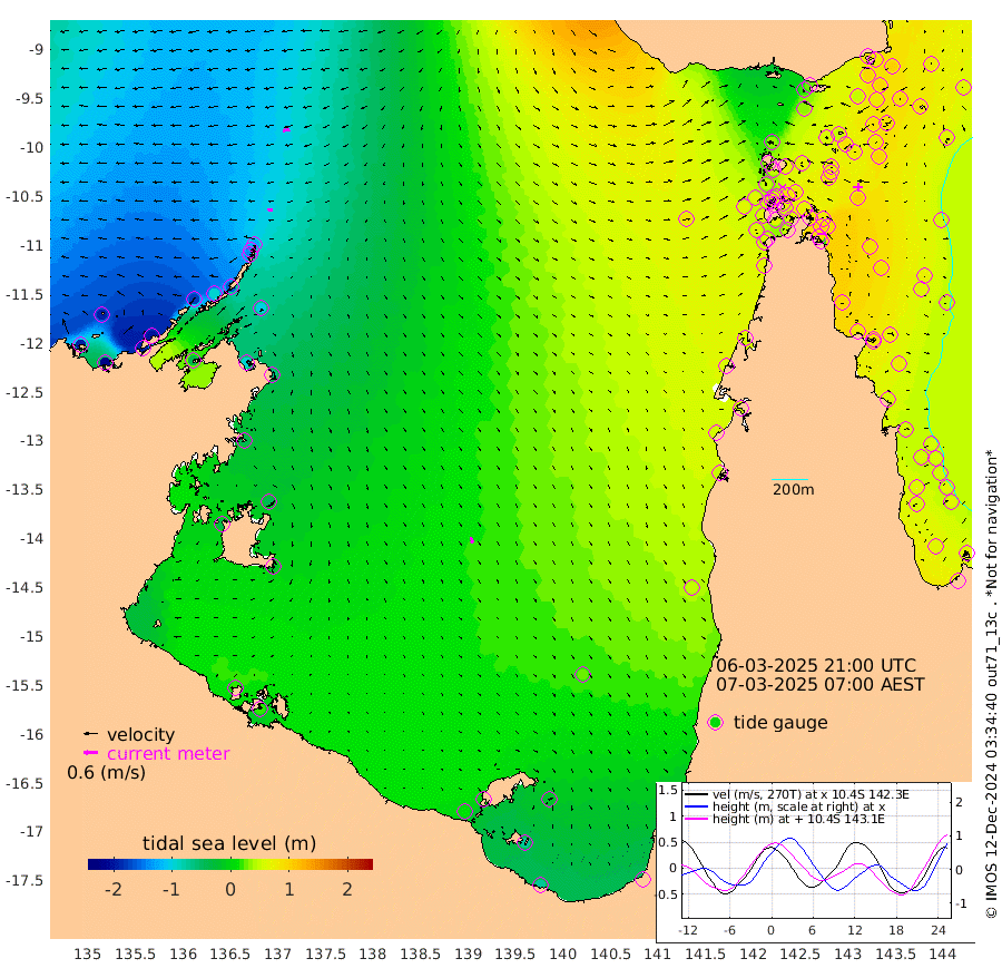 19cm/s -94T +3cm/s rms + 7cm/s -42T. ARA-GOC87 57m 26cm/s 160T +3cm/s rms + 2cm/s -2T. ARA-GOC87 60m 30cm/s -101T +2cm/s rms + 3cm/s 61T. ARA-GOC87 47m 84cm Daru 76cm Bobo Island 65cm Meer Island Barge 75cm Bramble Cay 93cm Unnamed Cay 81cm Pearce Cay 87cm Stephens Island 99cm Merrie England Shoals 95cm Mutacomal Reef 85cm Darnley Island Barge 67cm East Cay 85cm Yorke Island Barge 87cm Rennel Island 82cm Aureed Island 83cm Dungeness Reef 51cm Zagai Island 59cm Yam Island 21cm Dauan Island 23cm Saibai Island 32cm Phipi Reef 50cm Warrior Reef - West 36cm Mabuiag Island Barge 93cm Half Way Island 82cm Coconut Island 98cm Dugong Islet 75cm Poll Island 88cm Kirkcaldie Reef 72cm Suarji Island 77cm Sue Islet 50cm Hawkesbury Island 84cm Alert Patches 77cm Twin Island 39cm Badu Island 70cm St Pauls (Moa Island) 51cm Kubin (Moa Island) 68cm Ince Point 68cm Thursday Island 66cm Nardana Patches 64cm Turtle Head 47cm Round Island 59cm Goods Island 65cm Booby Island 61cm White Rocks Area 83cm Carpentaria 55cm Papou Point 66cm Bampfield Head 49cm Crab Island 63cm Red Wallis Island 63cm Packe Island 101cm Harrington Reef 57cm Herald Camp 21cm Sharp Point 49cm Red Island Point 62cm Possession Island 75cm Alpha Rock 83cm Frederick Point 86cm Wyborn Reef Light 82cm Tetley Island 58cm Triangle Reef 95cm Turtle Head Island 68cm Maclennan Cay 51cm Raine Island 88cm Mcsweeny Reef 84cm Collette Reef 67cm Shadwell Reef 91cm Hannibal Island 78cm Round Point 65cm Vrilya Point 84cm Cape Grenville 69cm Hicks Island 75cm Sir Charles Hardy Island 25cm Harvey Island 77cm Kay Reef 60cm Rocky Island 54cm Chapman Island 55cm Ham Reef 60cm Jubilee Reef 59cm Night Island 59cm Unnamed Reef No. 3 64cm Morris Island 64cm 1st 3 Mile Opening 66cm Creech Reef 57cm Fife Island 67cm Eden Reef 72cm Stanley Island 69cm Normanby River -192cm Yabooma Island -218cm Hutchison River -196cm Elcho Island -194cm North West Crocodile Island -122cm Cape Wessel -174cm Stevens Island -96cm Guluwuru Island -159cm Hopeful Bay -135cm Auster Point -143cm Two Island Bay -188cm Cadell Strait -33cm Mallison Island -97cm Melville Bay (Gove Harbour) -100cm Truant Island -62cm Cape Arnhem -44cm Cape Grey -41cm Hawk Island -30cm Milner Bay (Groote Eylandt) -18cm Cape Beatrice 16cm West Island 16cm Centre Island 3cm Mornington Island 14cm West Wellesley Islands -16cm Bountiful Island -69cm Albert River Mouth -72cm Sweers Island -59cm Karumba 26cm Nassau River Offshore 49cm Christmas Creek 51cm Archer River 56cm Boyd Point 50cm Weipa (Humbug Point) 59cm Pennefather River 56cm Cullen Point