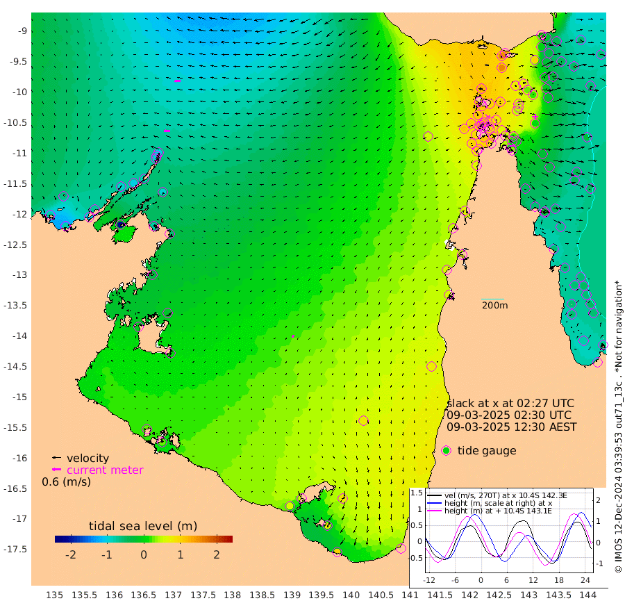 40cm/s -90T +3cm/s rms + 7cm/s -42T. ARA-GOC87 57m 19cm/s -151T +3cm/s rms + 2cm/s -2T. ARA-GOC87 60m 43cm/s -95T +2cm/s rms + 3cm/s 61T. ARA-GOC87 47m 6cm Daru -17cm Bobo Island -57cm Meer Island Barge -54cm Bramble Cay -30cm Unnamed Cay -27cm Pearce Cay -42cm Stephens Island -42cm Merrie England Shoals -4cm Mutacomal Reef -47cm Darnley Island Barge -60cm East Cay -23cm Yorke Island Barge -9cm Rennel Island -12cm Aureed Island 28cm Dungeness Reef 75cm Zagai Island 80cm Yam Island 156cm Dauan Island 132cm Saibai Island 153cm Phipi Reef 99cm Warrior Reef - West 123cm Mabuiag Island Barge -17cm Half Way Island 18cm Coconut Island 3cm Dugong Islet 50cm Poll Island 43cm Kirkcaldie Reef 99cm Suarji Island 47cm Sue Islet 111cm Hawkesbury Island 94cm Alert Patches 81cm Twin Island 132cm Badu Island 103cm St Pauls (Moa Island) 109cm Kubin (Moa Island) 103cm Ince Point 106cm Thursday Island 108cm Nardana Patches 117cm Turtle Head 105cm Round Island 112cm Goods Island 106cm Booby Island 103cm White Rocks Area 56cm Carpentaria 79cm Papou Point 91cm Bampfield Head 89cm Crab Island 103cm Red Wallis Island 108cm Packe Island 4cm Harrington Reef 110cm Herald Camp 35cm Sharp Point 94cm Red Island Point 85cm Possession Island 61cm Alpha Rock 50cm Frederick Point 2cm Wyborn Reef Light 15cm Tetley Island -30cm Triangle Reef -12cm Turtle Head Island -43cm Maclennan Cay -49cm Raine Island -28cm Mcsweeny Reef -35cm Collette Reef -42cm Shadwell Reef -47cm Hannibal Island -55cm Round Point 67cm Vrilya Point -54cm Cape Grenville -51cm Hicks Island -48cm Sir Charles Hardy Island -16cm Harvey Island -66cm Kay Reef -54cm Rocky Island -56cm Chapman Island -57cm Ham Reef -56cm Jubilee Reef -48cm Night Island -57cm Unnamed Reef No. 3 -59cm Morris Island -50cm 1st 3 Mile Opening -56cm Creech Reef -58cm Fife Island -80cm Eden Reef -67cm Stanley Island -80cm Normanby River -75cm Yabooma Island -79cm Hutchison River -72cm Elcho Island -62cm North West Crocodile Island -102cm Cape Wessel -95cm Stevens Island -103cm Guluwuru Island -89cm Hopeful Bay -94cm Auster Point -102cm Two Island Bay -110cm Cadell Strait -209cm Mallison Island -82cm Melville Bay (Gove Harbour) -94cm Truant Island -59cm Cape Arnhem -35cm Cape Grey -20cm Hawk Island -12cm Milner Bay (Groote Eylandt) 7cm Cape Beatrice 26cm West Island 23cm Centre Island 66cm Mornington Island 62cm West Wellesley Islands 88cm Bountiful Island 100cm Albert River Mouth 77cm Sweers Island 107cm Karumba 79cm Nassau River Offshore 78cm Christmas Creek 62cm Archer River 61cm Boyd Point 74cm Weipa (Humbug Point) 47cm Pennefather River 71cm Cullen Point