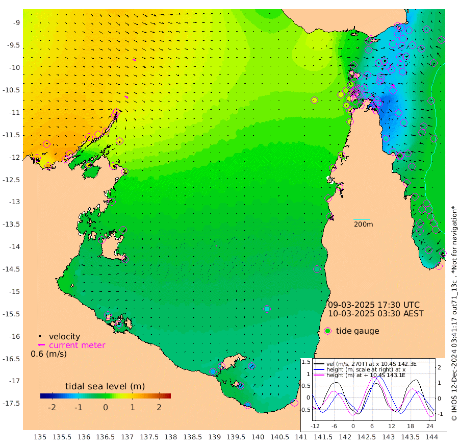 34cm/s 119T +3cm/s rms + 7cm/s -42T. ARA-GOC87 57m 8cm/s 64T +3cm/s rms + 2cm/s -2T. ARA-GOC87 60m 34cm/s 115T +2cm/s rms + 3cm/s 61T. ARA-GOC87 47m -115cm Daru -107cm Bobo Island -41cm Meer Island Barge -70cm Bramble Cay -102cm Unnamed Cay -101cm Pearce Cay -95cm Stephens Island -105cm Merrie England Shoals -120cm Mutacomal Reef -79cm Darnley Island Barge -52cm East Cay -94cm Yorke Island Barge -111cm Rennel Island -103cm Aureed Island -111cm Dungeness Reef -86cm Zagai Island -94cm Yam Island -44cm Dauan Island -33cm Saibai Island -72cm Phipi Reef -94cm Warrior Reef - West -27cm Mabuiag Island Barge -109cm Half Way Island -109cm Coconut Island -118cm Dugong Islet -106cm Poll Island -113cm Kirkcaldie Reef -106cm Suarji Island -94cm Sue Islet 33cm Hawkesbury Island -88cm Alert Patches -90cm Twin Island 25cm Badu Island -87cm St Pauls (Moa Island) -4cm Kubin (Moa Island) -58cm Ince Point -39cm Thursday Island -43cm Nardana Patches -19cm Turtle Head 8cm Round Island 28cm Goods Island 56cm Booby Island 36cm White Rocks Area 64cm Carpentaria -69cm Papou Point 60cm Bampfield Head 47cm Crab Island 42cm Red Wallis Island 1cm Packe Island -132cm Harrington Reef 30cm Herald Camp -33cm Sharp Point -14cm Red Island Point -50cm Possession Island -87cm Alpha Rock -104cm Frederick Point -110cm Wyborn Reef Light -107cm Tetley Island -41cm Triangle Reef -108cm Turtle Head Island -47cm Maclennan Cay -18cm Raine Island -95cm Mcsweeny Reef -83cm Collette Reef -43cm Shadwell Reef -89cm Hannibal Island -73cm Round Point 51cm Vrilya Point -68cm Cape Grenville -56cm Hicks Island -47cm Sir Charles Hardy Island -22cm Harvey Island -47cm Kay Reef -31cm Rocky Island -18cm Chapman Island -17cm Ham Reef -25cm Jubilee Reef -34cm Night Island -22cm Unnamed Reef No. 3 -34cm Morris Island -24cm 1st 3 Mile Opening -30cm Creech Reef -40cm Fife Island -25cm Eden Reef -35cm Stanley Island -43cm Normanby River 126cm Yabooma Island 136cm Hutchison River 126cm Elcho Island 115cm North West Crocodile Island 97cm Cape Wessel 116cm Stevens Island 81cm Guluwuru Island 111cm Hopeful Bay 100cm Auster Point 107cm Two Island Bay 126cm Cadell Strait 108cm Mallison Island 71cm Melville Bay (Gove Harbour) 81cm Truant Island 46cm Cape Arnhem 11cm Cape Grey -7cm Hawk Island -30cm Milner Bay (Groote Eylandt) -50cm Cape Beatrice -89cm West Island -86cm Centre Island -120cm Mornington Island -125cm West Wellesley Islands -125cm Bountiful Island -134cm Albert River Mouth -133cm Sweers Island -139cm Karumba -96cm Nassau River Offshore -62cm Christmas Creek -5cm Archer River 13cm Boyd Point 18cm Weipa (Humbug Point) 23cm Pennefather River 44cm Cullen Point