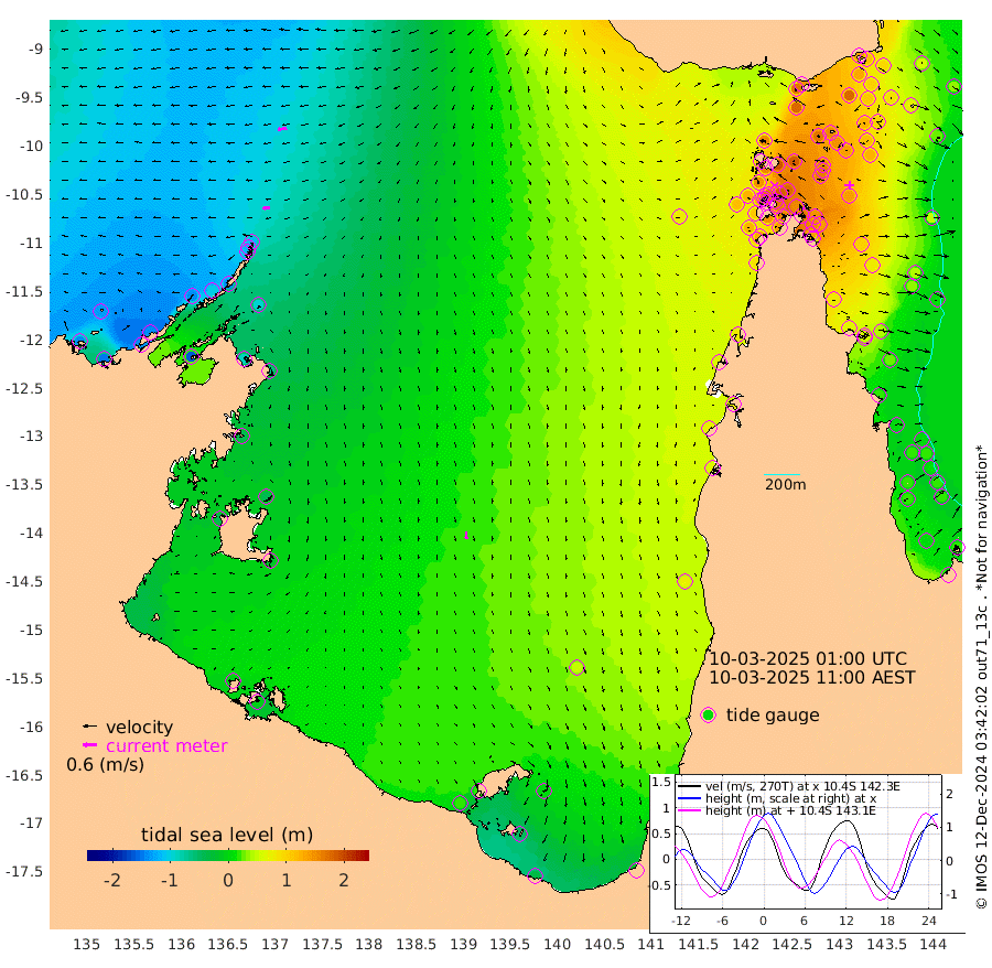 30cm/s -96T +3cm/s rms + 7cm/s -42T. ARA-GOC87 57m 32cm/s 176T +3cm/s rms + 2cm/s -2T. ARA-GOC87 60m 40cm/s -100T +2cm/s rms + 3cm/s 61T. ARA-GOC87 47m 135cm Daru 115cm Bobo Island 29cm Meer Island Barge 56cm Bramble Cay 101cm Unnamed Cay 109cm Pearce Cay 89cm Stephens Island 95cm Merrie England Shoals 133cm Mutacomal Reef 73cm Darnley Island Barge 35cm East Cay 101cm Yorke Island Barge 122cm Rennel Island 113cm Aureed Island 147cm Dungeness Reef 153cm Zagai Island 166cm Yam Island 169cm Dauan Island 147cm Saibai Island 177cm Phipi Reef 173cm Warrior Reef - West 151cm Mabuiag Island Barge 120cm Half Way Island 142cm Coconut Island 142cm Dugong Islet 160cm Poll Island 164cm Kirkcaldie Reef 185cm Suarji Island 151cm Sue Islet 143cm Hawkesbury Island 184cm Alert Patches 179cm Twin Island 146cm Badu Island 190cm St Pauls (Moa Island) 151cm Kubin (Moa Island) 172cm Ince Point 166cm Thursday Island 168cm Nardana Patches 158cm Turtle Head 132cm Round Island 133cm Goods Island 119cm Booby Island 124cm White Rocks Area 82cm Carpentaria 158cm Papou Point 109cm Bampfield Head 98cm Crab Island 124cm Red Wallis Island 148cm Packe Island 156cm Harrington Reef 130cm Herald Camp 57cm Sharp Point 137cm Red Island Point 151cm Possession Island 155cm Alpha Rock 168cm Frederick Point 136cm Wyborn Reef Light 144cm Tetley Island 47cm Triangle Reef 142cm Turtle Head Island 43cm Maclennan Cay 10cm Raine Island 98cm Mcsweeny Reef 79cm Collette Reef 37cm Shadwell Reef 78cm Hannibal Island 60cm Round Point 87cm Vrilya Point 53cm Cape Grenville 45cm Hicks Island 43cm Sir Charles Hardy Island 17cm Harvey Island 28cm Kay Reef 18cm Rocky Island 7cm Chapman Island 7cm Ham Reef 16cm Jubilee Reef 22cm Night Island 11cm Unnamed Reef No. 3 18cm Morris Island 17cm 1st 3 Mile Opening 19cm Creech Reef 22cm Fife Island 1cm Eden Reef 15cm Stanley Island 14cm Normanby River -136cm Yabooma Island -146cm Hutchison River -142cm Elcho Island -130cm North West Crocodile Island -113cm Cape Wessel -138cm Stevens Island -99cm Guluwuru Island -138cm Hopeful Bay -116cm Auster Point -120cm Two Island Bay -137cm Cadell Strait -160cm Mallison Island -89cm Melville Bay (Gove Harbour) -95cm Truant Island -61cm Cape Arnhem -45cm Cape Grey -38cm Hawk Island -44cm Milner Bay (Groote Eylandt) -22cm Cape Beatrice 0cm West Island -7cm Centre Island 15cm Mornington Island 17cm West Wellesley Islands 6cm Bountiful Island -30cm Albert River Mouth -51cm Sweers Island -10cm Karumba 49cm Nassau River Offshore 69cm Christmas Creek 60cm Archer River 69cm Boyd Point 68cm Weipa (Humbug Point) 65cm Pennefather River 78cm Cullen Point