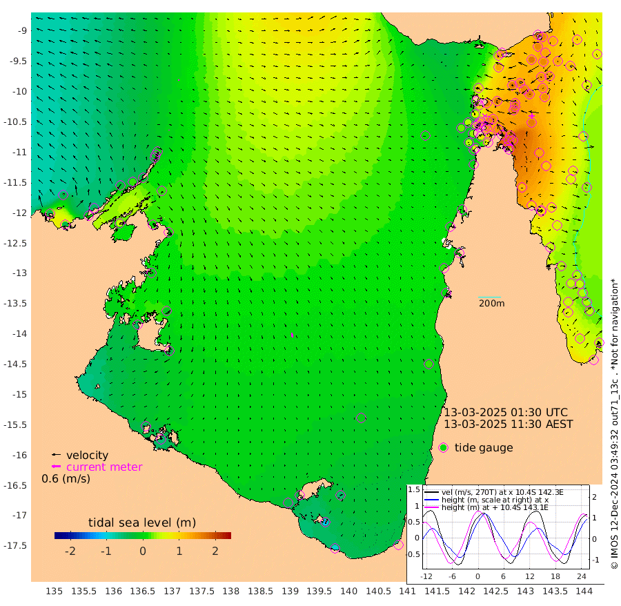 2cm/s -173T +3cm/s rms + 7cm/s -42T. ARA-GOC87 57m 30cm/s 170T +3cm/s rms + 2cm/s -2T. ARA-GOC87 60m 9cm/s -85T +2cm/s rms + 3cm/s 61T. ARA-GOC87 47m 160cm Daru 157cm Bobo Island 66cm Meer Island Barge 98cm Bramble Cay 132cm Unnamed Cay 150cm Pearce Cay 128cm Stephens Island 127cm Merrie England Shoals 157cm Mutacomal Reef 113cm Darnley Island Barge 77cm East Cay 136cm Yorke Island Barge 148cm Rennel Island 149cm Aureed Island 157cm Dungeness Reef 153cm Zagai Island 158cm Yam Island 133cm Dauan Island 122cm Saibai Island 132cm Phipi Reef 168cm Warrior Reef - West 105cm Mabuiag Island Barge 145cm Half Way Island 159cm Coconut Island 160cm Dugong Islet 162cm Poll Island 159cm Kirkcaldie Reef 161cm Suarji Island 151cm Sue Islet 74cm Hawkesbury Island 148cm Alert Patches 156cm Twin Island 71cm Badu Island 159cm St Pauls (Moa Island) 98cm Kubin (Moa Island) 129cm Ince Point 112cm Thursday Island 116cm Nardana Patches 93cm Turtle Head 74cm Round Island 56cm Goods Island 29cm Booby Island 40cm White Rocks Area 11cm Carpentaria 136cm Papou Point 35cm Bampfield Head 17cm Crab Island 44cm Red Wallis Island 87cm Packe Island 176cm Harrington Reef 61cm Herald Camp 45cm Sharp Point 82cm Red Island Point 114cm Possession Island 145cm Alpha Rock 166cm Frederick Point 163cm Wyborn Reef Light 167cm Tetley Island 78cm Triangle Reef 166cm Turtle Head Island 74cm Maclennan Cay 36cm Raine Island 130cm Mcsweeny Reef 110cm Collette Reef 65cm Shadwell Reef 116cm Hannibal Island 104cm Round Point 7cm Vrilya Point 87cm Cape Grenville 81cm Hicks Island 81cm Sir Charles Hardy Island 28cm Harvey Island 64cm Kay Reef 51cm Rocky Island 42cm Chapman Island 40cm Ham Reef 47cm Jubilee Reef 52cm Night Island 44cm Unnamed Reef No. 3 52cm Morris Island 39cm 1st 3 Mile Opening 48cm Creech Reef 63cm Fife Island 45cm Eden Reef 47cm Stanley Island 59cm Normanby River -44cm Yabooma Island -32cm Hutchison River -47cm Elcho Island -43cm North West Crocodile Island 1cm Cape Wessel -29cm Stevens Island 22cm Guluwuru Island -38cm Hopeful Bay -15cm Auster Point -8cm Two Island Bay 2cm Cadell Strait 45cm Mallison Island 14cm Melville Bay (Gove Harbour) 18cm Truant Island 13cm Cape Arnhem -7cm Cape Grey -8cm Hawk Island -46cm Milner Bay (Groote Eylandt) -36cm Cape Beatrice -47cm West Island -56cm Centre Island -33cm Mornington Island -35cm West Wellesley Islands -53cm Bountiful Island -94cm Albert River Mouth -107cm Sweers Island -76cm Karumba -5cm Nassau River Offshore 16cm Christmas Creek 7cm Archer River 20cm Boyd Point 9cm Weipa (Humbug Point) 4cm Pennefather River 13cm Cullen Point