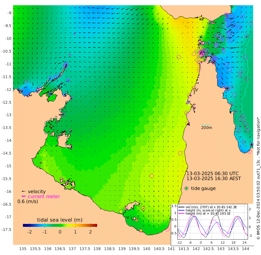 30cm/s -87T +3cm/s rms + 7cm/s -42T. ARA-GOC87 57m 9cm/s -123T +3cm/s rms + 2cm/s -2T. ARA-GOC87 60m 30cm/s -94T +2cm/s rms + 3cm/s 61T. ARA-GOC87 47m -120cm Daru -132cm Bobo Island -77cm Meer Island Barge -106cm Bramble Cay -123cm Unnamed Cay -130cm Pearce Cay -121cm Stephens Island -125cm Merrie England Shoals -128cm Mutacomal Reef -107cm Darnley Island Barge -88cm East Cay -113cm Yorke Island Barge -120cm Rennel Island -123cm Aureed Island -104cm Dungeness Reef -78cm Zagai Island -72cm Yam Island -3cm Dauan Island -8cm Saibai Island -8cm Phipi Reef -68cm Warrior Reef - West -7cm Mabuiag Island Barge -117cm Half Way Island -118cm Coconut Island -117cm Dugong Islet -98cm Poll Island -90cm Kirkcaldie Reef -82cm Suarji Island -85cm Sue Islet 37cm Hawkesbury Island -60cm Alert Patches -73cm Twin Island 30cm Badu Island -63cm St Pauls (Moa Island) 1cm Kubin (Moa Island) -35cm Ince Point -18cm Thursday Island -22cm Nardana Patches 5cm Turtle Head 14cm Round Island 35cm Goods Island 60cm Booby Island 35cm White Rocks Area 49cm Carpentaria -57cm Papou Point 30cm Bampfield Head 66cm Crab Island 48cm Red Wallis Island 12cm Packe Island -135cm Harrington Reef 46cm Herald Camp -10cm Sharp Point 13cm Red Island Point -35cm Possession Island -80cm Alpha Rock -99cm Frederick Point -134cm Wyborn Reef Light -128cm Tetley Island -73cm Triangle Reef -134cm Turtle Head Island -75cm Maclennan Cay -52cm Raine Island -117cm Mcsweeny Reef -104cm Collette Reef -70cm Shadwell Reef -117cm Hannibal Island -113cm Round Point 72cm Vrilya Point -95cm Cape Grenville -87cm Hicks Island -84cm Sir Charles Hardy Island -28cm Harvey Island -84cm Kay Reef -66cm Rocky Island -61cm Chapman Island -55cm Ham Reef -62cm Jubilee Reef -62cm Night Island -59cm Unnamed Reef No. 3 -70cm Morris Island -56cm 1st 3 Mile Opening -62cm Creech Reef -77cm Fife Island -73cm Eden Reef -67cm Stanley Island -85cm Normanby River -97cm Yabooma Island -121cm Hutchison River -94cm Elcho Island -83cm North West Crocodile Island -118cm Cape Wessel -117cm Stevens Island -120cm Guluwuru Island -96cm Hopeful Bay -107cm Auster Point -104cm Two Island Bay -125cm Cadell Strait -163cm Mallison Island -108cm Melville Bay (Gove Harbour) -121cm Truant Island -79cm Cape Arnhem -49cm Cape Grey -33cm Hawk Island -9cm Milner Bay (Groote Eylandt) 5cm Cape Beatrice 32cm West Island 39cm Centre Island 57cm Mornington Island 51cm West Wellesley Islands 61cm Bountiful Island 86cm Albert River Mouth 73cm Sweers Island 96cm Karumba 62cm Nassau River Offshore 59cm Christmas Creek 60cm Archer River 49cm Boyd Point 60cm Weipa (Humbug Point) 59cm Pennefather River 65cm Cullen Point