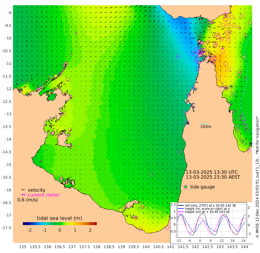 24cm/s 70T +3cm/s rms + 7cm/s -42T. ARA-GOC87 57m 19cm/s 4T +3cm/s rms + 2cm/s -2T. ARA-GOC87 60m 28cm/s 65T +2cm/s rms + 3cm/s 61T. ARA-GOC87 47m 92cm Daru 101cm Bobo Island 26cm Meer Island Barge 49cm Bramble Cay 71cm Unnamed Cay 87cm Pearce Cay 71cm Stephens Island 70cm Merrie England Shoals 85cm Mutacomal Reef 61cm Darnley Island Barge 32cm East Cay 76cm Yorke Island Barge 79cm Rennel Island 92cm Aureed Island 81cm Dungeness Reef 83cm Zagai Island 67cm Yam Island 20cm Dauan Island 23cm Saibai Island 40cm Phipi Reef 76cm Warrior Reef - West 0cm Mabuiag Island Barge 77cm Half Way Island 95cm Coconut Island 79cm Dugong Islet 81cm Poll Island 74cm Kirkcaldie Reef 80cm Suarji Island 71cm Sue Islet -113cm Hawkesbury Island 44cm Alert Patches 56cm Twin Island -73cm Badu Island 56cm St Pauls (Moa Island) -54cm Kubin (Moa Island) 13cm Ince Point -11cm Thursday Island -5cm Nardana Patches -45cm Turtle Head -69cm Round Island -100cm Goods Island -132cm Booby Island -110cm White Rocks Area -115cm Carpentaria 46cm Papou Point -120cm Bampfield Head -110cm Crab Island -118cm Red Wallis Island -73cm Packe Island 102cm Harrington Reef -119cm Herald Camp 22cm Sharp Point -39cm Red Island Point 10cm Possession Island 55cm Alpha Rock 76cm Frederick Point 91cm Wyborn Reef Light 89cm Tetley Island 27cm Triangle Reef 87cm Turtle Head Island 23cm Maclennan Cay 3cm Raine Island 71cm Mcsweeny Reef 59cm Collette Reef 22cm Shadwell Reef 65cm Hannibal Island 50cm Round Point -114cm Vrilya Point 36cm Cape Grenville 34cm Hicks Island 20cm Sir Charles Hardy Island 12cm Harvey Island 20cm Kay Reef 10cm Rocky Island 3cm Chapman Island -1cm Ham Reef 7cm Jubilee Reef 14cm Night Island 3cm Unnamed Reef No. 3 12cm Morris Island 2cm 1st 3 Mile Opening 8cm Creech Reef 23cm Fife Island 5cm Eden Reef 6cm Stanley Island 17cm Normanby River -11cm Yabooma Island 11cm Hutchison River 1cm Elcho Island -3cm North West Crocodile Island 38cm Cape Wessel 24cm Stevens Island 59cm Guluwuru Island 8cm Hopeful Bay 27cm Auster Point 17cm Two Island Bay 37cm Cadell Strait 82cm Mallison Island 54cm Melville Bay (Gove Harbour) 57cm Truant Island 49cm Cape Arnhem 49cm Cape Grey 45cm Hawk Island 53cm Milner Bay (Groote Eylandt) 44cm Cape Beatrice 48cm West Island 48cm Centre Island 52cm Mornington Island 49cm West Wellesley Islands 49cm Bountiful Island 64cm Albert River Mouth 85cm Sweers Island 55cm Karumba 9cm Nassau River Offshore -25cm Christmas Creek -65cm Archer River -75cm Boyd Point -89cm Weipa (Humbug Point) -76cm Pennefather River -109cm Cullen Point