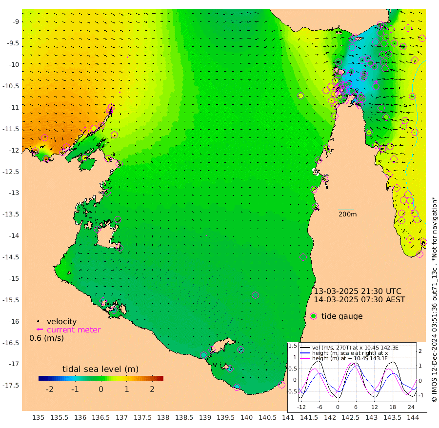 13cm/s 147T +3cm/s rms + 7cm/s -42T. ARA-GOC87 57m 6cm/s 172T +3cm/s rms + 2cm/s -2T. ARA-GOC87 60m 14cm/s 145T +2cm/s rms + 3cm/s 61T. ARA-GOC87 47m -22cm Daru -17cm Bobo Island 46cm Meer Island Barge 45cm Bramble Cay 21cm Unnamed Cay 3cm Pearce Cay 20cm Stephens Island 30cm Merrie England Shoals -1cm Mutacomal Reef 20cm Darnley Island Barge 50cm East Cay -3cm Yorke Island Barge 0cm Rennel Island -17cm Aureed Island -29cm Dungeness Reef -72cm Zagai Island -60cm Yam Island -79cm Dauan Island -77cm Saibai Island -87cm Phipi Reef -78cm Warrior Reef - West -42cm Mabuiag Island Barge -2cm Half Way Island -30cm Coconut Island -13cm Dugong Islet -44cm Poll Island -41cm Kirkcaldie Reef -66cm Suarji Island -46cm Sue Islet 58cm Hawkesbury Island -42cm Alert Patches -46cm Twin Island 23cm Badu Island -63cm St Pauls (Moa Island) 18cm Kubin (Moa Island) -30cm Ince Point -15cm Thursday Island -21cm Nardana Patches 10cm Turtle Head 31cm Round Island 56cm Goods Island 71cm Booby Island 72cm White Rocks Area 53cm Carpentaria -49cm Papou Point 82cm Bampfield Head 45cm Crab Island 62cm Red Wallis Island 36cm Packe Island -26cm Harrington Reef 55cm Herald Camp -35cm Sharp Point 0cm Red Island Point -22cm Possession Island -33cm Alpha Rock -38cm Frederick Point -8cm Wyborn Reef Light -17cm Tetley Island 32cm Triangle Reef -5cm Turtle Head Island 43cm Maclennan Cay 59cm Raine Island 13cm Mcsweeny Reef 23cm Collette Reef 43cm Shadwell Reef 30cm Hannibal Island 50cm Round Point 43cm Vrilya Point 49cm Cape Grenville 45cm Hicks Island 56cm Sir Charles Hardy Island 11cm Harvey Island 67cm Kay Reef 60cm Rocky Island 69cm Chapman Island 64cm Ham Reef 59cm Jubilee Reef 48cm Night Island 63cm Unnamed Reef No. 3 64cm Morris Island 61cm 1st 3 Mile Opening 59cm Creech Reef 54cm Fife Island 82cm Eden Reef 70cm Stanley Island 75cm Normanby River 166cm Yabooma Island 170cm Hutchison River 151cm Elcho Island 142cm North West Crocodile Island 95cm Cape Wessel 137cm Stevens Island 64cm Guluwuru Island 134cm Hopeful Bay 107cm Auster Point 108cm Two Island Bay 118cm Cadell Strait 71cm Mallison Island 63cm Melville Bay (Gove Harbour) 68cm Truant Island 30cm Cape Arnhem 5cm Cape Grey -6cm Hawk Island -30cm Milner Bay (Groote Eylandt) -36cm Cape Beatrice -69cm West Island -75cm Centre Island -87cm Mornington Island -77cm West Wellesley Islands -70cm Bountiful Island -90cm Albert River Mouth -97cm Sweers Island -98cm Karumba -52cm Nassau River Offshore -24cm Christmas Creek 18cm Archer River 25cm Boyd Point 39cm Weipa (Humbug Point) 20cm Pennefather River 41cm Cullen Point