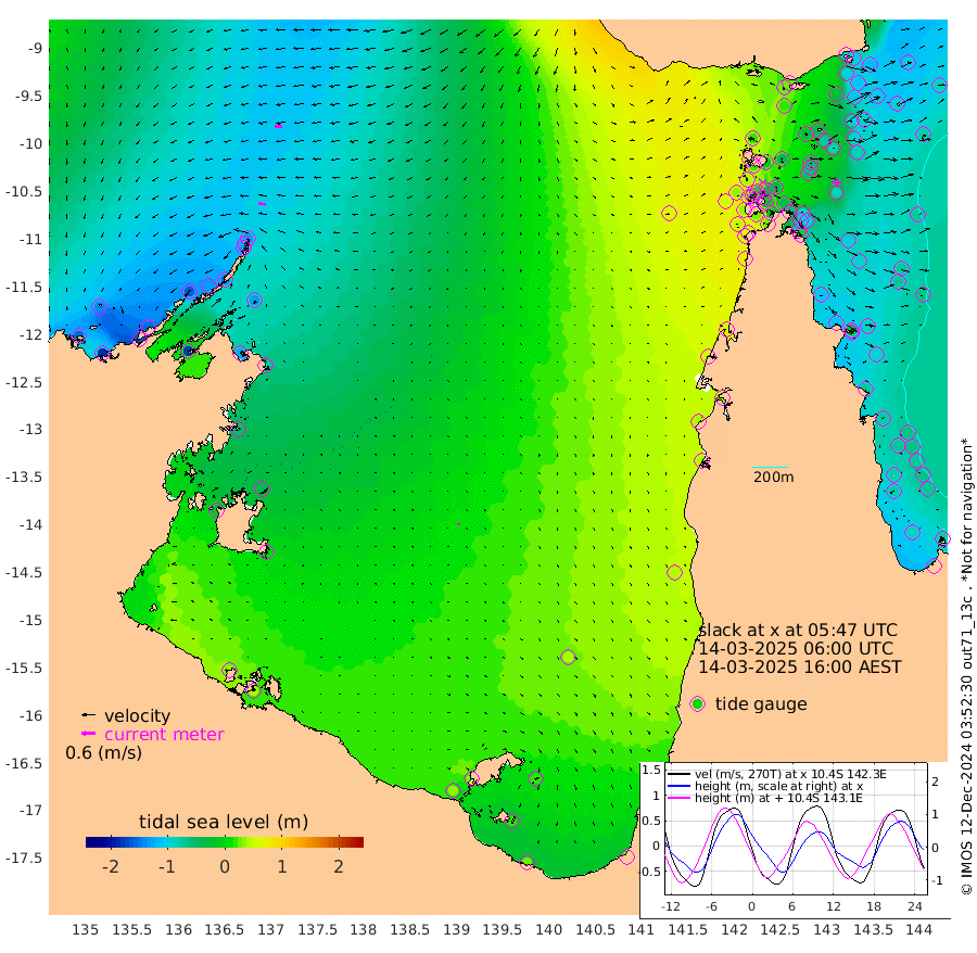 31cm/s -83T +3cm/s rms + 7cm/s -42T. ARA-GOC87 57m 8cm/s -165T +3cm/s rms + 2cm/s -2T. ARA-GOC87 60m 33cm/s -91T +2cm/s rms + 3cm/s 61T. ARA-GOC87 47m -91cm Daru -104cm Bobo Island -77cm Meer Island Barge -103cm Bramble Cay -106cm Unnamed Cay -108cm Pearce Cay -103cm Stephens Island -113cm Merrie England Shoals -103cm Mutacomal Reef -92cm Darnley Island Barge -89cm East Cay -88cm Yorke Island Barge -96cm Rennel Island -94cm Aureed Island -73cm Dungeness Reef -38cm Zagai Island -32cm Yam Island 27cm Dauan Island 23cm Saibai Island 16cm Phipi Reef -29cm Warrior Reef - West 20cm Mabuiag Island Barge -89cm Half Way Island -87cm Coconut Island -83cm Dugong Islet -60cm Poll Island -54cm Kirkcaldie Reef -41cm Suarji Island -47cm Sue Islet 43cm Hawkesbury Island -25cm Alert Patches -33cm Twin Island 32cm Badu Island -19cm St Pauls (Moa Island) 20cm Kubin (Moa Island) -4cm Ince Point 9cm Thursday Island 6cm Nardana Patches 18cm Turtle Head 27cm Round Island 34cm Goods Island 56cm Booby Island 31cm White Rocks Area 63cm Carpentaria -19cm Papou Point 34cm Bampfield Head 62cm Crab Island 50cm Red Wallis Island 24cm Packe Island -96cm Harrington Reef 58cm Herald Camp 5cm Sharp Point 24cm Red Island Point -5cm Possession Island -42cm Alpha Rock -60cm Frederick Point -103cm Wyborn Reef Light -94cm Tetley Island -68cm Triangle Reef -100cm Turtle Head Island -72cm Maclennan Cay -64cm Raine Island -99cm Mcsweeny Reef -93cm Collette Reef -72cm Shadwell Reef -107cm Hannibal Island -110cm Round Point 72cm Vrilya Point -92cm Cape Grenville -86cm Hicks Island -84cm Sir Charles Hardy Island -26cm Harvey Island -90cm Kay Reef -74cm Rocky Island -75cm Chapman Island -65cm Ham Reef -70cm Jubilee Reef -65cm Night Island -70cm Unnamed Reef No. 3 -79cm Morris Island -65cm 1st 3 Mile Opening -69cm Creech Reef -82cm Fife Island -88cm Eden Reef -77cm Stanley Island -94cm Normanby River -152cm Yabooma Island -183cm Hutchison River -150cm Elcho Island -137cm North West Crocodile Island -135cm Cape Wessel -162cm Stevens Island -133cm Guluwuru Island -141cm Hopeful Bay -135cm Auster Point -124cm Two Island Bay -163cm Cadell Strait -173cm Mallison Island -124cm Melville Bay (Gove Harbour) -133cm Truant Island -85cm Cape Arnhem -58cm Cape Grey -41cm Hawk Island -17cm Milner Bay (Groote Eylandt) -3cm Cape Beatrice 31cm West Island 38cm Centre Island 37cm Mornington Island 31cm West Wellesley Islands 21cm Bountiful Island 30cm Albert River Mouth 19cm Sweers Island 46cm Karumba 40cm Nassau River Offshore 43cm Christmas Creek 43cm Archer River 45cm Boyd Point 45cm Weipa (Humbug Point) 55cm Pennefather River 66cm Cullen Point