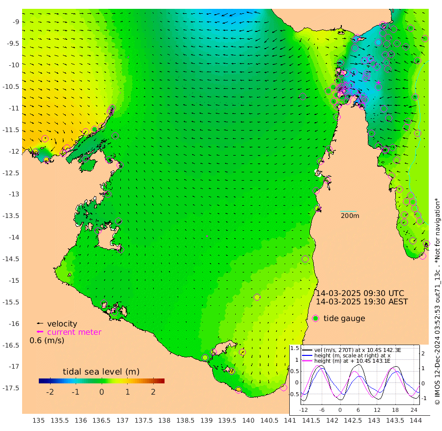 3cm/s -160T +3cm/s rms + 7cm/s -42T. ARA-GOC87 57m 14cm/s -52T +3cm/s rms + 2cm/s -2T. ARA-GOC87 60m 5cm/s 115T +2cm/s rms + 3cm/s 61T. ARA-GOC87 47m -54cm Daru -50cm Bobo Island 10cm Meer Island Barge 5cm Bramble Cay -24cm Unnamed Cay -32cm Pearce Cay -21cm Stephens Island -11cm Merrie England Shoals -44cm Mutacomal Reef -20cm Darnley Island Barge 16cm East Cay -42cm Yorke Island Barge -38cm Rennel Island -53cm Aureed Island -60cm Dungeness Reef -99cm Zagai Island -94cm Yam Island -99cm Dauan Island -101cm Saibai Island -73cm Phipi Reef -100cm Warrior Reef - West -77cm Mabuiag Island Barge -41cm Half Way Island -63cm Coconut Island -58cm Dugong Islet -80cm Poll Island -68cm Kirkcaldie Reef -100cm Suarji Island -82cm Sue Islet -7cm Hawkesbury Island -77cm Alert Patches -86cm Twin Island -20cm Badu Island -102cm St Pauls (Moa Island) -43cm Kubin (Moa Island) -73cm Ince Point -61cm Thursday Island -65cm Nardana Patches -35cm Turtle Head -25cm Round Island -3cm Goods Island 6cm Booby Island 4cm White Rocks Area -27cm Carpentaria -82cm Papou Point -9cm Bampfield Head 16cm Crab Island -3cm Red Wallis Island -25cm Packe Island -66cm Harrington Reef -16cm Herald Camp -35cm Sharp Point -18cm Red Island Point -58cm Possession Island -84cm Alpha Rock -79cm Frederick Point -59cm Wyborn Reef Light -69cm Tetley Island -6cm Triangle Reef -52cm Turtle Head Island 3cm Maclennan Cay 31cm Raine Island -28cm Mcsweeny Reef -13cm Collette Reef 12cm Shadwell Reef -9cm Hannibal Island 9cm Round Point 16cm Vrilya Point 8cm Cape Grenville 10cm Hicks Island 2cm Sir Charles Hardy Island 1cm Harvey Island 26cm Kay Reef 26cm Rocky Island 34cm Chapman Island 28cm Ham Reef 25cm Jubilee Reef 18cm Night Island 30cm Unnamed Reef No. 3 28cm Morris Island 26cm 1st 3 Mile Opening 25cm Creech Reef 23cm Fife Island 42cm Eden Reef 34cm Stanley Island 35cm Normanby River 91cm Yabooma Island 92cm Hutchison River 87cm Elcho Island 87cm North West Crocodile Island 10cm Cape Wessel 66cm Stevens Island -8cm Guluwuru Island 72cm Hopeful Bay 37cm Auster Point 29cm Two Island Bay 56cm Cadell Strait -30cm Mallison Island 2cm Melville Bay (Gove Harbour) -6cm Truant Island -11cm Cape Arnhem 1cm Cape Grey 6cm Hawk Island 9cm Milner Bay (Groote Eylandt) 14cm Cape Beatrice 3cm West Island 8cm Centre Island 43cm Mornington Island 41cm West Wellesley Islands 63cm Bountiful Island 96cm Albert River Mouth 98cm Sweers Island 100cm Karumba 49cm Nassau River Offshore 37cm Christmas Creek 41cm Archer River 11cm Boyd Point 29cm Weipa (Humbug Point) 27cm Pennefather River 5cm Cullen Point