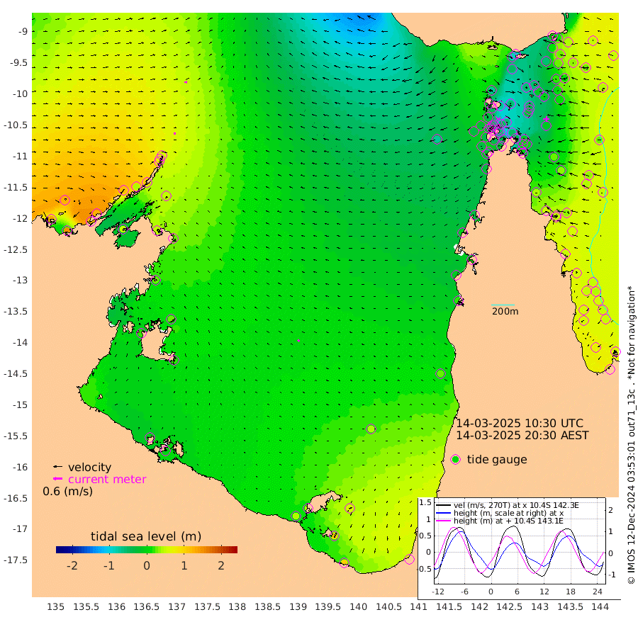 13cm/s 102T +3cm/s rms + 7cm/s -42T. ARA-GOC87 57m 15cm/s -44T +3cm/s rms + 2cm/s -2T. ARA-GOC87 60m 18cm/s 87T +2cm/s rms + 3cm/s 61T. ARA-GOC87 47m 3cm Daru 12cm Bobo Island 41cm Meer Island Barge 51cm Bramble Cay 29cm Unnamed Cay 27cm Pearce Cay 31cm Stephens Island 44cm Merrie England Shoals 13cm Mutacomal Reef 26cm Darnley Island Barge 52cm East Cay 8cm Yorke Island Barge 16cm Rennel Island 4cm Aureed Island -10cm Dungeness Reef -58cm Zagai Island -57cm Yam Island -85cm Dauan Island -88cm Saibai Island -52cm Phipi Reef -60cm Warrior Reef - West -71cm Mabuiag Island Barge 9cm Half Way Island -7cm Coconut Island -8cm Dugong Islet -34cm Poll Island -25cm Kirkcaldie Reef -60cm Suarji Island -42cm Sue Islet -33cm Hawkesbury Island -49cm Alert Patches -53cm Twin Island -35cm Badu Island -71cm St Pauls (Moa Island) -50cm Kubin (Moa Island) -58cm Ince Point -56cm Thursday Island -58cm Nardana Patches -40cm Turtle Head -39cm Round Island -27cm Goods Island -34cm Booby Island -24cm White Rocks Area -70cm Carpentaria -56cm Papou Point -41cm Bampfield Head -20cm Crab Island -37cm Red Wallis Island -38cm Packe Island -7cm Harrington Reef -50cm Herald Camp -28cm Sharp Point -23cm Red Island Point -45cm Possession Island -50cm Alpha Rock -33cm Frederick Point 0cm Wyborn Reef Light -12cm Tetley Island 25cm Triangle Reef 5cm Turtle Head Island 32cm Maclennan Cay 52cm Raine Island 23cm Mcsweeny Reef 33cm Collette Reef 41cm Shadwell Reef 42cm Hannibal Island 57cm Round Point -26cm Vrilya Point 47cm Cape Grenville 46cm Hicks Island 35cm Sir Charles Hardy Island 12cm Harvey Island 59cm Kay Reef 52cm Rocky Island 59cm Chapman Island 48cm Ham Reef 48cm Jubilee Reef 42cm Night Island 53cm Unnamed Reef No. 3 56cm Morris Island 46cm 1st 3 Mile Opening 49cm Creech Reef 55cm Fife Island 70cm Eden Reef 59cm Stanley Island 67cm Normanby River 128cm Yabooma Island 144cm Hutchison River 127cm Elcho Island 123cm North West Crocodile Island 55cm Cape Wessel 115cm Stevens Island 44cm Guluwuru Island 112cm Hopeful Bay 79cm Auster Point 66cm Two Island Bay 113cm Cadell Strait 46cm Mallison Island 50cm Melville Bay (Gove Harbour) 45cm Truant Island 25cm Cape Arnhem 26cm Cape Grey 27cm Hawk Island 18cm Milner Bay (Groote Eylandt) 19cm Cape Beatrice -4cm West Island -1cm Centre Island 43cm Mornington Island 41cm West Wellesley Islands 65cm Bountiful Island 98cm Albert River Mouth 105cm Sweers Island 98cm Karumba 43cm Nassau River Offshore 25cm Christmas Creek 20cm Archer River -13cm Boyd Point 2cm Weipa (Humbug Point) -1cm Pennefather River -33cm Cullen Point
