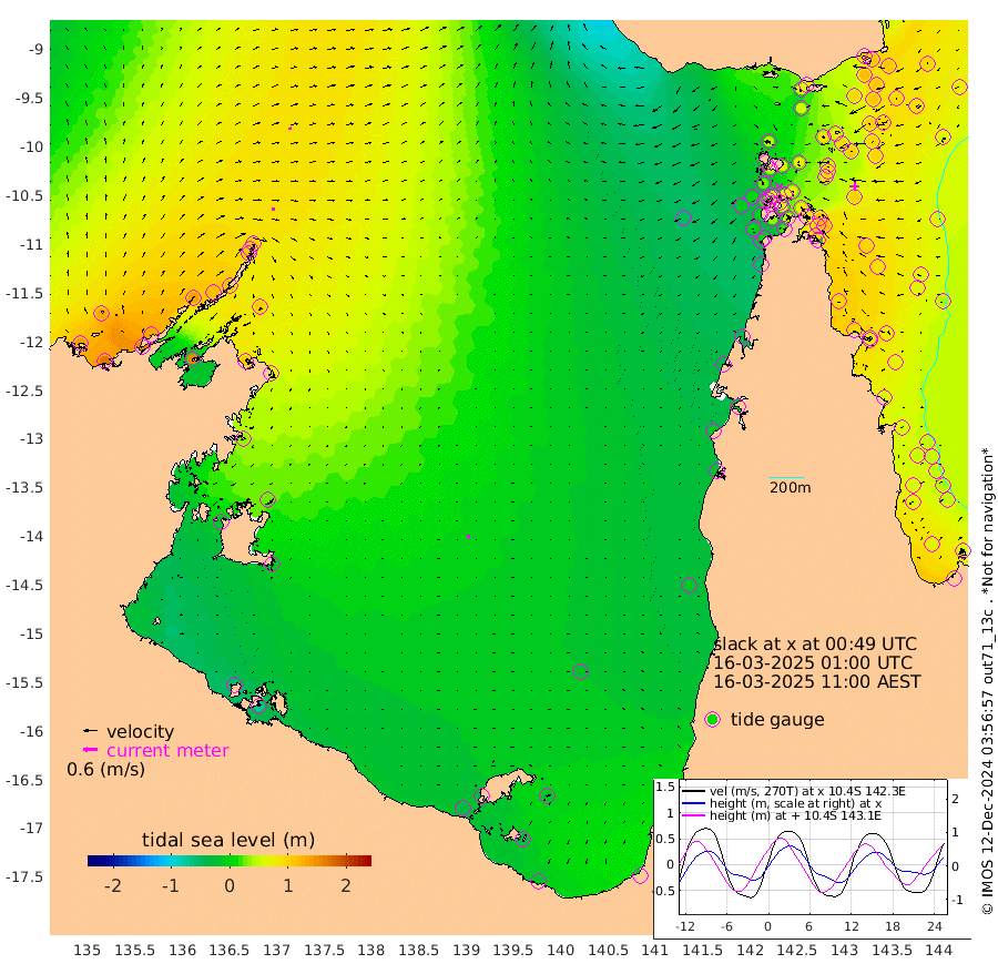 12cm/s 100T +3cm/s rms + 7cm/s -42T. ARA-GOC87 57m 14cm/s -168T +3cm/s rms + 2cm/s -2T. ARA-GOC87 60m 10cm/s 77T +2cm/s rms + 3cm/s 61T. ARA-GOC87 47m 108cm Daru 107cm Bobo Island 60cm Meer Island Barge 91cm Bramble Cay 106cm Unnamed Cay 106cm Pearce Cay 96cm Stephens Island 106cm Merrie England Shoals 117cm Mutacomal Reef 83cm Darnley Island Barge 71cm East Cay 90cm Yorke Island Barge 104cm Rennel Island 95cm Aureed Island 94cm Dungeness Reef 82cm Zagai Island 84cm Yam Island 64cm Dauan Island 56cm Saibai Island 59cm Phipi Reef 91cm Warrior Reef - West 43cm Mabuiag Island Barge 93cm Half Way Island 99cm Coconut Island 98cm Dugong Islet 92cm Poll Island 83cm Kirkcaldie Reef 78cm Suarji Island 80cm Sue Islet 26cm Hawkesbury Island 67cm Alert Patches 74cm Twin Island 28cm Badu Island 70cm St Pauls (Moa Island) 42cm Kubin (Moa Island) 55cm Ince Point 41cm Thursday Island 46cm Nardana Patches 36cm Turtle Head 27cm Round Island 17cm Goods Island -13cm Booby Island 7cm White Rocks Area -45cm Carpentaria 60cm Papou Point -2cm Bampfield Head -25cm Crab Island -1cm Red Wallis Island 35cm Packe Island 104cm Harrington Reef 8cm Herald Camp 13cm Sharp Point 20cm Red Island Point 42cm Possession Island 81cm Alpha Rock 90cm Frederick Point 118cm Wyborn Reef Light 115cm Tetley Island 65cm Triangle Reef 103cm Turtle Head Island 60cm Maclennan Cay 44cm Raine Island 96cm Mcsweeny Reef 87cm Collette Reef 61cm Shadwell Reef 96cm Hannibal Island 96cm Round Point -46cm Vrilya Point 77cm Cape Grenville 71cm Hicks Island 76cm Sir Charles Hardy Island 22cm Harvey Island 69cm Kay Reef 56cm Rocky Island 54cm Chapman Island 47cm Ham Reef 52cm Jubilee Reef 50cm Night Island 50cm Unnamed Reef No. 3 58cm Morris Island 43cm 1st 3 Mile Opening 49cm Creech Reef 64cm Fife Island 60cm Eden Reef 54cm Stanley Island 67cm Normanby River 136cm Yabooma Island 169cm Hutchison River 135cm Elcho Island 128cm North West Crocodile Island 109cm Cape Wessel 139cm Stevens Island 114cm Guluwuru Island 119cm Hopeful Bay 106cm Auster Point 108cm Two Island Bay 150cm Cadell Strait 157cm Mallison Island 105cm Melville Bay (Gove Harbour) 111cm Truant Island 69cm Cape Arnhem 35cm Cape Grey 28cm Hawk Island -15cm Milner Bay (Groote Eylandt) -14cm Cape Beatrice -56cm West Island -68cm Centre Island -33cm Mornington Island -31cm West Wellesley Islands -20cm Bountiful Island -22cm Albert River Mouth -38cm Sweers Island -30cm Karumba -16cm Nassau River Offshore -10cm Christmas Creek -17cm Archer River -14cm Boyd Point -11cm Weipa (Humbug Point) -38cm Pennefather River -31cm Cullen Point