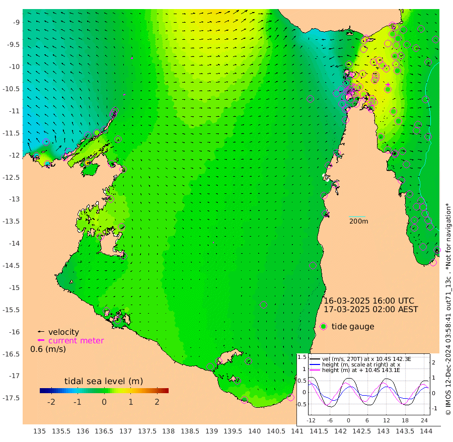 19cm/s 82T +3cm/s rms + 7cm/s -42T. ARA-GOC87 57m 8cm/s 77T +3cm/s rms + 2cm/s -2T. ARA-GOC87 60m 17cm/s 72T +2cm/s rms + 3cm/s 61T. ARA-GOC87 47m 34cm Daru 41cm Bobo Island -6cm Meer Island Barge -3cm Bramble Cay 9cm Unnamed Cay 24cm Pearce Cay 10cm Stephens Island 3cm Merrie England Shoals 21cm Mutacomal Reef 15cm Darnley Island Barge -9cm East Cay 29cm Yorke Island Barge 16cm Rennel Island 40cm Aureed Island 32cm Dungeness Reef 68cm Zagai Island 46cm Yam Island 54cm Dauan Island 69cm Saibai Island 56cm Phipi Reef 66cm Warrior Reef - West 30cm Mabuiag Island Barge 15cm Half Way Island 44cm Coconut Island 21cm Dugong Islet 41cm Poll Island 31cm Kirkcaldie Reef 56cm Suarji Island 49cm Sue Islet -65cm Hawkesbury Island 31cm Alert Patches 36cm Twin Island -27cm Badu Island 45cm St Pauls (Moa Island) -31cm Kubin (Moa Island) 16cm Ince Point 2cm Thursday Island 6cm Nardana Patches -22cm Turtle Head -40cm Round Island -58cm Goods Island -72cm Booby Island -72cm White Rocks Area -39cm Carpentaria 34cm Papou Point -63cm Bampfield Head -59cm Crab Island -67cm Red Wallis Island -45cm Packe Island 34cm Harrington Reef -68cm Herald Camp 22cm Sharp Point -16cm Red Island Point 10cm Possession Island 33cm Alpha Rock 38cm Frederick Point 31cm Wyborn Reef Light 35cm Tetley Island 4cm Triangle Reef 21cm Turtle Head Island -8cm Maclennan Cay -18cm Raine Island 16cm Mcsweeny Reef 11cm Collette Reef -5cm Shadwell Reef 9cm Hannibal Island -7cm Round Point -54cm Vrilya Point -10cm Cape Grenville -9cm Hicks Island -9cm Sir Charles Hardy Island -2cm Harvey Island -17cm Kay Reef -16cm Rocky Island -15cm Chapman Island -16cm Ham Reef -15cm Jubilee Reef -13cm Night Island -16cm Unnamed Reef No. 3 -19cm Morris Island -20cm 1st 3 Mile Opening -17cm Creech Reef -14cm Fife Island -26cm Eden Reef -25cm Stanley Island -27cm Normanby River -105cm Yabooma Island -94cm Hutchison River -90cm Elcho Island -94cm North West Crocodile Island -13cm Cape Wessel -61cm Stevens Island 25cm Guluwuru Island -62cm Hopeful Bay -35cm Auster Point -44cm Two Island Bay -40cm Cadell Strait 114cm Mallison Island 14cm Melville Bay (Gove Harbour) 17cm Truant Island 25cm Cape Arnhem 23cm Cape Grey 17cm Hawk Island 18cm Milner Bay (Groote Eylandt) 9cm Cape Beatrice 16cm West Island 20cm Centre Island 15cm Mornington Island 10cm West Wellesley Islands 5cm Bountiful Island -10cm Albert River Mouth 9cm Sweers Island -11cm Karumba -5cm Nassau River Offshore -13cm Christmas Creek -29cm Archer River -28cm Boyd Point -44cm Weipa (Humbug Point) -33cm Pennefather River -49cm Cullen Point