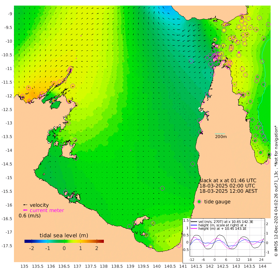 8cm/s 75T +3cm/s rms + 7cm/s -42T. ARA-GOC87 57m 11cm/s -142T +3cm/s rms + 2cm/s -2T. ARA-GOC87 60m 10cm/s 50T +2cm/s rms + 3cm/s 61T. ARA-GOC87 47m 76cm Daru 69cm Bobo Island 23cm Meer Island Barge 46cm Bramble Cay 63cm Unnamed Cay 60cm Pearce Cay 51cm Stephens Island 58cm Merrie England Shoals 76cm Mutacomal Reef 43cm Darnley Island Barge 26cm East Cay 55cm Yorke Island Barge 63cm Rennel Island 58cm Aureed Island 66cm Dungeness Reef 76cm Zagai Island 75cm Yam Island 81cm Dauan Island 72cm Saibai Island 74cm Phipi Reef 88cm Warrior Reef - West 45cm Mabuiag Island Barge 54cm Half Way Island 66cm Coconut Island 62cm Dugong Islet 68cm Poll Island 60cm Kirkcaldie Reef 64cm Suarji Island 63cm Sue Islet -4cm Hawkesbury Island 48cm Alert Patches 53cm Twin Island 15cm Badu Island 59cm St Pauls (Moa Island) 19cm Kubin (Moa Island) 39cm Ince Point 23cm Thursday Island 30cm Nardana Patches 16cm Turtle Head 1cm Round Island -10cm Goods Island -41cm Booby Island -26cm White Rocks Area -72cm Carpentaria 48cm Papou Point -44cm Bampfield Head -44cm Crab Island -32cm Red Wallis Island 2cm Packe Island 63cm Harrington Reef -25cm Herald Camp 17cm Sharp Point 4cm Red Island Point 20cm Possession Island 59cm Alpha Rock 61cm Frederick Point 77cm Wyborn Reef Light 78cm Tetley Island 29cm Triangle Reef 59cm Turtle Head Island 22cm Maclennan Cay 10cm Raine Island 54cm Mcsweeny Reef 47cm Collette Reef 26cm Shadwell Reef 50cm Hannibal Island 44cm Round Point -65cm Vrilya Point 30cm Cape Grenville 29cm Hicks Island 33cm Sir Charles Hardy Island 9cm Harvey Island 22cm Kay Reef 17cm Rocky Island 12cm Chapman Island 9cm Ham Reef 15cm Jubilee Reef 13cm Night Island 9cm Unnamed Reef No. 3 17cm Morris Island 9cm 1st 3 Mile Opening 10cm Creech Reef 20cm Fife Island 14cm Eden Reef 11cm Stanley Island 18cm Normanby River 108cm Yabooma Island 143cm Hutchison River 114cm Elcho Island 111cm North West Crocodile Island 81cm Cape Wessel 113cm Stevens Island 102cm Guluwuru Island 91cm Hopeful Bay 81cm Auster Point 83cm Two Island Bay 129cm Cadell Strait 126cm Mallison Island 91cm Melville Bay (Gove Harbour) 92cm Truant Island 62cm Cape Arnhem 42cm Cape Grey 34cm Hawk Island 6cm Milner Bay (Groote Eylandt) 9cm Cape Beatrice -23cm West Island -36cm Centre Island 8cm Mornington Island 8cm West Wellesley Islands 32cm Bountiful Island 53cm Albert River Mouth 33cm Sweers Island 38cm Karumba 8cm Nassau River Offshore -2cm Christmas Creek -24cm Archer River -27cm Boyd Point -24cm Weipa (Humbug Point) -50cm Pennefather River -51cm Cullen Point