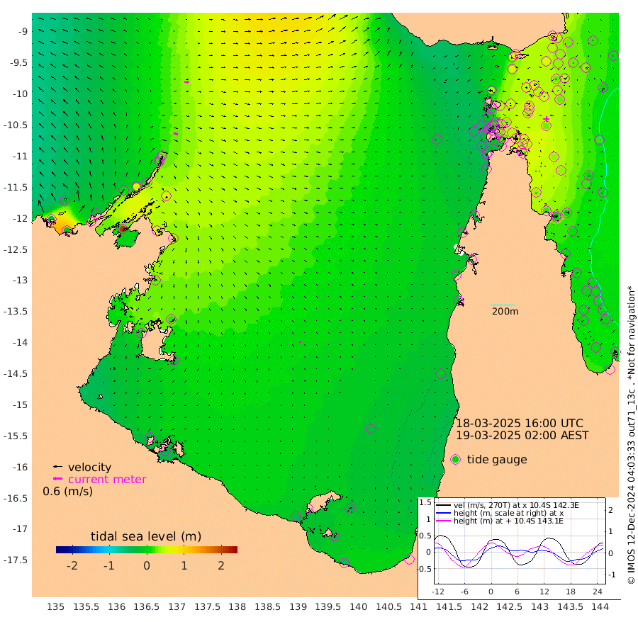 29cm/s 99T +3cm/s rms + 7cm/s -42T. ARA-GOC87 57m 9cm/s 129T +3cm/s rms + 2cm/s -2T. ARA-GOC87 60m 25cm/s 86T +2cm/s rms + 3cm/s 61T. ARA-GOC87 47m 47cm Daru 49cm Bobo Island 14cm Meer Island Barge 21cm Bramble Cay 31cm Unnamed Cay 35cm Pearce Cay 25cm Stephens Island 27cm Merrie England Shoals 39cm Mutacomal Reef 31cm Darnley Island Barge 11cm East Cay 41cm Yorke Island Barge 28cm Rennel Island 43cm Aureed Island 38cm Dungeness Reef 67cm Zagai Island 47cm Yam Island 63cm Dauan Island 74cm Saibai Island 67cm Phipi Reef 66cm Warrior Reef - West 39cm Mabuiag Island Barge 24cm Half Way Island 50cm Coconut Island 26cm Dugong Islet 42cm Poll Island 34cm Kirkcaldie Reef 46cm Suarji Island 52cm Sue Islet -22cm Hawkesbury Island 36cm Alert Patches 37cm Twin Island 5cm Badu Island 43cm St Pauls (Moa Island) -5cm Kubin (Moa Island) 23cm Ince Point 12cm Thursday Island 16cm Nardana Patches -2cm Turtle Head -4cm Round Island -26cm Goods Island -40cm Booby Island -45cm White Rocks Area -29cm Carpentaria 34cm Papou Point -20cm Bampfield Head -31cm Crab Island -40cm Red Wallis Island -17cm Packe Island 34cm Harrington Reef -28cm Herald Camp 17cm Sharp Point 0cm Red Island Point 23cm Possession Island 38cm Alpha Rock 40cm Frederick Point 49cm Wyborn Reef Light 51cm Tetley Island 22cm Triangle Reef 38cm Turtle Head Island 7cm Maclennan Cay 4cm Raine Island 31cm Mcsweeny Reef 31cm Collette Reef 19cm Shadwell Reef 31cm Hannibal Island 20cm Round Point -32cm Vrilya Point 12cm Cape Grenville 12cm Hicks Island 13cm Sir Charles Hardy Island 3cm Harvey Island 9cm Kay Reef 7cm Rocky Island 9cm Chapman Island 6cm Ham Reef 7cm Jubilee Reef 5cm Night Island 5cm Unnamed Reef No. 3 4cm Morris Island 1cm 1st 3 Mile Opening 3cm Creech Reef 6cm Fife Island 2cm Eden Reef 0cm Stanley Island -4cm Normanby River -31cm Yabooma Island -12cm Hutchison River -21cm Elcho Island -29cm North West Crocodile Island 28cm Cape Wessel 10cm Stevens Island 69cm Guluwuru Island 6cm Hopeful Bay 17cm Auster Point 10cm Two Island Bay 32cm Cadell Strait 209cm Mallison Island 55cm Melville Bay (Gove Harbour) 61cm Truant Island 49cm Cape Arnhem 29cm Cape Grey 22cm Hawk Island -3cm Milner Bay (Groote Eylandt) -17cm Cape Beatrice -36cm West Island -32cm Centre Island -22cm Mornington Island -32cm West Wellesley Islands -32cm Bountiful Island -51cm Albert River Mouth -33cm Sweers Island -45cm Karumba -23cm Nassau River Offshore -14cm Christmas Creek -13cm Archer River -12cm Boyd Point -22cm Weipa (Humbug Point) -13cm Pennefather River -27cm Cullen Point