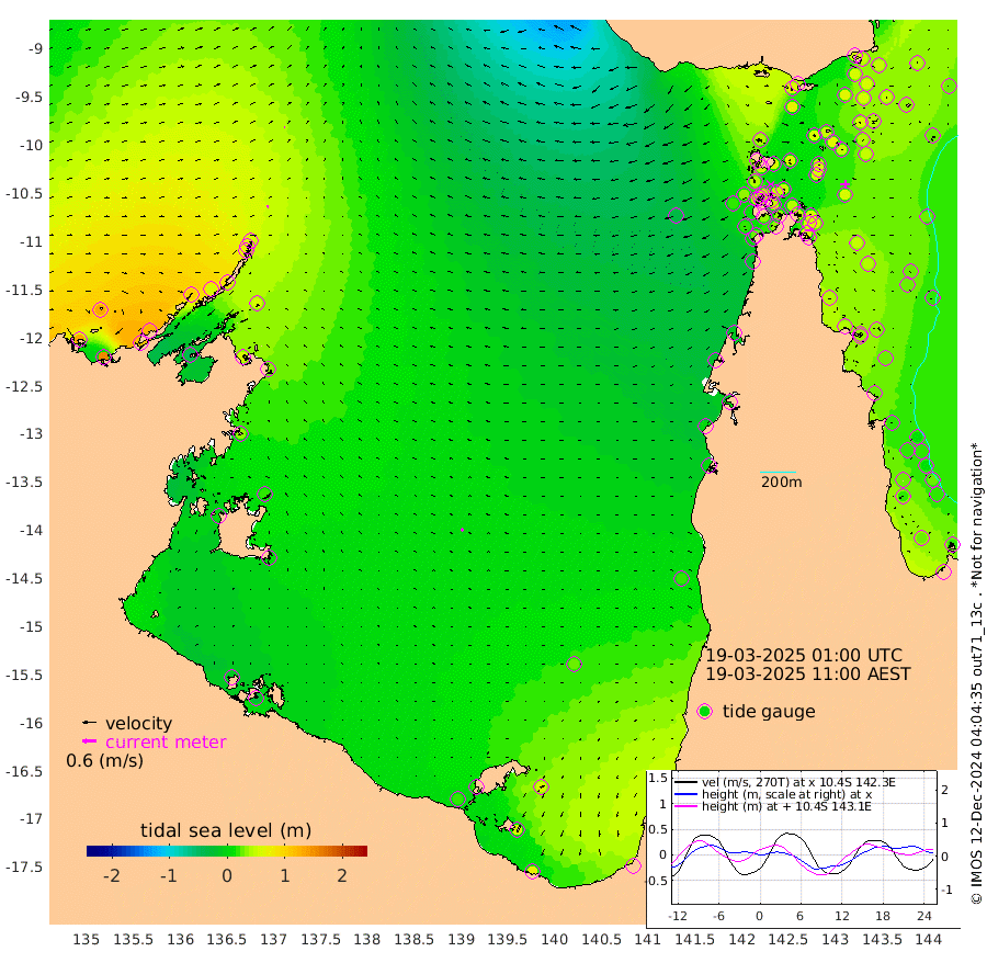 5cm/s -107T +3cm/s rms + 7cm/s -42T. ARA-GOC87 57m 12cm/s -126T +3cm/s rms + 2cm/s -2T. ARA-GOC87 60m 3cm/s -92T +2cm/s rms + 3cm/s 61T. ARA-GOC87 47m 59cm Daru 51cm Bobo Island 26cm Meer Island Barge 42cm Bramble Cay 53cm Unnamed Cay 54cm Pearce Cay 47cm Stephens Island 49cm Merrie England Shoals 58cm Mutacomal Reef 36cm Darnley Island Barge 30cm East Cay 43cm Yorke Island Barge 56cm Rennel Island 44cm Aureed Island 60cm Dungeness Reef 51cm Zagai Island 58cm Yam Island 64cm Dauan Island 45cm Saibai Island 70cm Phipi Reef 63cm Warrior Reef - West 45cm Mabuiag Island Barge 50cm Half Way Island 51cm Coconut Island 56cm Dugong Islet 56cm Poll Island 56cm Kirkcaldie Reef 58cm Suarji Island 46cm Sue Islet 43cm Hawkesbury Island 51cm Alert Patches 50cm Twin Island 52cm Badu Island 54cm St Pauls (Moa Island) 48cm Kubin (Moa Island) 47cm Ince Point 42cm Thursday Island 45cm Nardana Patches 47cm Turtle Head 35cm Round Island 41cm Goods Island 20cm Booby Island 32cm White Rocks Area -33cm Carpentaria 46cm Papou Point 10cm Bampfield Head 6cm Crab Island 17cm Red Wallis Island 35cm Packe Island 55cm Harrington Reef 23cm Herald Camp 9cm Sharp Point 37cm Red Island Point 37cm Possession Island 42cm Alpha Rock 52cm Frederick Point 56cm Wyborn Reef Light 55cm Tetley Island 25cm Triangle Reef 58cm Turtle Head Island 28cm Maclennan Cay 20cm Raine Island 46cm Mcsweeny Reef 38cm Collette Reef 25cm Shadwell Reef 42cm Hannibal Island 41cm Round Point -17cm Vrilya Point 31cm Cape Grenville 34cm Hicks Island 33cm Sir Charles Hardy Island 10cm Harvey Island 25cm Kay Reef 24cm Rocky Island 17cm Chapman Island 14cm Ham Reef 21cm Jubilee Reef 18cm Night Island 14cm Unnamed Reef No. 3 25cm Morris Island 24cm 1st 3 Mile Opening 20cm Creech Reef 22cm Fife Island 24cm Eden Reef 20cm Stanley Island 27cm Normanby River 130cm Yabooma Island 157cm Hutchison River 126cm Elcho Island 128cm North West Crocodile Island 54cm Cape Wessel 102cm Stevens Island 57cm Guluwuru Island 85cm Hopeful Bay 71cm Auster Point 71cm Two Island Bay 113cm Cadell Strait -42cm Mallison Island 58cm Melville Bay (Gove Harbour) 53cm Truant Island 31cm Cape Arnhem 30cm Cape Grey 20cm Hawk Island 3cm Milner Bay (Groote Eylandt) 10cm Cape Beatrice -12cm West Island -25cm Centre Island 18cm Mornington Island 19cm West Wellesley Islands 59cm Bountiful Island 72cm Albert River Mouth 55cm Sweers Island 64cm Karumba 27cm Nassau River Offshore 18cm Christmas Creek 5cm Archer River 0cm Boyd Point 13cm Weipa (Humbug Point) -17cm Pennefather River -14cm Cullen Point