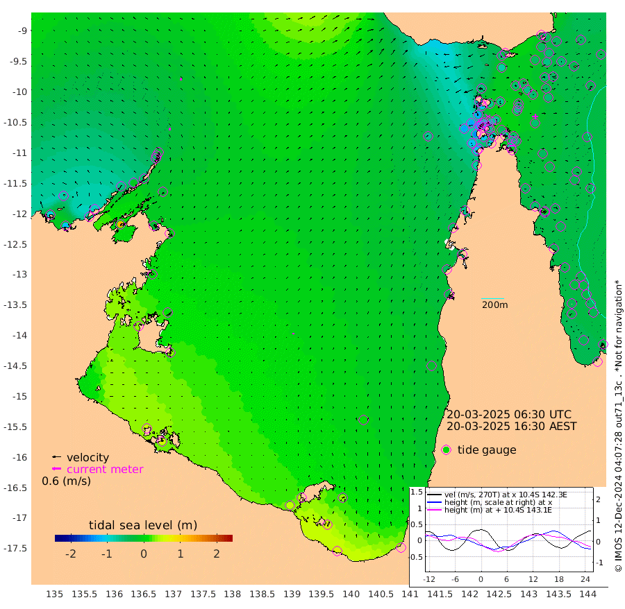 17cm/s -8T +3cm/s rms + 7cm/s -42T. ARA-GOC87 57m 9cm/s -1T +3cm/s rms + 2cm/s -2T. ARA-GOC87 60m 16cm/s -6T +2cm/s rms + 3cm/s 61T. ARA-GOC87 47m -56cm Daru -52cm Bobo Island -41cm Meer Island Barge -46cm Bramble Cay -53cm Unnamed Cay -64cm Pearce Cay -55cm Stephens Island -50cm Merrie England Shoals -51cm Mutacomal Reef -45cm Darnley Island Barge -45cm East Cay -48cm Yorke Island Barge -59cm Rennel Island -51cm Aureed Island -67cm Dungeness Reef -46cm Zagai Island -54cm Yam Island -57cm Dauan Island -33cm Saibai Island -76cm Phipi Reef -51cm Warrior Reef - West -63cm Mabuiag Island Barge -58cm Half Way Island -60cm Coconut Island -60cm Dugong Islet -61cm Poll Island -64cm Kirkcaldie Reef -74cm Suarji Island -48cm Sue Islet -126cm Hawkesbury Island -81cm Alert Patches -74cm Twin Island -116cm Badu Island -75cm St Pauls (Moa Island) -109cm Kubin (Moa Island) -82cm Ince Point -91cm Thursday Island -88cm Nardana Patches -106cm Turtle Head -116cm Round Island -123cm Goods Island -124cm Booby Island -123cm White Rocks Area -70cm Carpentaria -67cm Papou Point -138cm Bampfield Head -98cm Crab Island -110cm Red Wallis Island -111cm Packe Island -67cm Harrington Reef -124cm Herald Camp -8cm Sharp Point -92cm Red Island Point -94cm Possession Island -50cm Alpha Rock -69cm Frederick Point -57cm Wyborn Reef Light -57cm Tetley Island -39cm Triangle Reef -83cm Turtle Head Island -44cm Maclennan Cay -39cm Raine Island -52cm Mcsweeny Reef -45cm Collette Reef -38cm Shadwell Reef -48cm Hannibal Island -53cm Round Point -81cm Vrilya Point -44cm Cape Grenville -49cm Hicks Island -42cm Sir Charles Hardy Island -15cm Harvey Island -38cm Kay Reef -40cm Rocky Island -36cm Chapman Island -31cm Ham Reef -36cm Jubilee Reef -36cm Night Island -32cm Unnamed Reef No. 3 -42cm Morris Island -47cm 1st 3 Mile Opening -40cm Creech Reef -37cm Fife Island -42cm Eden Reef -39cm Stanley Island -42cm Normanby River -99cm Yabooma Island -111cm Hutchison River -85cm Elcho Island -82cm North West Crocodile Island -27cm Cape Wessel -62cm Stevens Island -10cm Guluwuru Island -57cm Hopeful Bay -53cm Auster Point -50cm Two Island Bay -68cm Cadell Strait 124cm Mallison Island -23cm Melville Bay (Gove Harbour) -23cm Truant Island -7cm Cape Arnhem 1cm Cape Grey 9cm Hawk Island 32cm Milner Bay (Groote Eylandt) 35cm Cape Beatrice 56cm West Island 57cm Centre Island 46cm Mornington Island 52cm West Wellesley Islands 31cm Bountiful Island 61cm Albert River Mouth 56cm Sweers Island 43cm Karumba 10cm Nassau River Offshore -16cm Christmas Creek -44cm Archer River -50cm Boyd Point -64cm Weipa (Humbug Point) -56cm Pennefather River -71cm Cullen Point